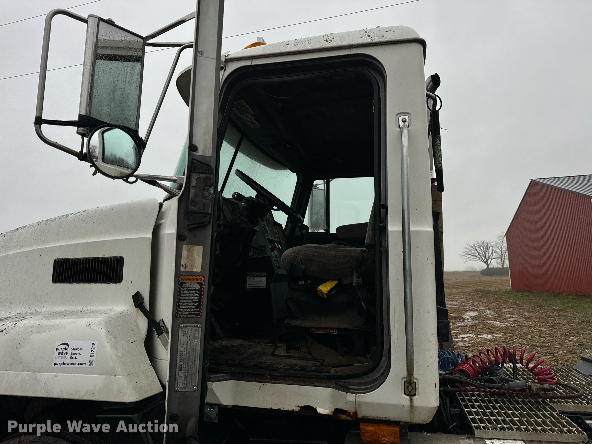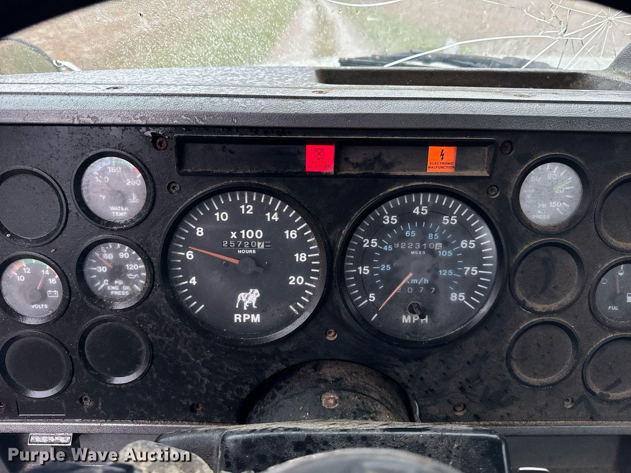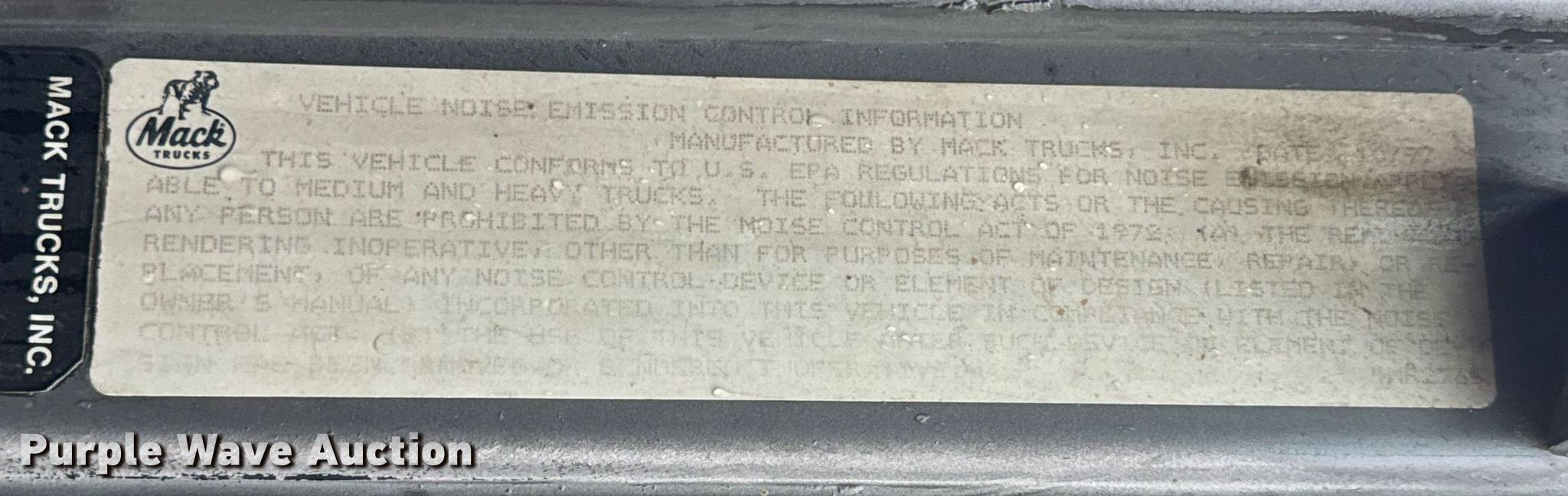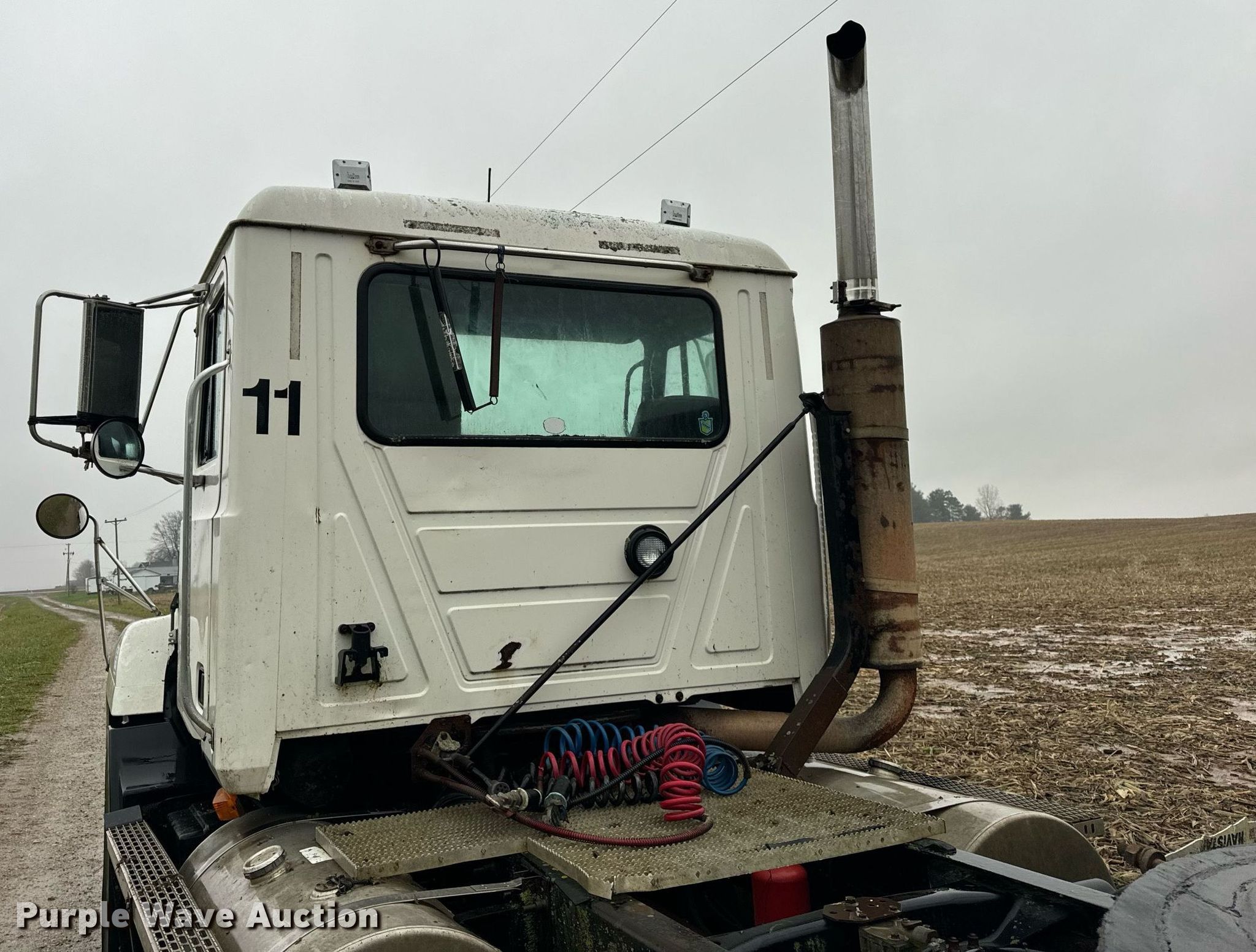 1998 Mack CH600 semi truck. Miles: 922,311 on odometer, VIN: 1M1AA13Y6WW084808. Engine Mack E7-350, Displacement: 11.9L, Cylinders: 6, Fuel type: Diesel. Transmission Eaton Fuller, Manual, Speed: 10. Chassis Axles: Tandem, Suspension: Air Dump valves, Brakes: Air. Interior AC, Heat, Heated mirrors, Cruise control, Air ride cab. Features Fifth wheel type: Fixed, Fuel tank: Dual. Tires Size: 11R22.5. Notes Dash warning indicator: Engine shut down, Electronic malfunction, Non-operational AC, belt missing. Ohio title. Title distribution may be delayed up to 14 days from verification of funds. Mcintosh Ag Logistics. Cable, OH 43009