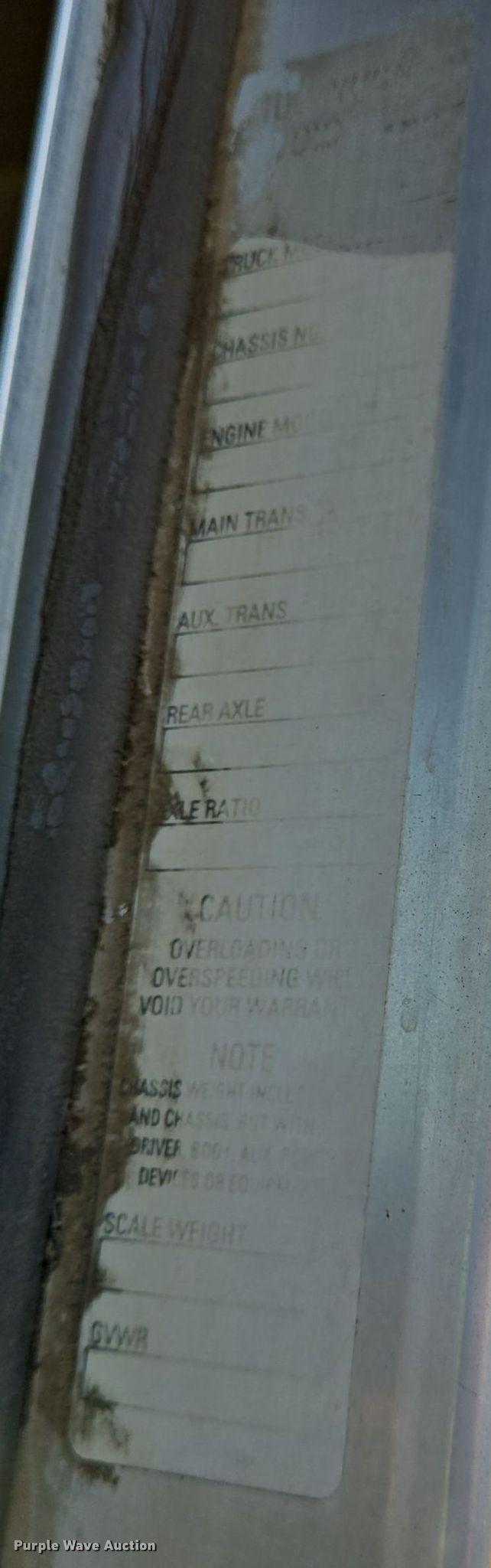 2005 Kenworth T800 truck cab and chassis. Miles: 513,110 on odometer, Hours: 40,841 on meter, VIN: 1XKDDB9XX5J089048. Engine No engine. Transmission No transmission. Chassis Axles: Tandem, Differential lock: Inter-axle, Suspension: Air Dump valves, Brakes: Air, Truck chassis: 13' 9", Wheelbase: 224". Interior Heated mirrors, Power windows, Power locks, Cruise control, Sleeper Sleeper length: 48", Beds: Single, Rear climate control. Features Deck plate: Aluminum, Fuel tank: Dual. Tires Size: 285/75R24.5. Notes Additional hood included, Drivers seat missing, Non-operational unit. Texas title. Title distribution may be delayed up to 30 days from verification of funds. B&K Trucking & Equipment INC. San Augustine, TX 75972
