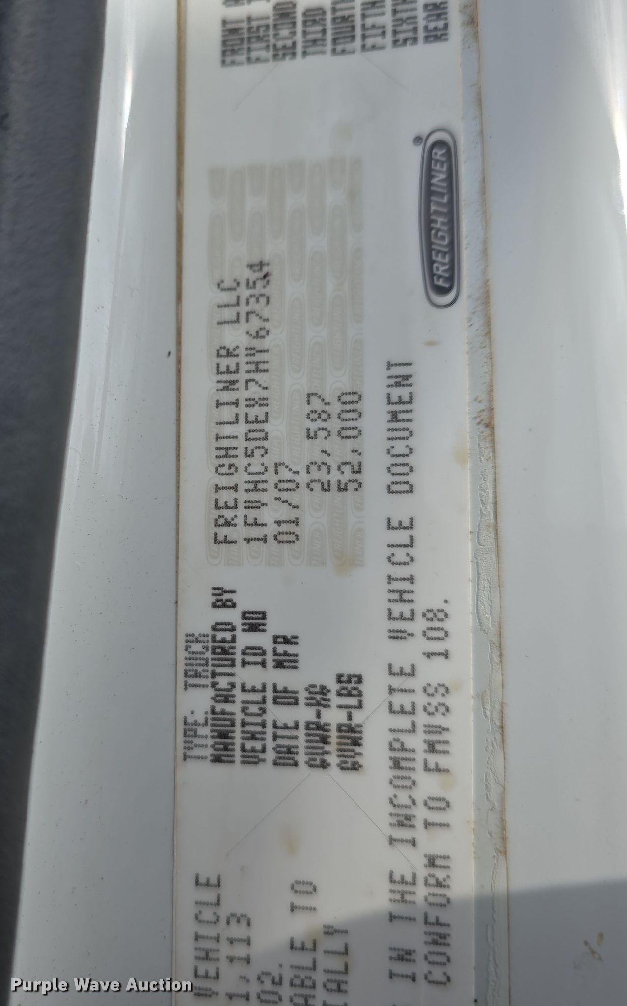 Purple Wave is selling a used Flat Bed Truck in Iowa. This item is a 2007 Freightliner Business Class M2 112 flatbed truck with the following: Miles: 138,680 on odometer, Hours: 4,693 on meter, VIN: 1FVHC5DEX7HY67354