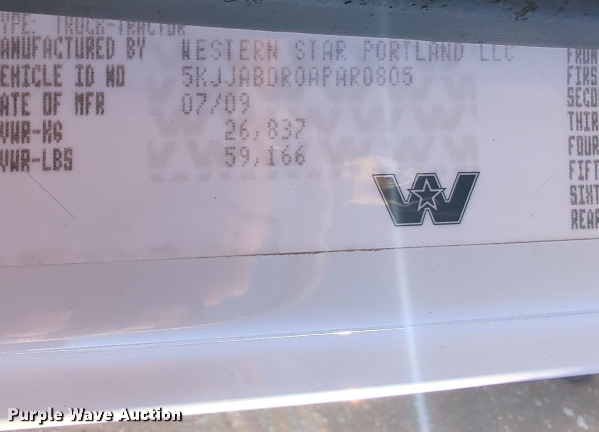 Purple Wave is selling a used Truck Tractor in Oklahoma. This item is a 2010 Western Star 4900 semi truck with the following: Miles: 665,229 on odometer, VIN: 5KJJABDR0APAR0805