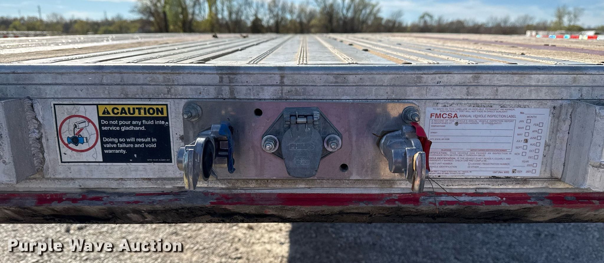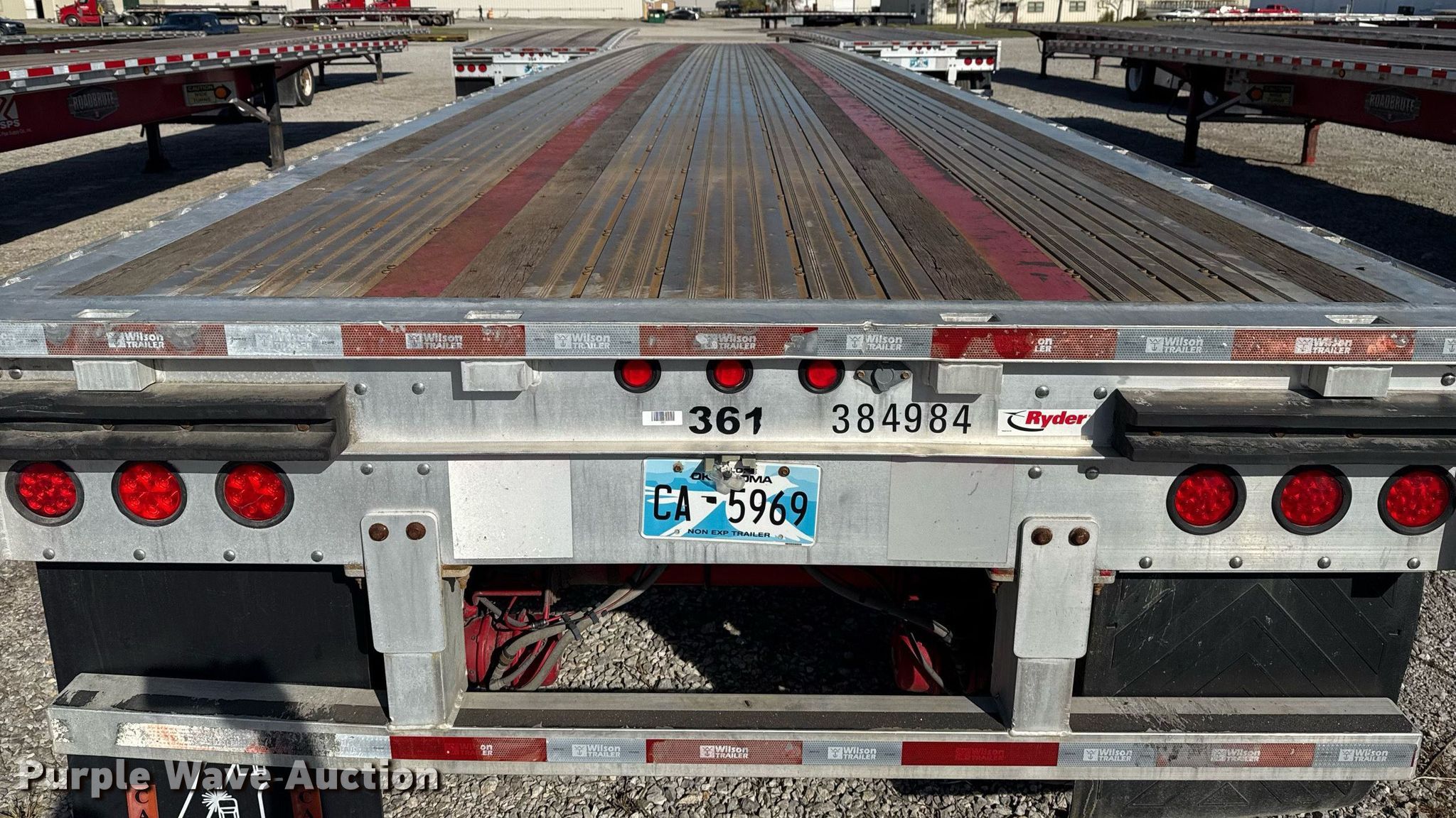 2012 Wilson CF1080 flatbed trailer. VIN: 4WWBGB6B5CN618588, Unit #: 361. Dimensions Overall: 48' L x 102" W. Features Deck type: Aluminum, Wood. Chassis Landing gear: Dual, Suspension: Air, Brakes: Air, Axles: Spread, GVWR: 89,250 lbs, GAWR: 19,040 lbs. Tires Steel wheels, Size: 295/75R22.5. Oklahoma title. Title distribution may be delayed up to 14 days from verification of funds. Catoosa, OK 74015