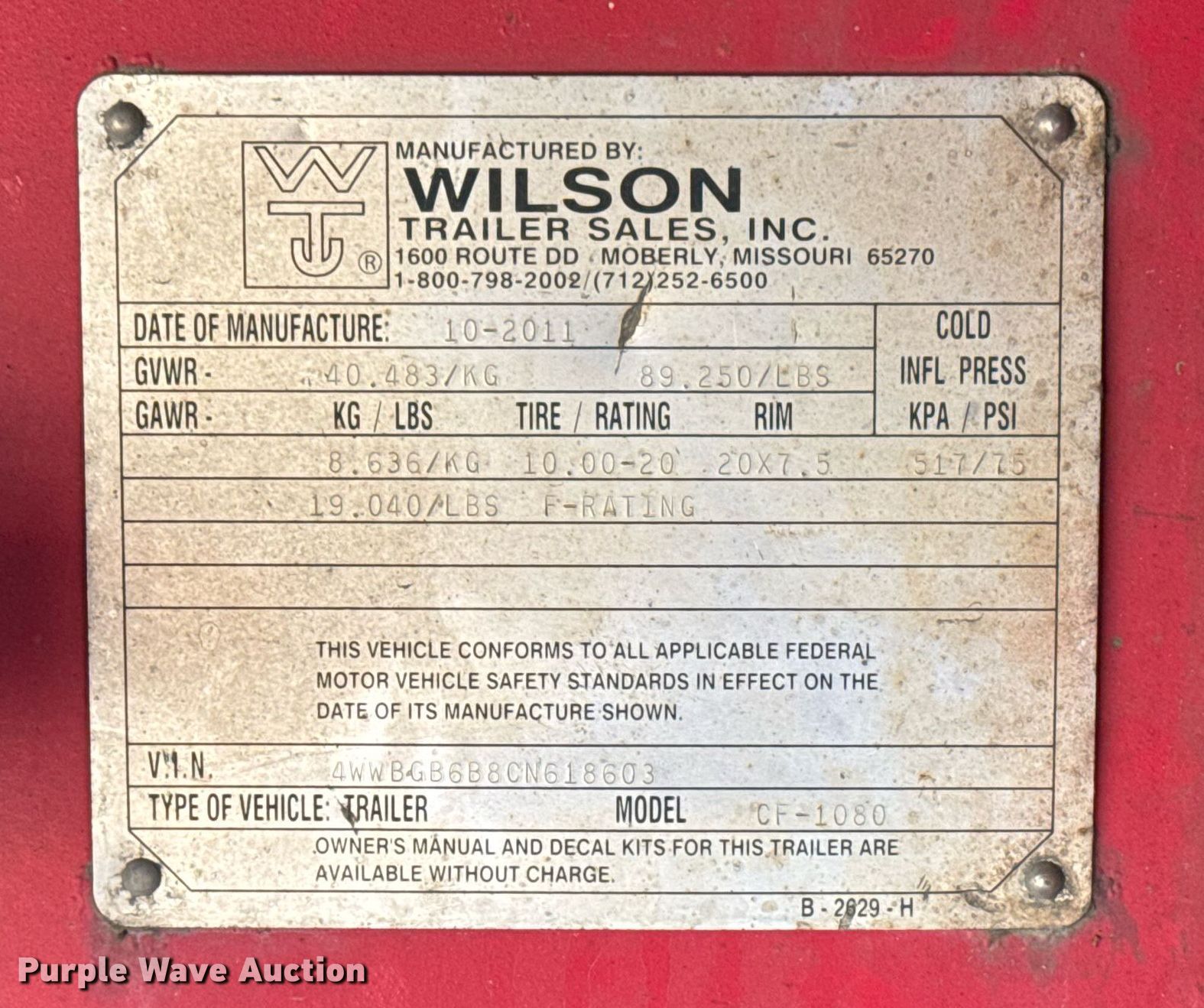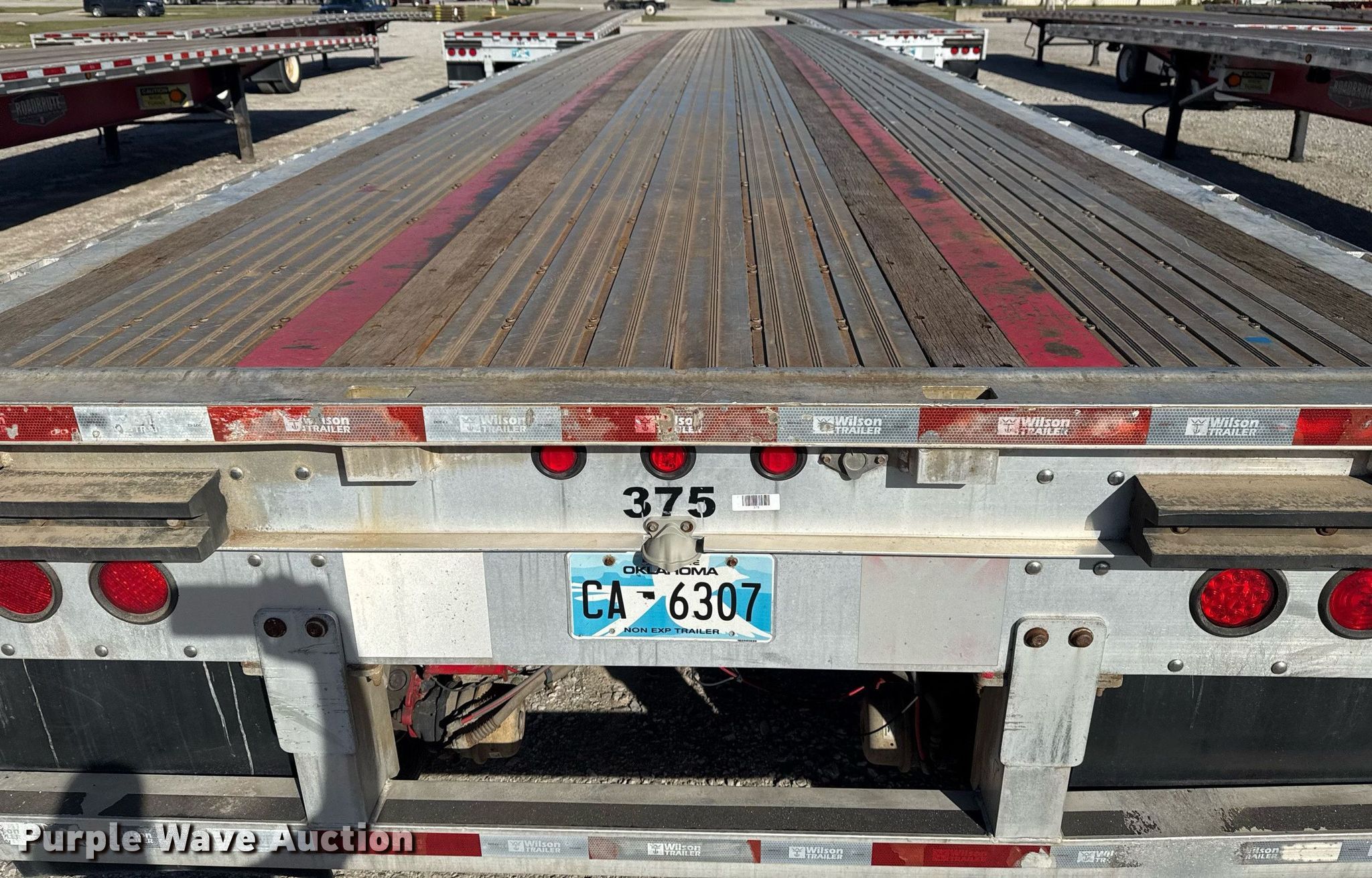 Purple Wave is selling a used Flat or Drop Deck Trailer in Oklahoma. This item is a 2012 Wilson CF1080 flatbed trailer with the following: VIN: 4WWBGB6B8CN618603, Unit #: 375