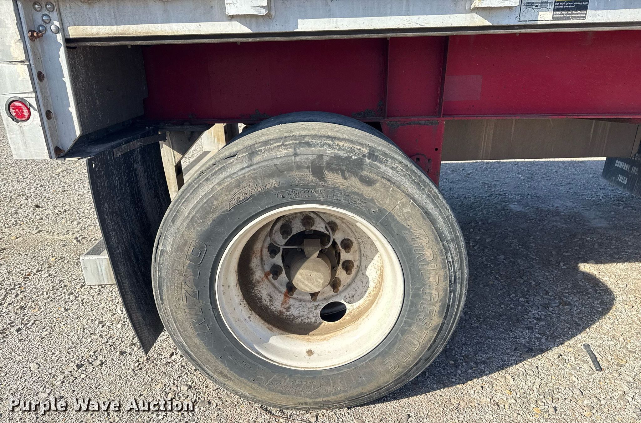 2012 Wilson CF1080 flatbed trailer. VIN: 4WWBGB6B8CN618603, Unit #: 375. Dimensions Overall: 48' L x 102" W. Features Deck type: Aluminum, Wood. Chassis Landing gear: Dual, Suspension: Air, Brakes: Air, Axles: Spread, GVWR: 89,250 lbs, GAWR: 19,040 lbs. Tires Steel wheels, Size: 295/75R22.5. Oklahoma title. Title distribution may be delayed up to 14 days from verification of funds. Catoosa, OK 74015