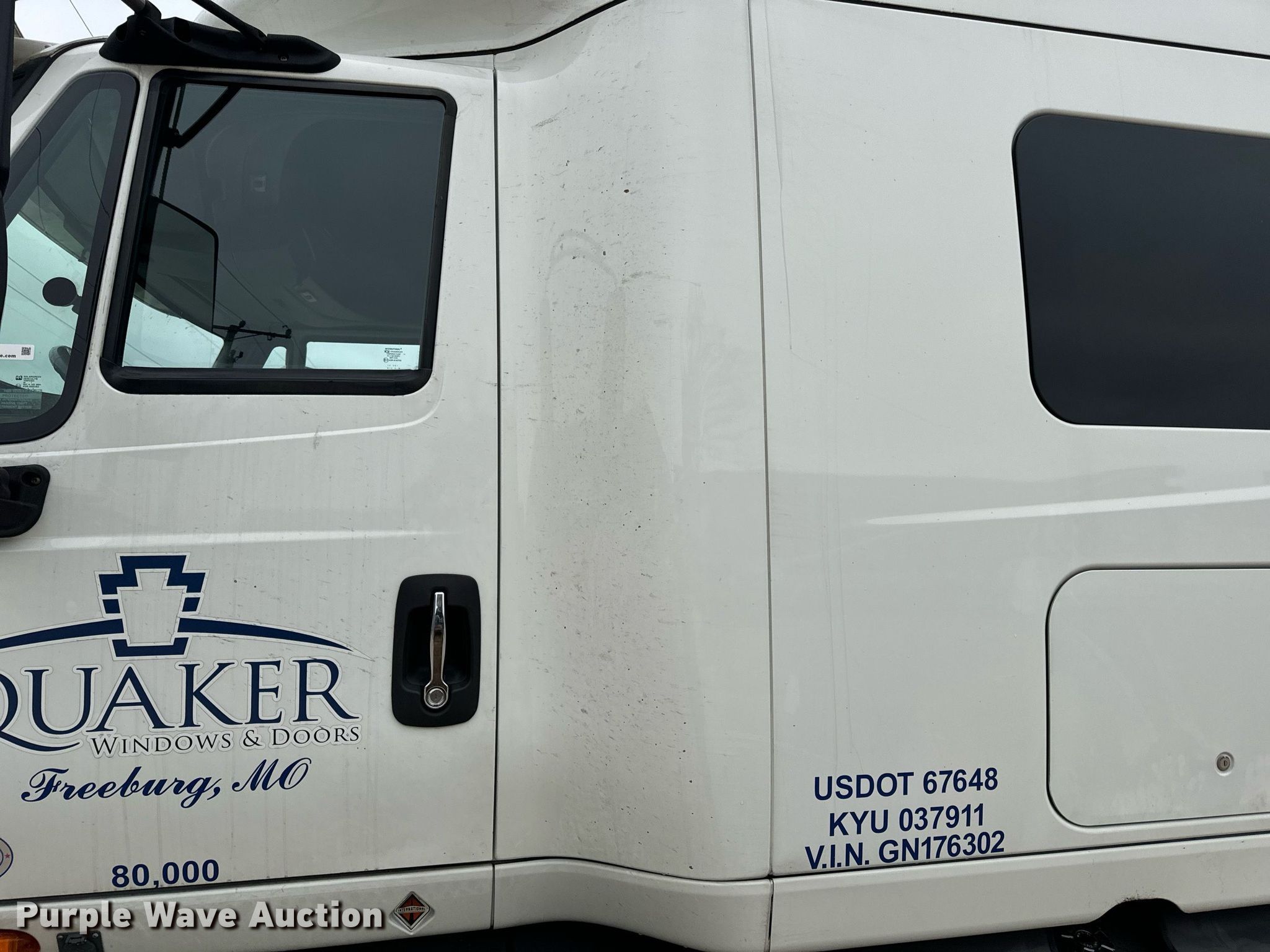 2016 International ProStar Plus 122 semi truck. Miles: 856,173 on odometer, Hours: 21,829 on meter, VIN: 3HSDJAPR3GN176302, Unit #: 30. Engine Cummins ISX15 400ST, Serial: 79882078, Displacement: 15.0L, Cylinders: 6, Fuel type: Diesel, HP: 400, Engine brake. Transmission Eaton Fuller, Manual, Speed: 10. Chassis Axles: Tandem, Differential lock: Inter-axle, Suspension: Air Dump valves, Brakes: Air, GVWR: 52,350 lbs FAWR: 12,350 lbs, IAWR: 20,000 lbs, RAWR: 20,000 lbs. Interior AC, Heat, Heated mirrors, Power windows, Power locks, Cruise control, Air ride cab, Sleeper Sleeper length: 64", Beds: Double bunk, Rear climate control. Features Deck plate: Aluminum, Fifth wheel type: Air operated, Sliding, Fuel tank: Dual. Tires Front: 275/80R22.5, Rear: 295/75R22.5. Missouri title. Title distribution may be delayed up to 14 days from verification of funds. Quaker Windows & Doors. Freeburg, MO 65035