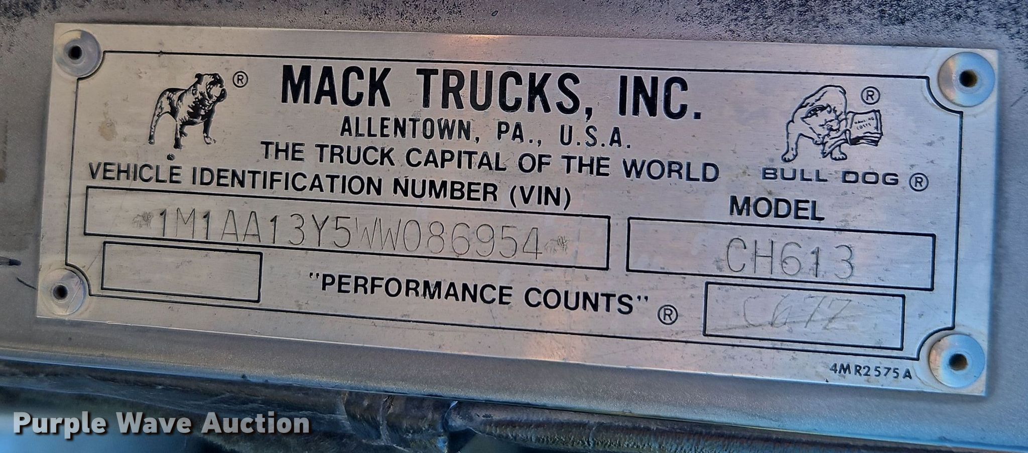 Purple Wave is selling a used Truck Tractor in Missouri. This item is a 1998 Mack CH613 semi truck with the following: Miles: 758,259 on odometer, Hours: 18,925 on meter, VIN: 1M1AA13Y5WW086954