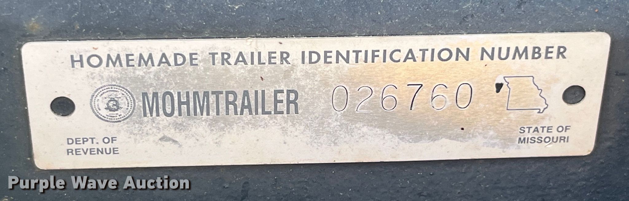 2019 Shop built Windmill trailer. VIN: M0HMTRAILER026760. Dimensions Overall: 32' 6" L x 105" W, Deck: 19' 6" L x 101" W. Features Deck type: Steel. Chassis Landing gear: Dual, Suspension: Air, Brakes: Air, Axles: Quad. Tires Aluminum wheels, Size: 255/70R22.5. Missouri title. Title distribution may be delayed up to 14 days from verification of funds. Lender owned. Item condition and history are unknown. Exchange Bank of Northeast Missouri / Memphis Location. MEMPHIS, MO 63555