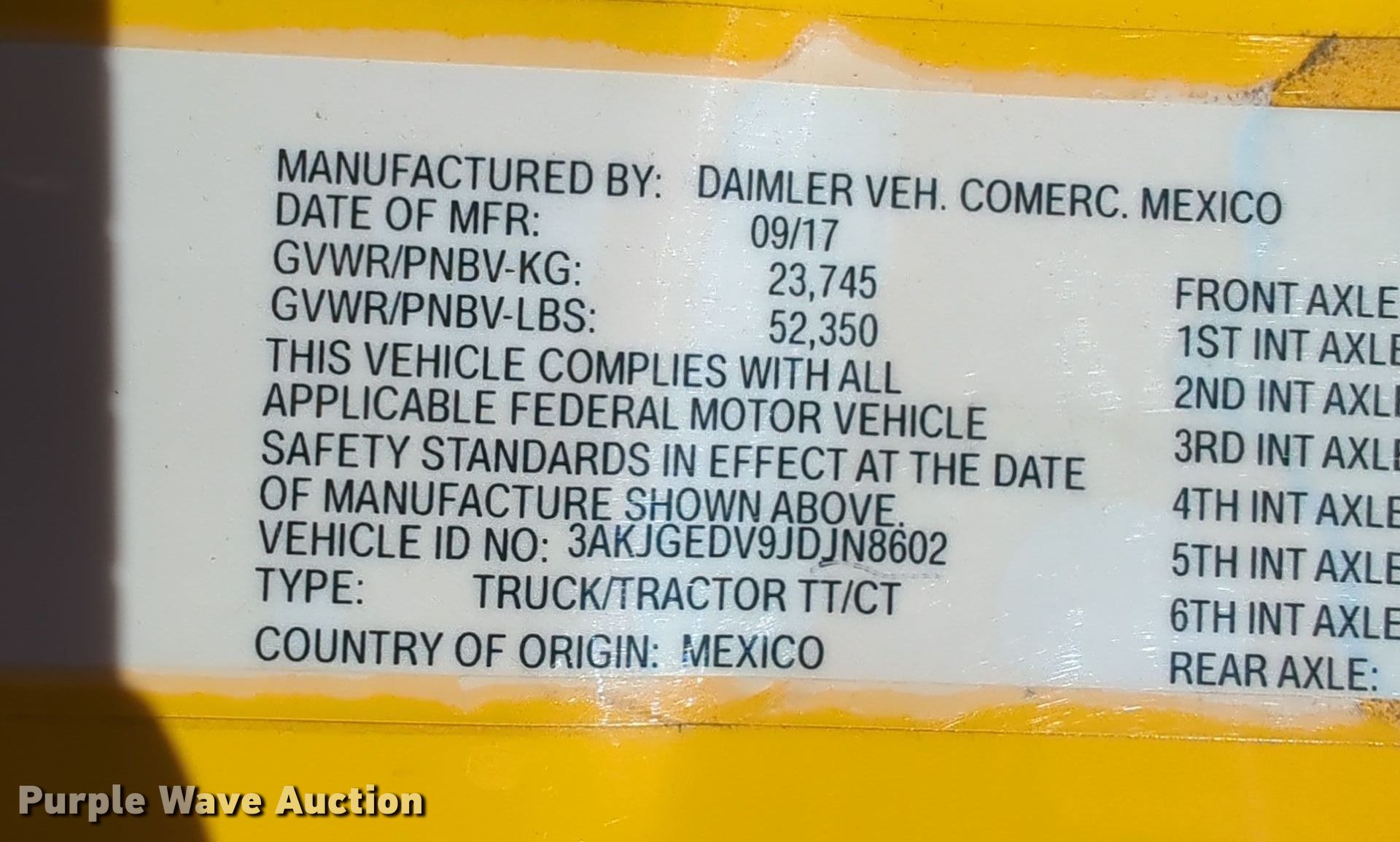 • EQ2452 image for item EQ2452 2018 Freightliner Cascadia 125 semi truck