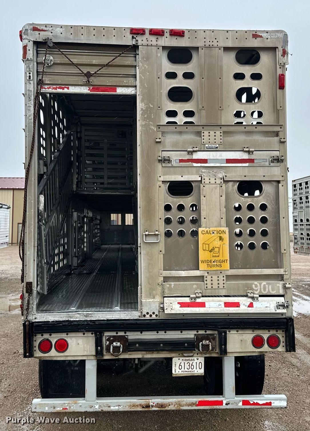 2000 Wilson PSAL-303P livestock trailer. VIN: 1W1C4F2VXYD522870. Dimensions Overall: 52' L x 102" W. Features Decks: Two, Center gates: 4. Chassis Landing gear: Dual, Suspension: Air, Brakes: Air, Axles: Tandem. Tires Aluminum wheels, Size: 11R22.5. Kansas title. Title distribution may be delayed up to 14 days from verification of funds. Barron Trucking. Liberal, KS 67901