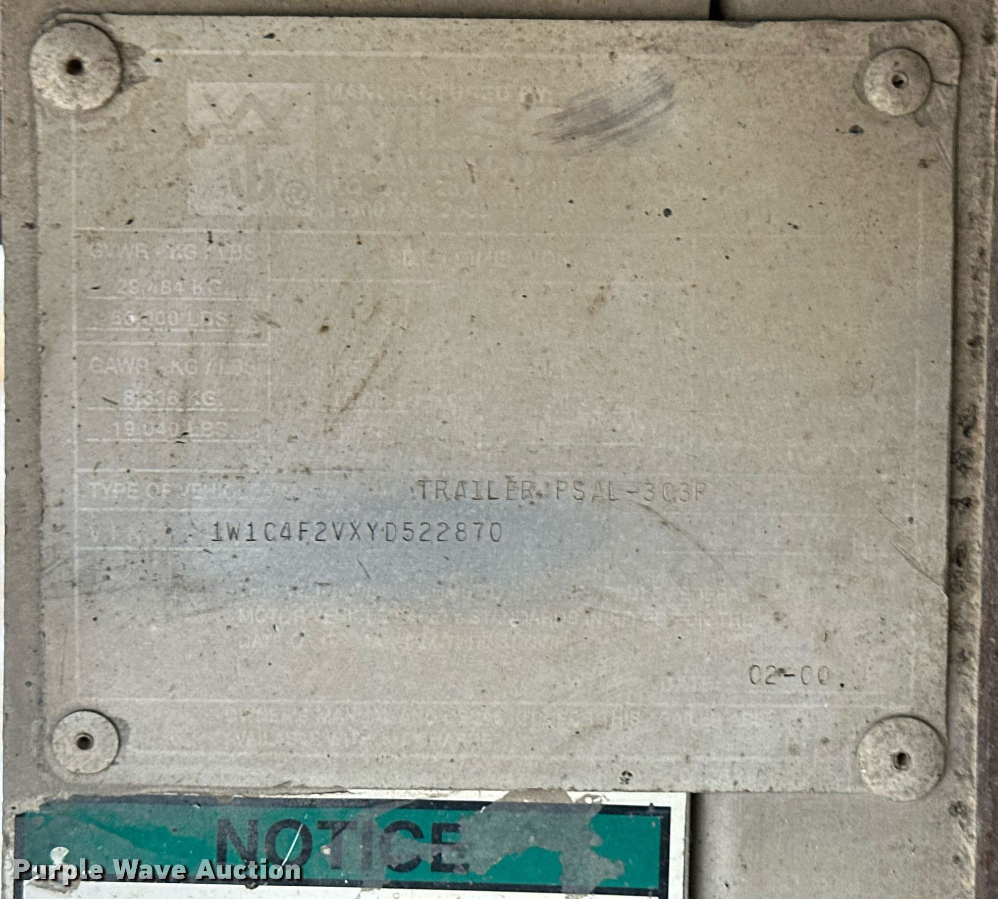 Purple Wave is selling a used Livestock Trailer in Kansas. This item is a 2000 Wilson PSAL-303P livestock trailer with the following: VIN: 1W1C4F2VXYD522870