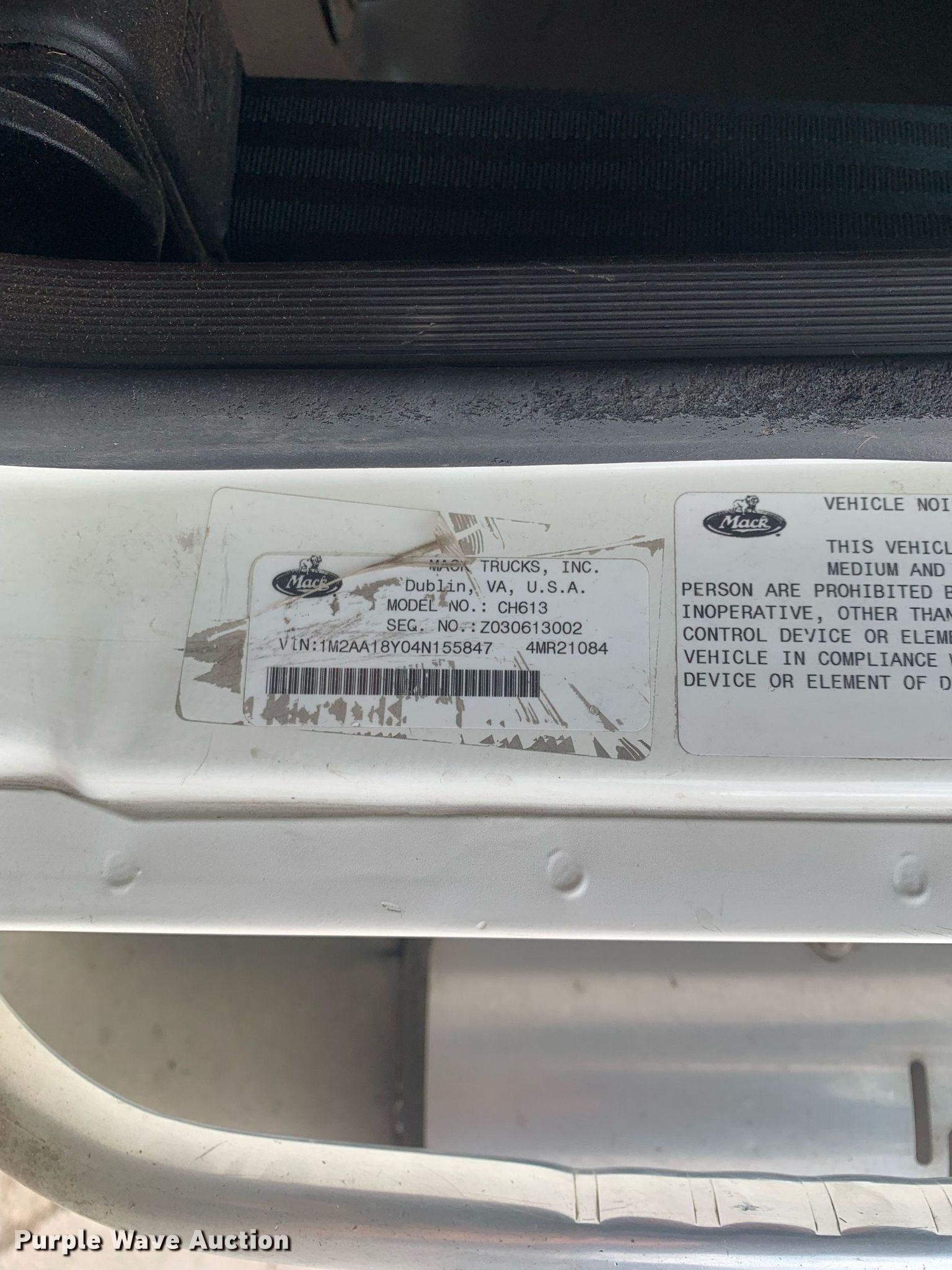 Purple Wave is selling a used Truck Tractor in Texas. This item is a 2004 Mack CH613 semi truck with the following: Miles: 953,670 on odometer, Hours: 37,303 on meter, VIN: 1M2AA18Y04N155847, Unit #: E0211