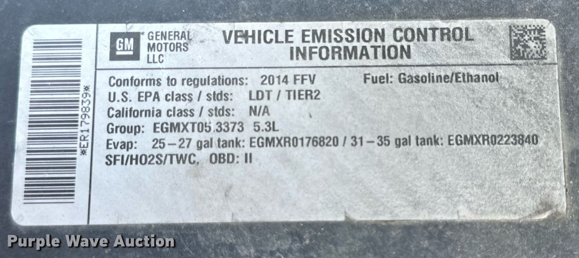 2014 Chevrolet Tahoe Police SUV. Miles: 146,305 on odometer, VIN: 1GNLC2E04ER179839. Engine Displacement: 5.3L V8 OHV, Cylinders: 8, Fuel type: Gas. Transmission Automatic. Interior AC, Heat, Seat: Power driver, Power passenger, Power windows, Power locks, Cruise control. Tires Size: 265/60R17. Notes Dash warning indicator: TPMS, Center console missing. Texas title. Title distribution may be delayed up to 14 days from verification of funds. Wichita County Sherriff's Dept. Electra, TX 76360