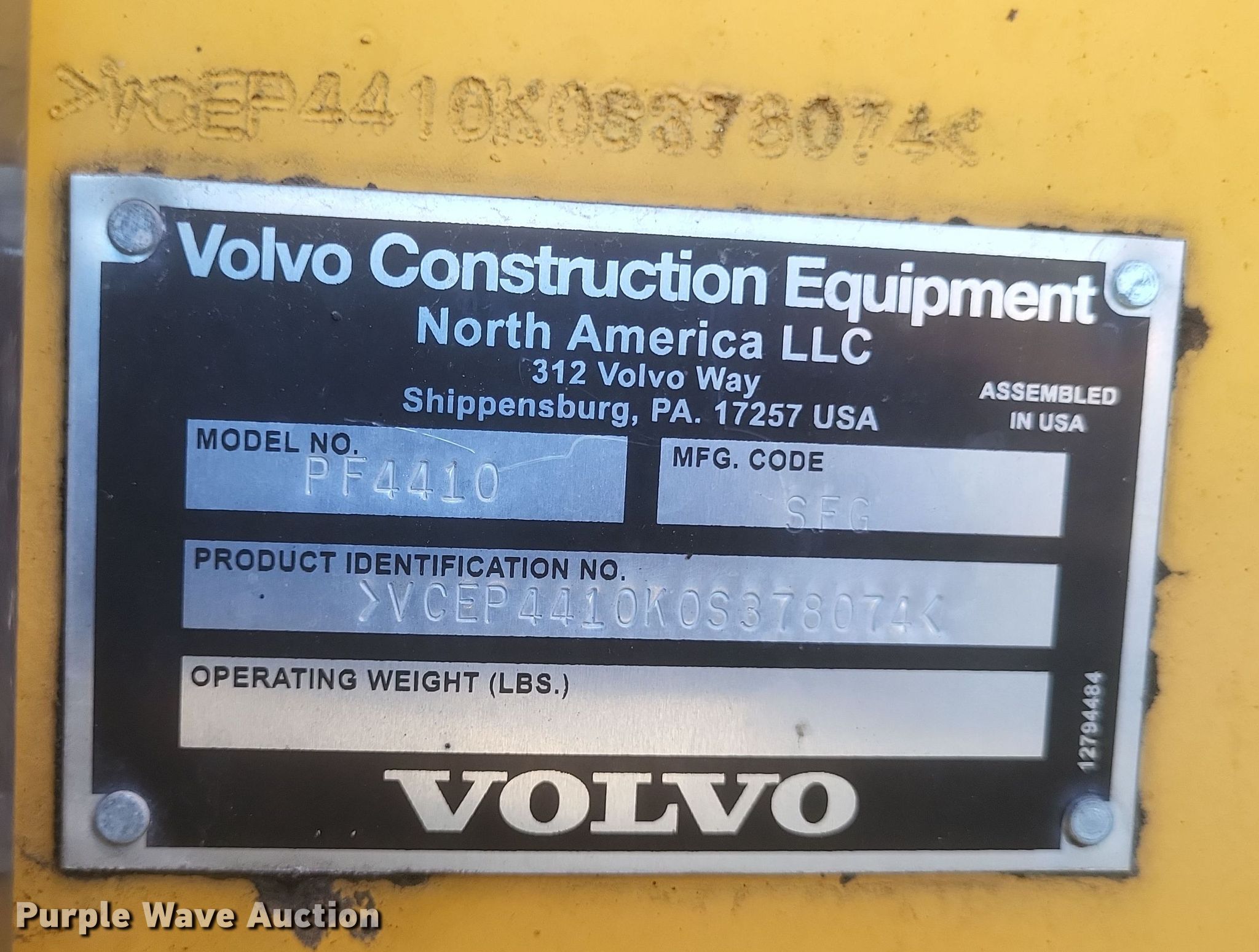 Purple Wave is selling a used Paver or Screed in Missouri. This item is a 2016 Volvo PF4410 paver with the following: Hours: 912 on meter, Serial: VCEP4410K0S378074