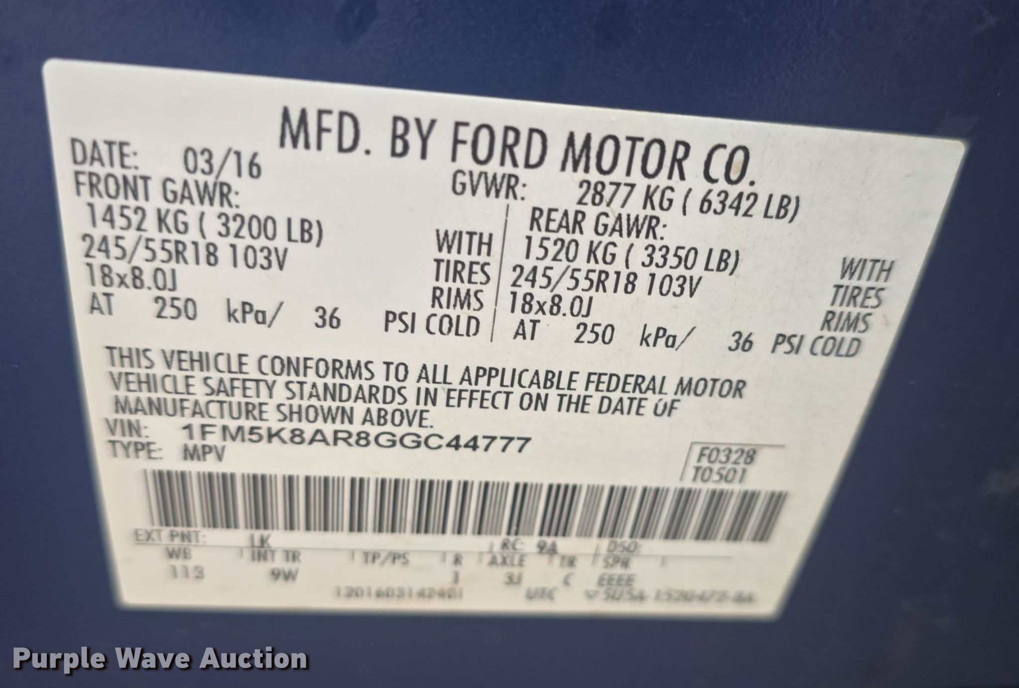 - VIN: 1FM5K8AR8GGC44777