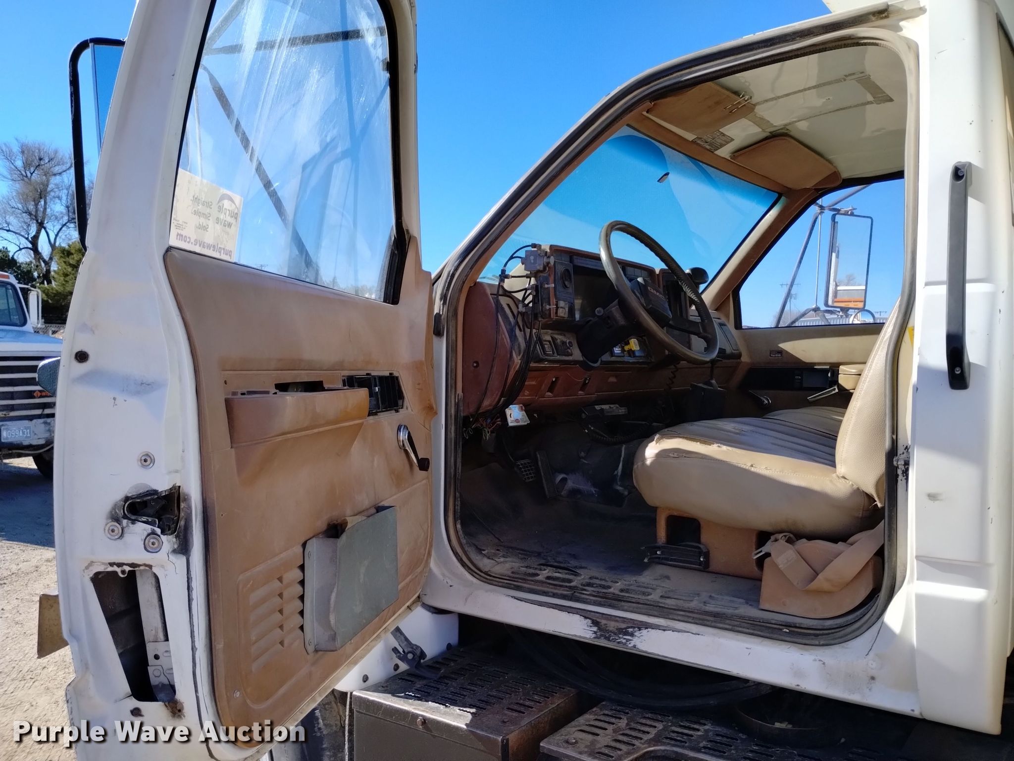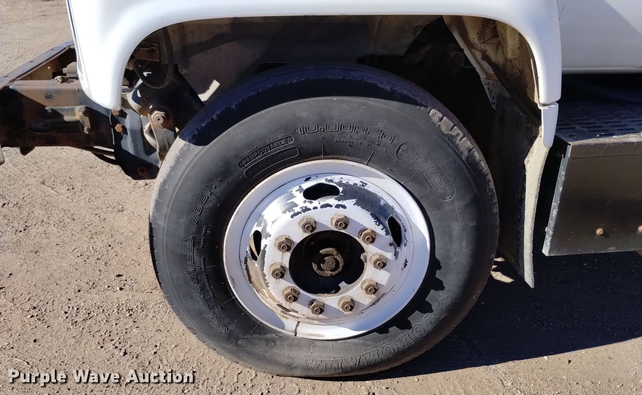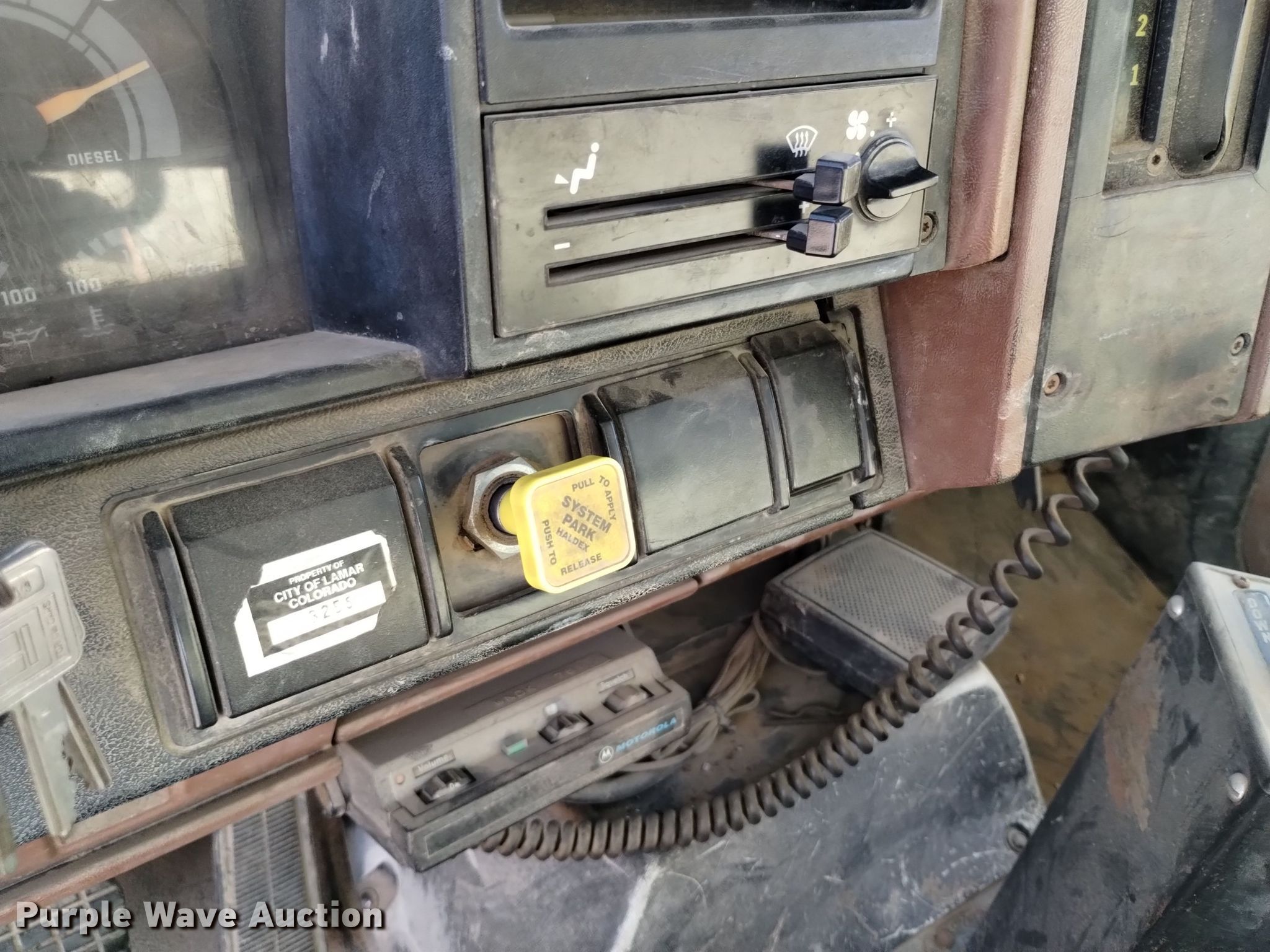 1991 GMC Top Kick dump truck. Miles: 99,710 on odometer, Hours: 13,033 on meter, VIN: 1GDM7H1J8MJ522339, Unit #: 3352. Engine Caterpillar 3116, Displacement: 6.6L, Cylinders: 6, Fuel type: Diesel. Transmission Automatic. Chassis Axles: Single, Suspension: Spring, Brakes: Air, PTO, Front mount PTO. Interior Heat. Features Dump bed Kois, 10' L x 96" W, Side height: 28", Bed type: Steel, Ram: Single, End gate: Manual. Tires Size: 10.00R20. Notes Dump bed issues, needs hydraulic fluid. Colorado title. Title distribution may be delayed up to 14 days from verification of funds. City of Lamar. 103 North 2nd Street. Lamar, CO 81052