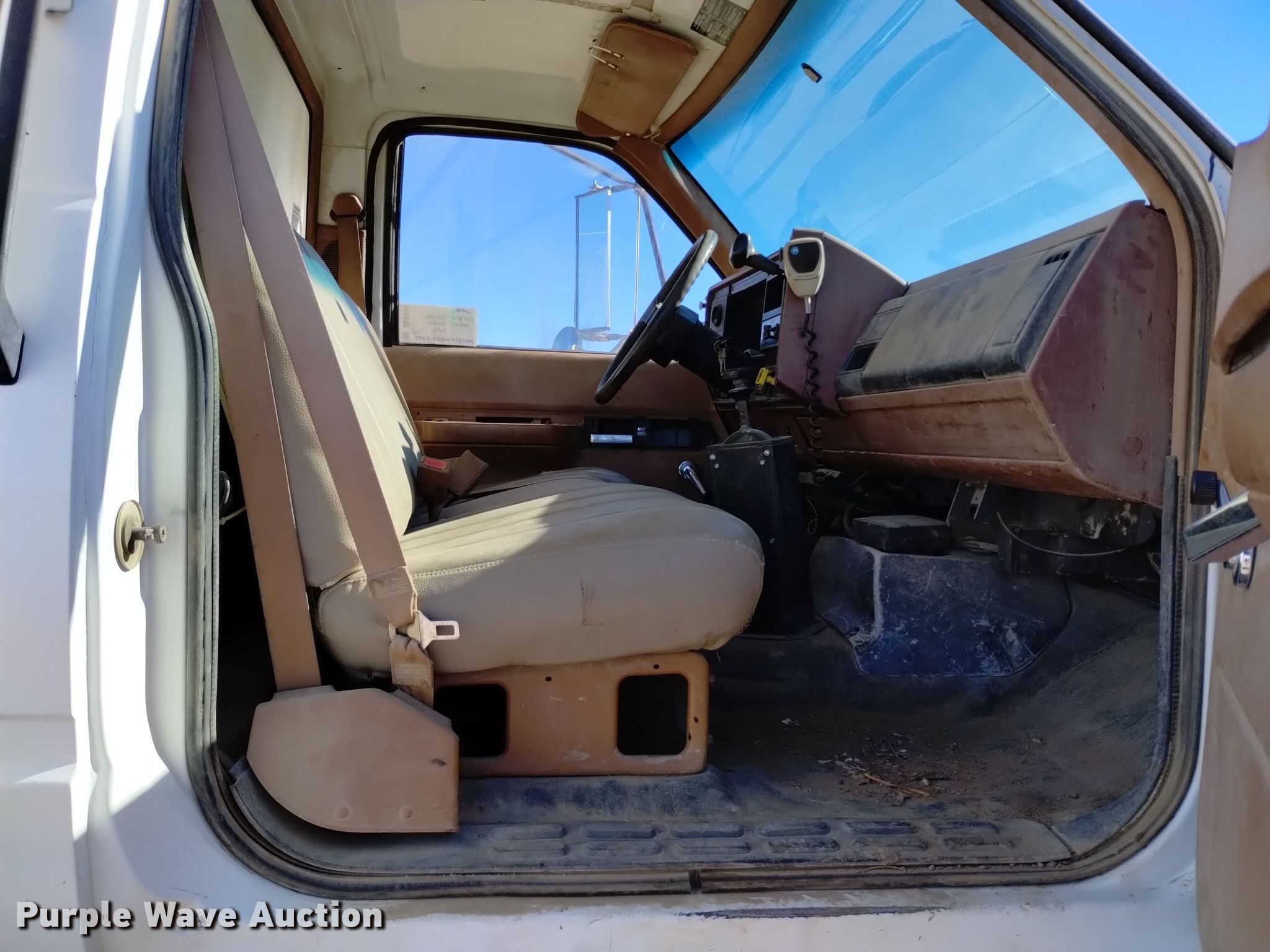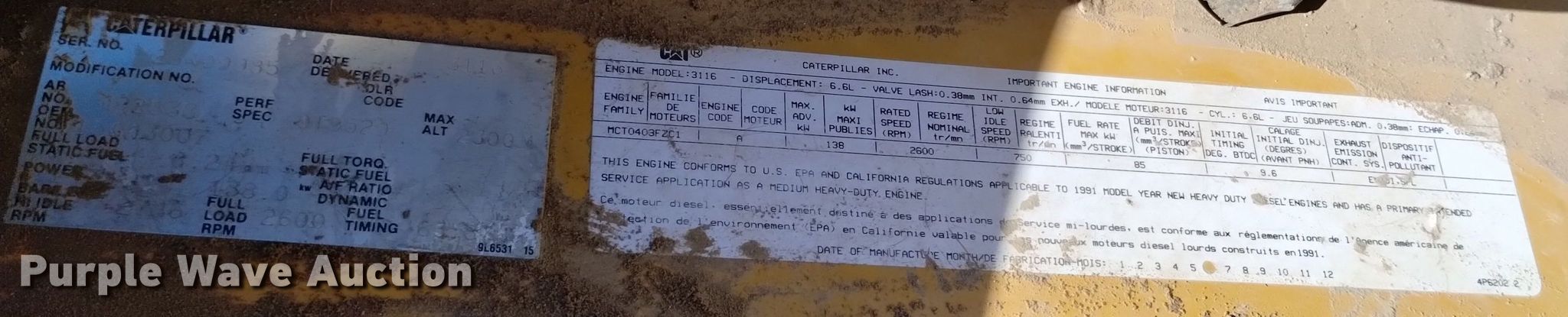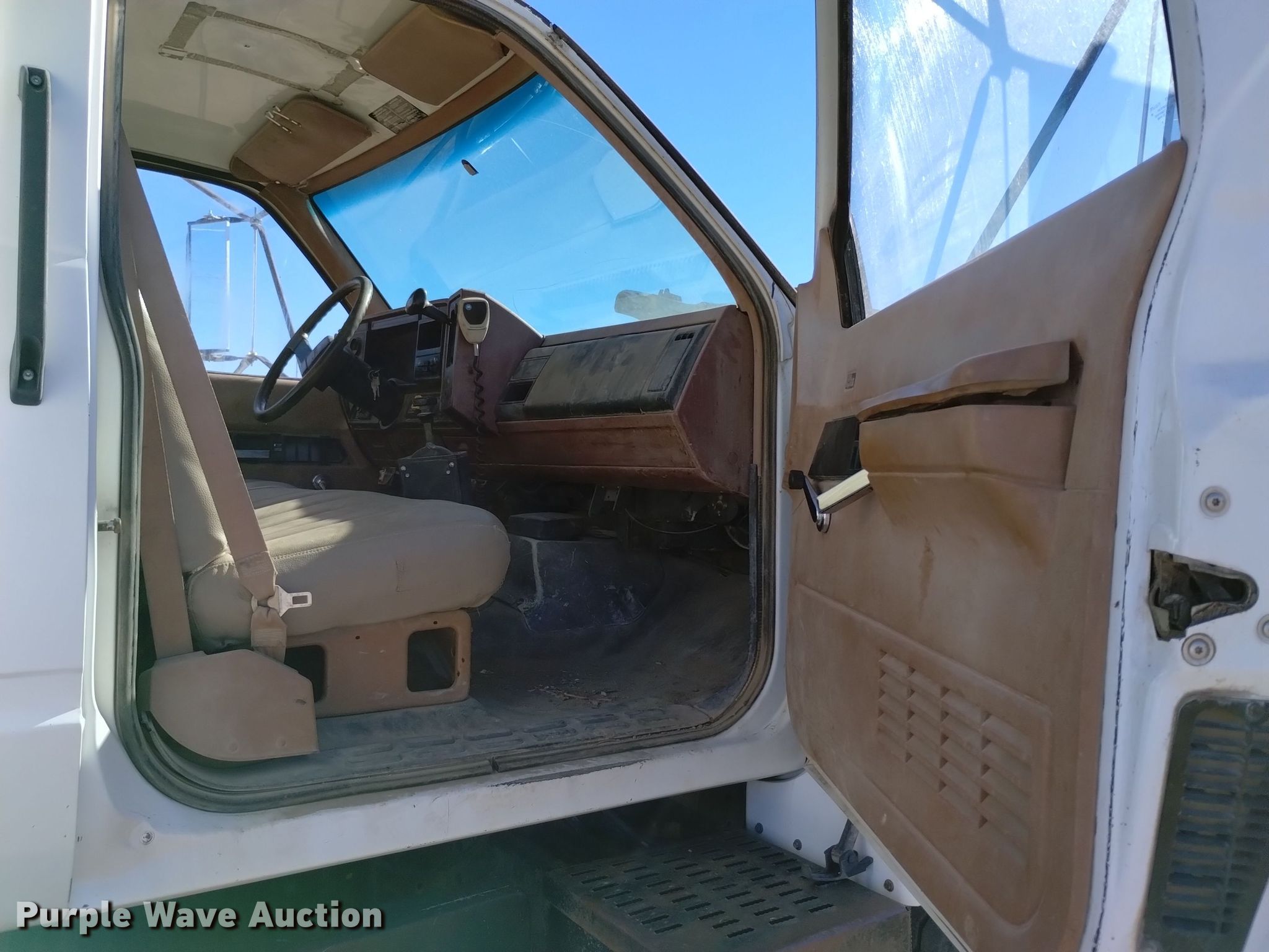 1991 GMC Top Kick dump truck. Miles: 99,710 on odometer, Hours: 13,033 on meter, VIN: 1GDM7H1J8MJ522339, Unit #: 3352. Engine Caterpillar 3116, Displacement: 6.6L, Cylinders: 6, Fuel type: Diesel. Transmission Automatic. Chassis Axles: Single, Suspension: Spring, Brakes: Air, PTO, Front mount PTO. Interior Heat. Features Dump bed Kois, 10' L x 96" W, Side height: 28", Bed type: Steel, Ram: Single, End gate: Manual. Tires Size: 10.00R20. Notes Dump bed issues, needs hydraulic fluid. Colorado title. Title distribution may be delayed up to 14 days from verification of funds. City of Lamar. 103 North 2nd Street. Lamar, CO 81052