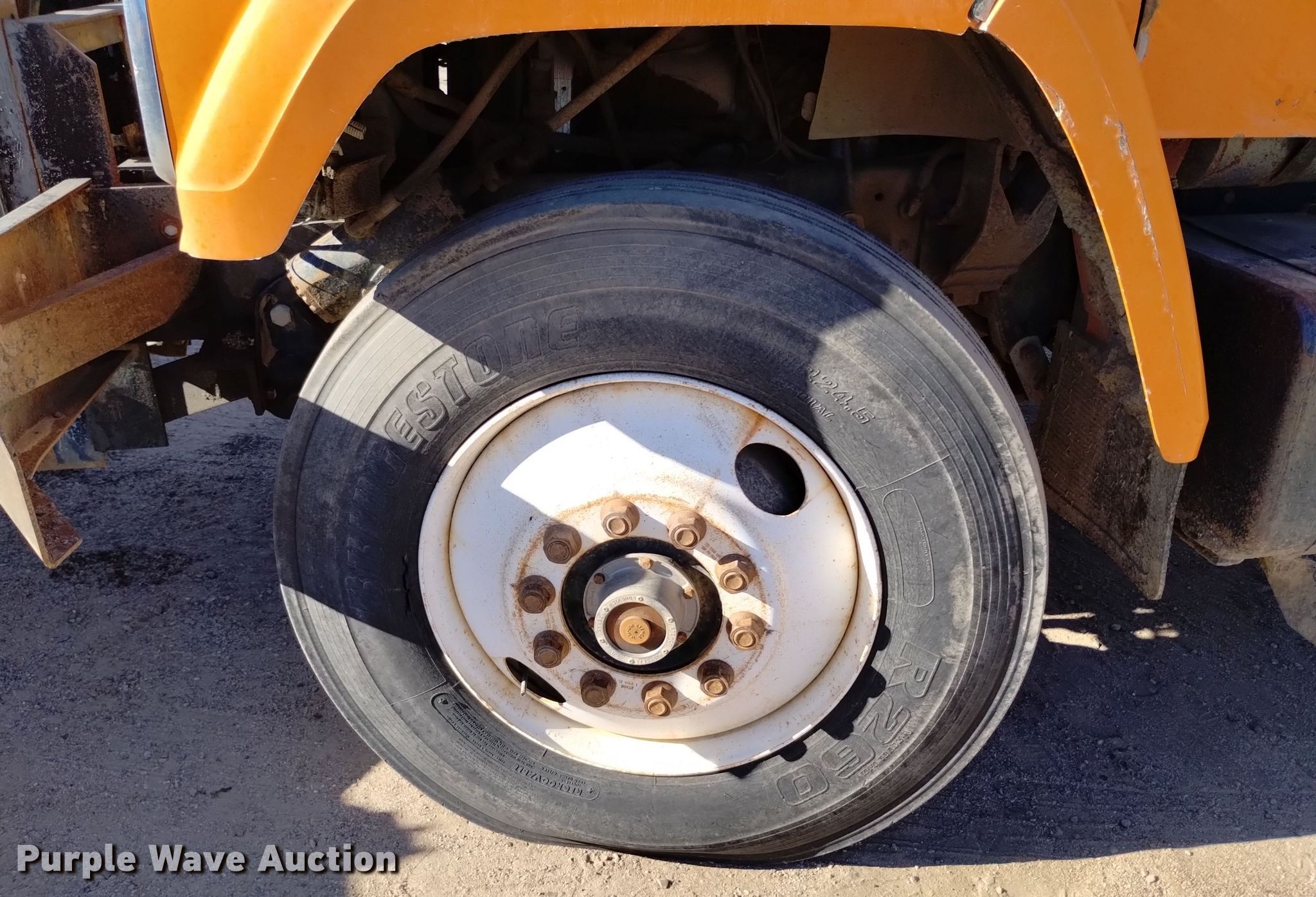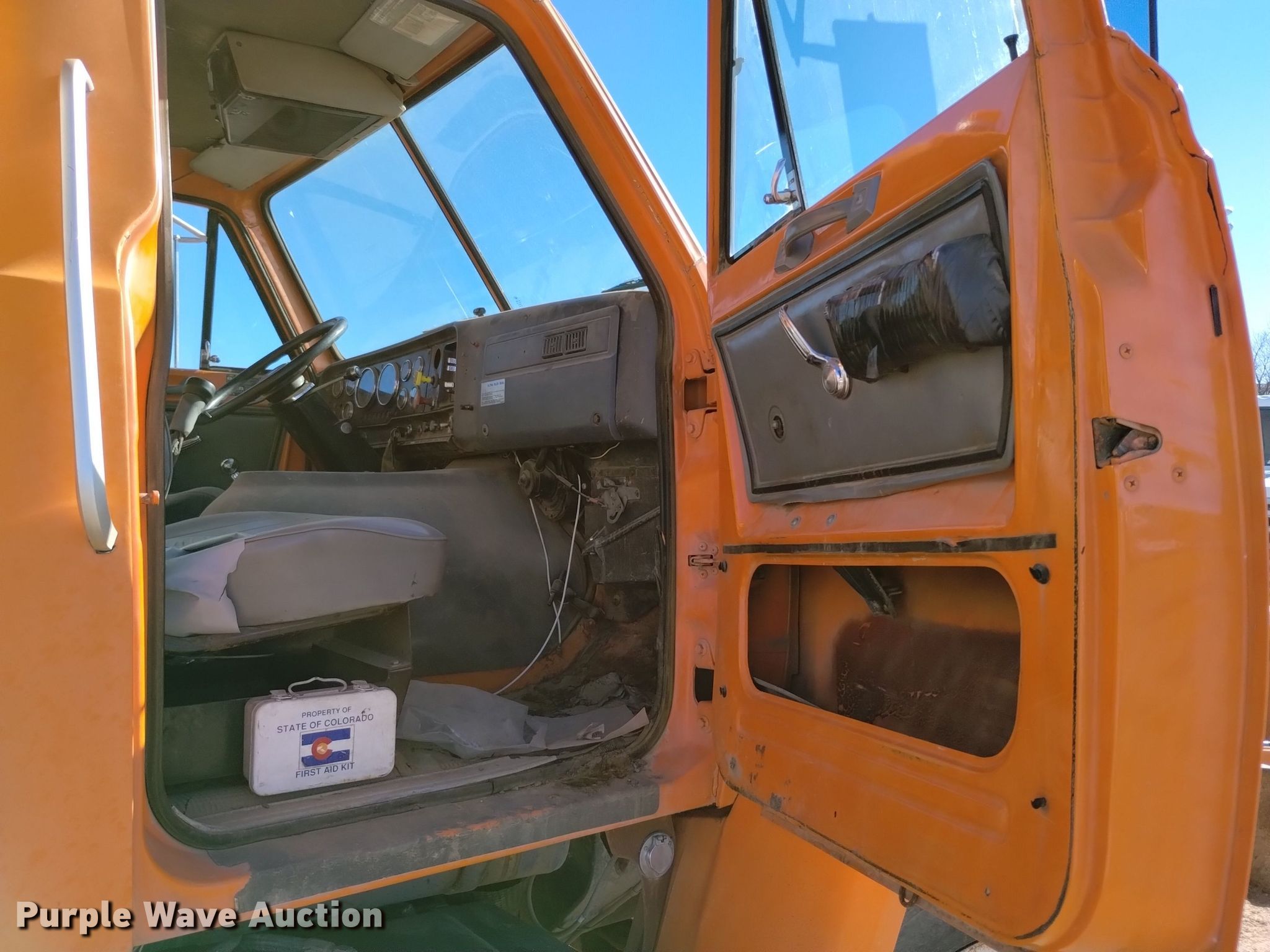 1989 GMC Brigadier dump truck. Miles: 455,169 on odometer, VIN: 4GDT9C4C3KV801840, Unit #: 4305. Engine Cummins, Displacement: 14.0L, Cylinders: 6, Fuel type: Diesel. Transmission Eaton Fuller Roadranger, Manual, Speed: 13. Chassis Axles: Tandem, Suspension: Spring over walking beam, Brakes: Air, PTO, Front mount PTO, GVWR: 50,000 lbs FAWR: 12,000 lbs, IAWR: 19,000 lbs, RAWR: 19,000 lbs. Interior AC, Heat. Features Dump bed 14' L x 96" W, Side height: 37", Bed type: Steel, Roll tarp, Ram: Dual, End gate: Air operated, Plow Width: 144". Tires Size: 11R24.5. Notes Unknown operating condition of plow, needs adjustments, Dump bed issues, needs hydraulic fluid. Colorado title. City of Lamar. 103 North 2nd Street. Lamar, CO 81052