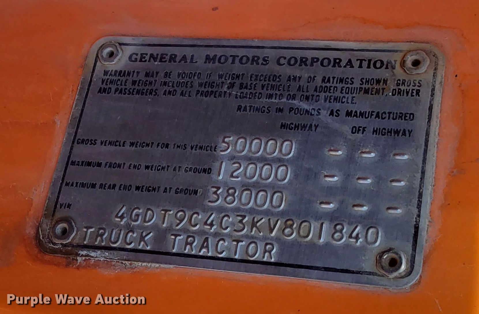 Purple Wave is selling a used Construction Dump Truck in Colorado. This item is a 1989 GMC Brigadier dump truck with the following: Miles: 455,169 on odometer, VIN: 4GDT9C4C3KV801840, Unit #: 4305