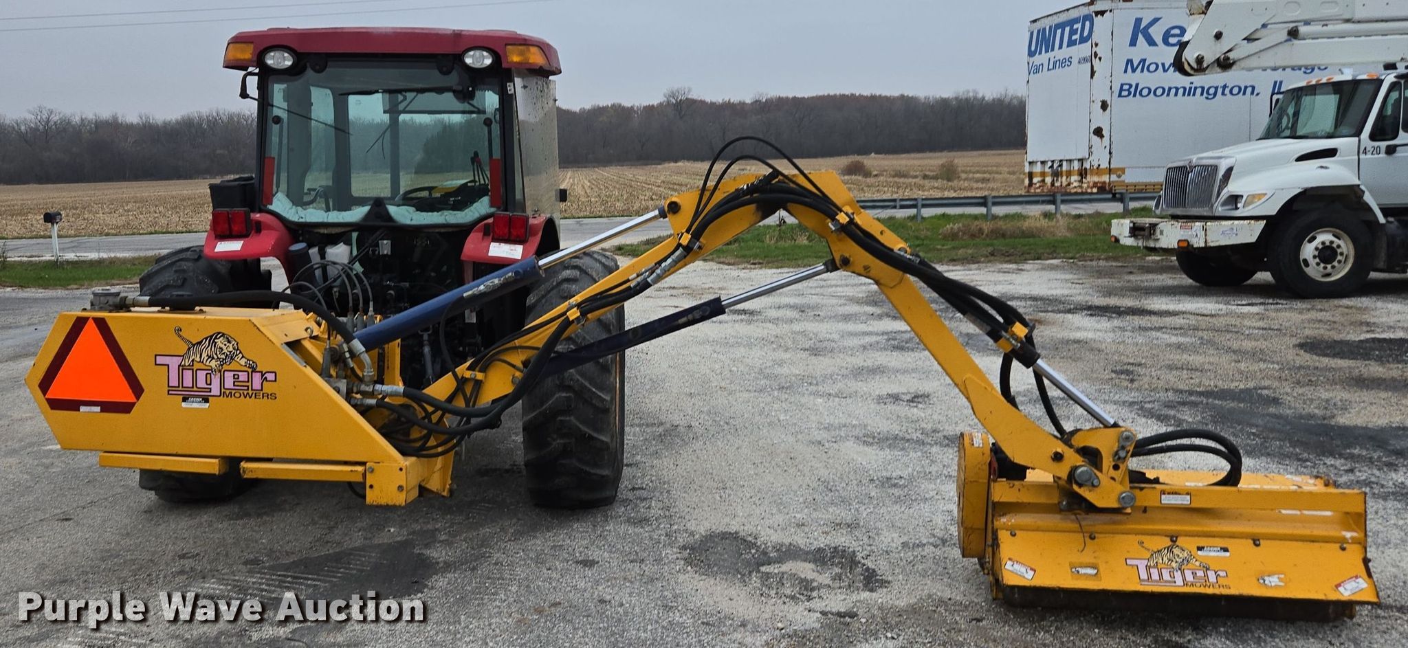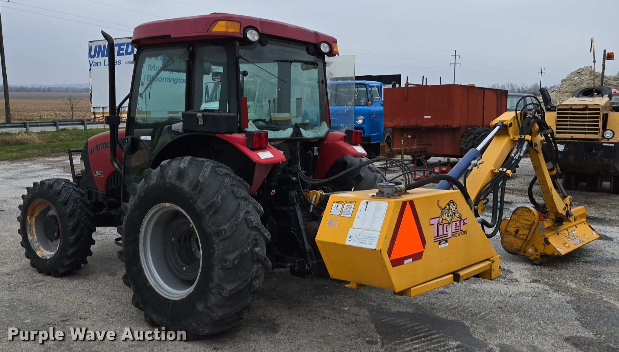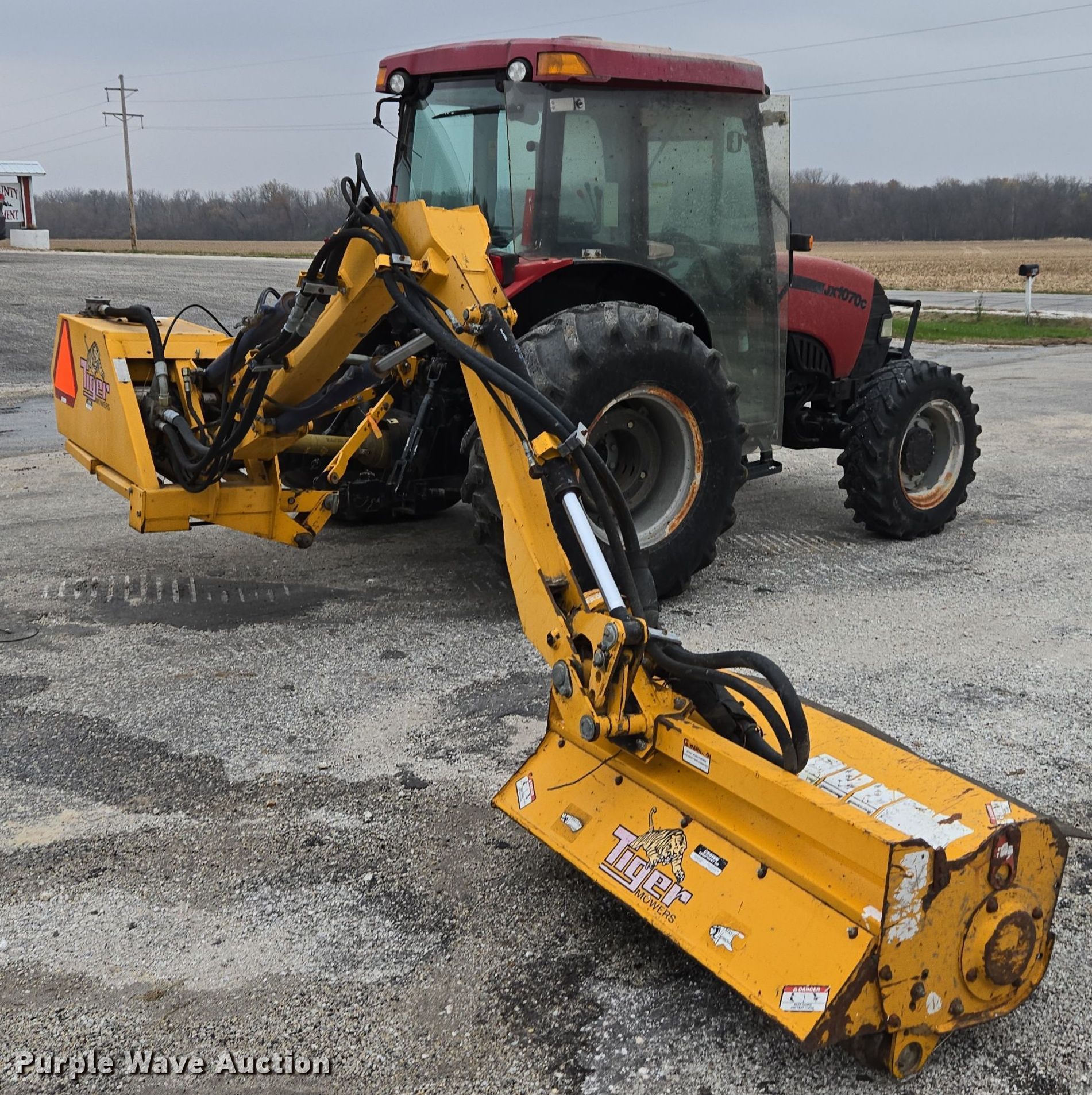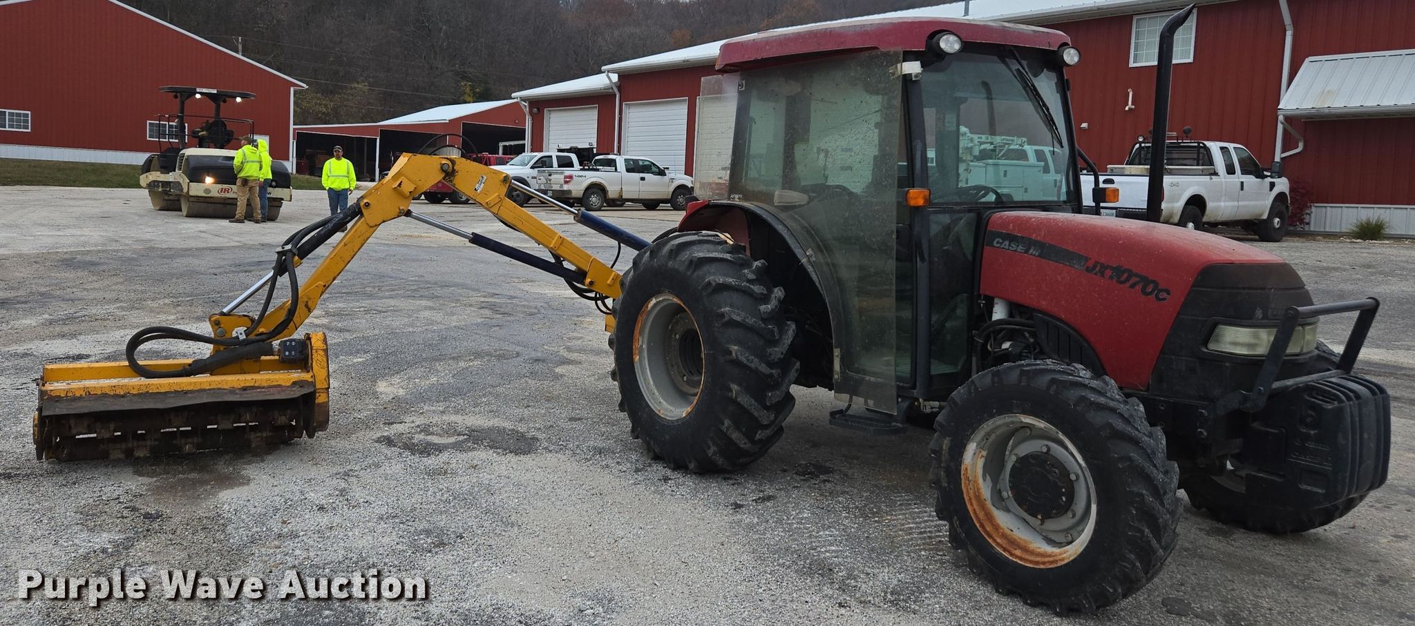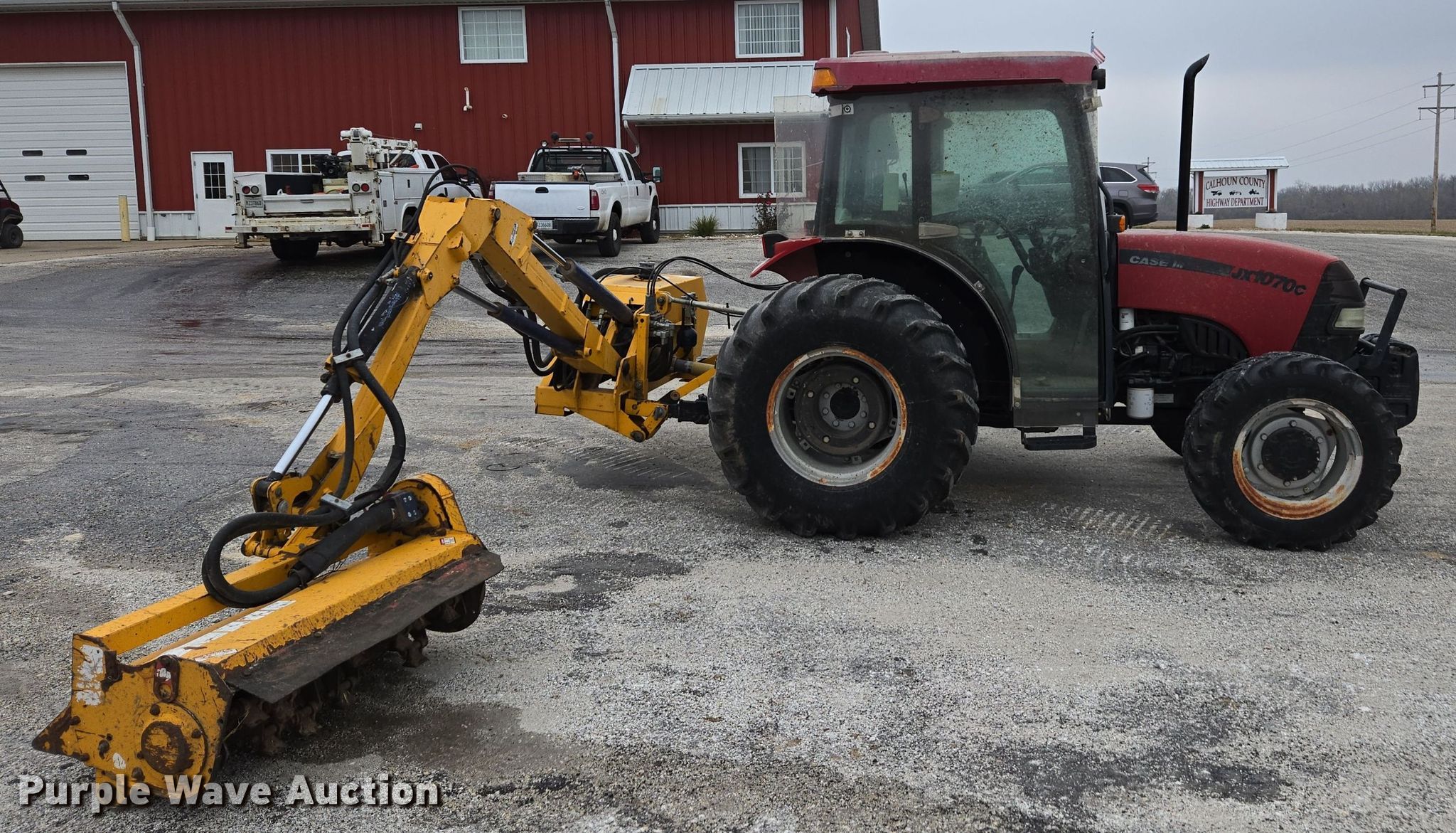 2006 Case IH JX1070C MFWD tractor. Hours: 1,842 on meter, Serial: HJH061718. Engine Iveco, Cylinders: 3, Fuel type: Diesel, HP: 70. Transmission Synchro, 16F - 16R, Left-hand reverser, Differential lock. Operators station AC, Heat. Features PTO: 540, Three point Top link, Tiger side boom flail mower PTO: 540, Width: 48". Tires Front: 10.5-20, Rear: 16.9-24, Wheel weights: 6. Calhoun County IL Highway Dept. Hardin Precinct, IL 62047