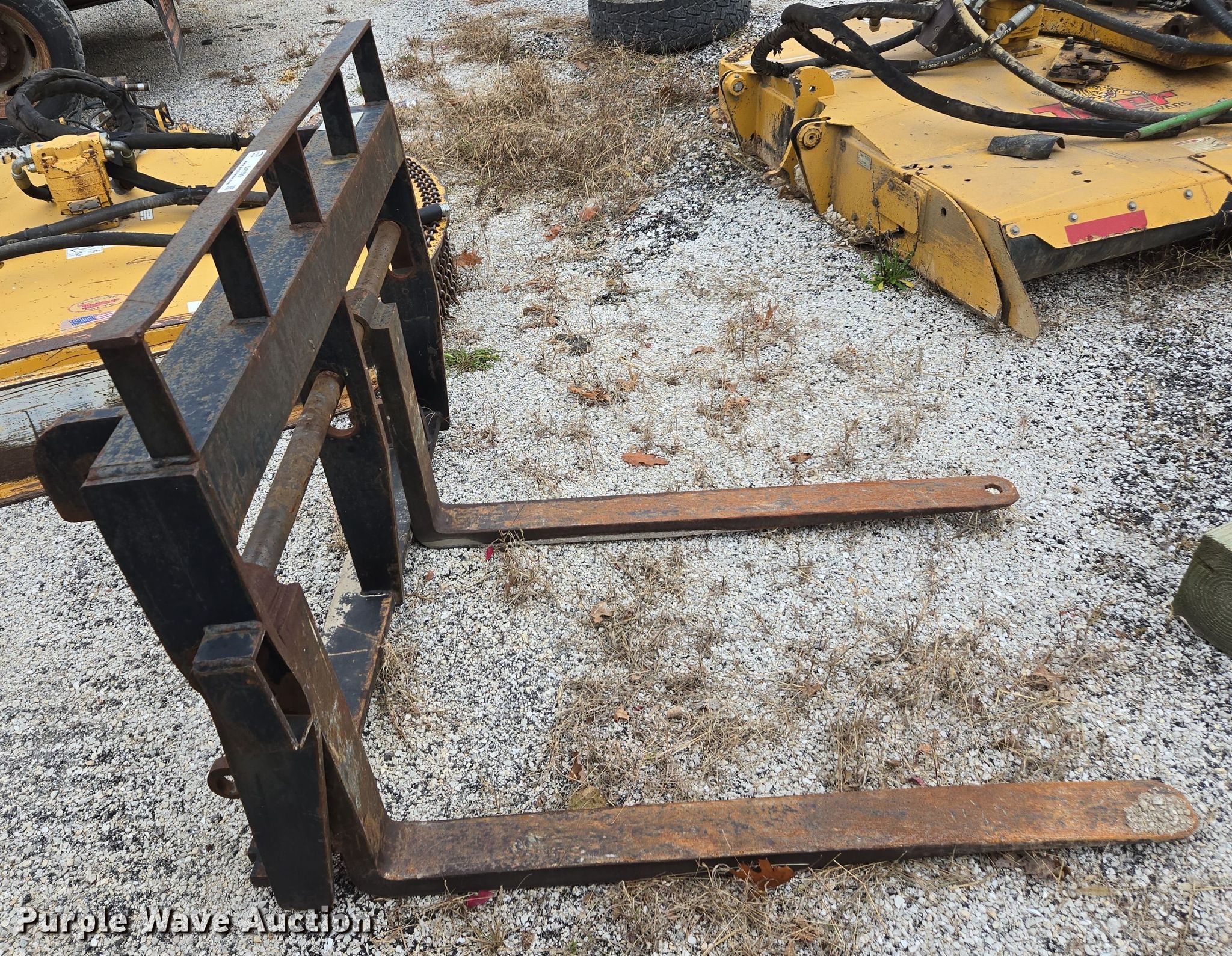 Purple Wave is selling a used Backhoe Attach. in Illinois. This item is a JCB forks with the following: Length: 48", Removed from JCB backhoe