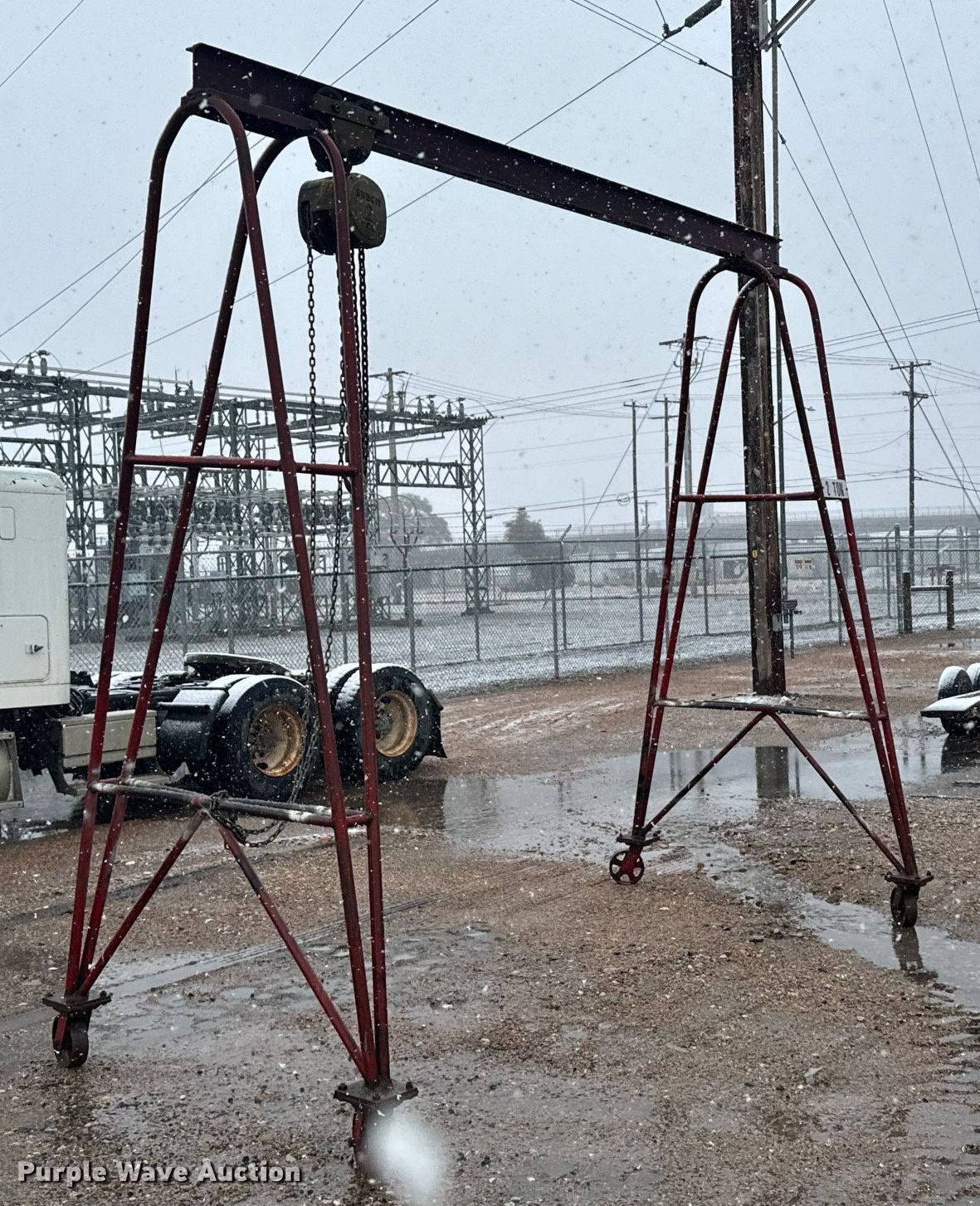 Purple Wave is selling a used Tools in Nebraska. This item is a A-frame hoist with the following: Dimensions: 13' x 12', Capacity: 2 tons