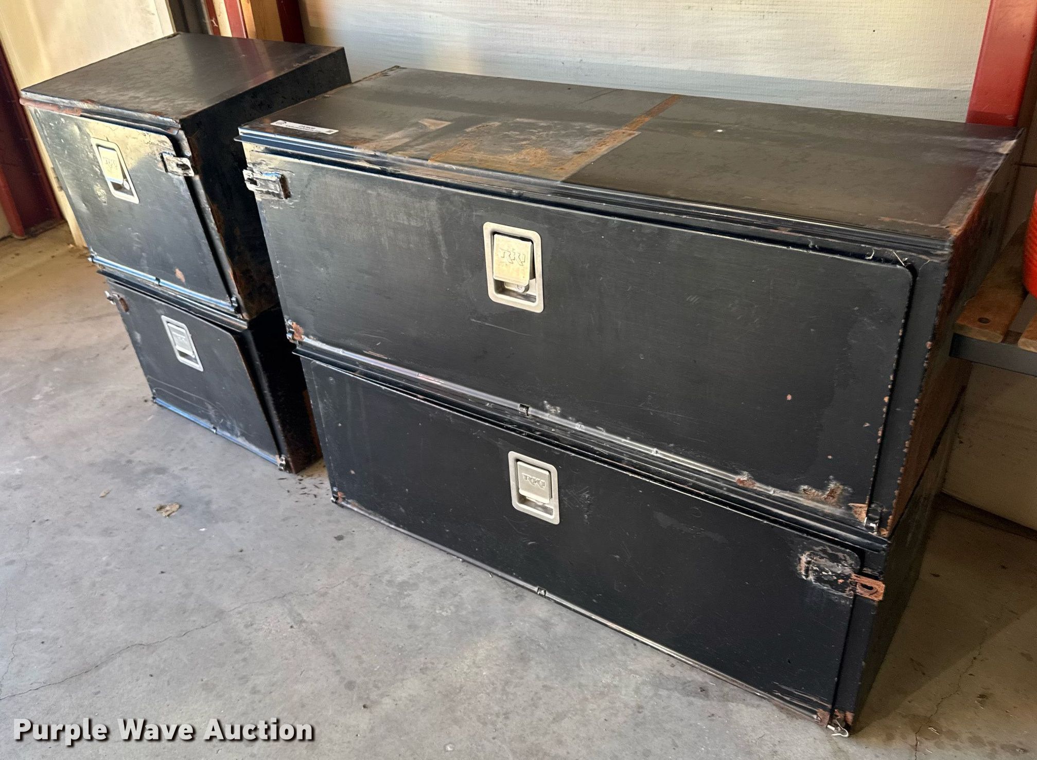 Purple Wave is selling a used Automotive Parts or Acces. in Kansas. This item is a (4) toolboxes with the following: (2) 24" x 18"x 18", (2) 48" x 18" x 18", (2) light bars