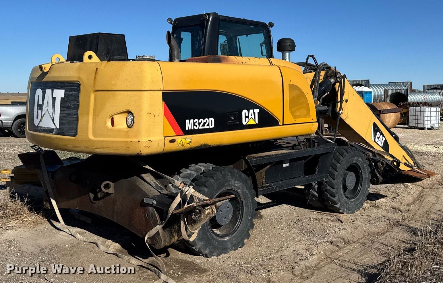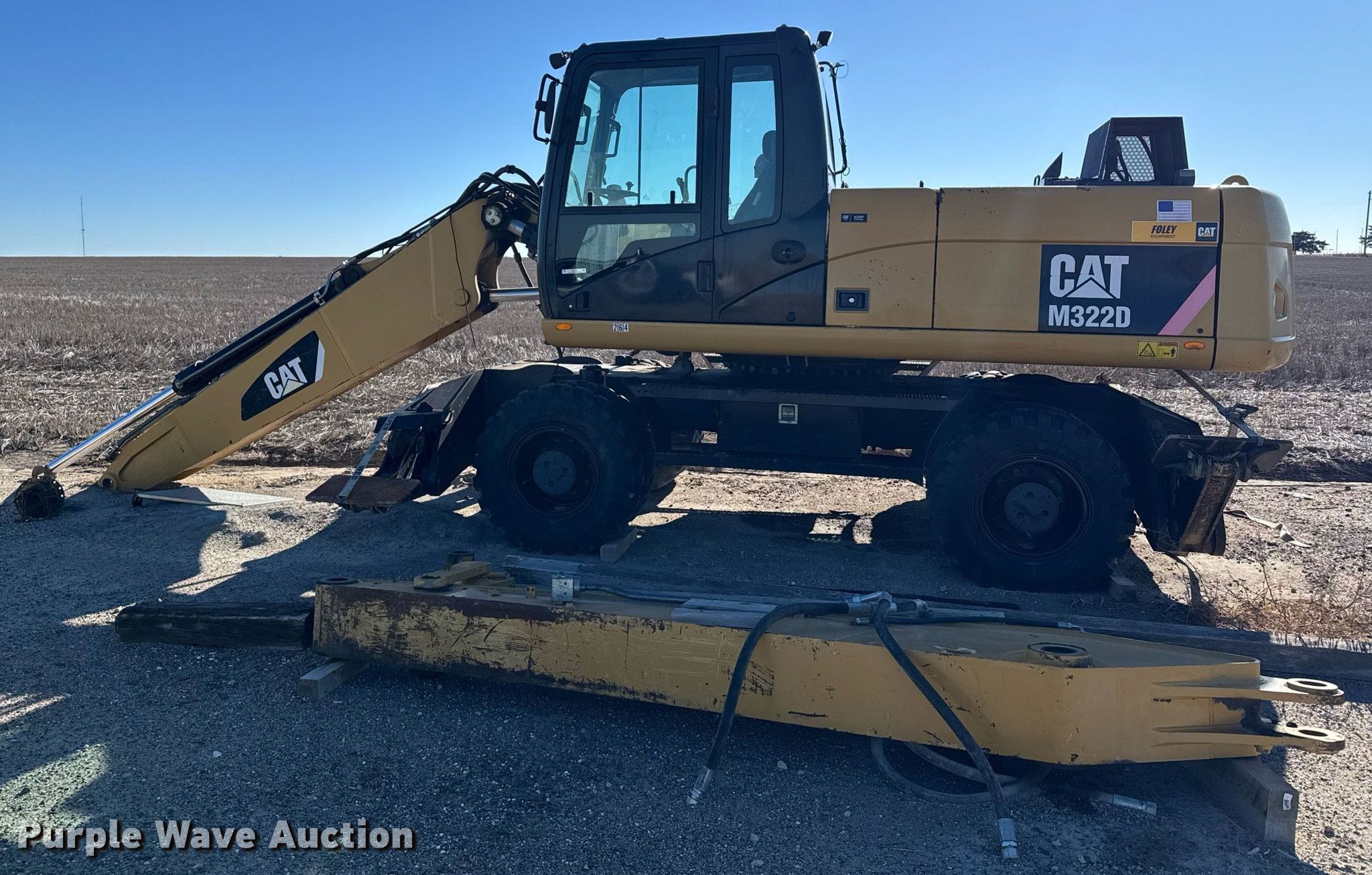 Purple Wave is selling a used Wheeled Excavator in Kansas. This item is a 2011 Caterpillar M322D wheeled excavator with the following: Hours: Unknown, Serial: CATM322DLD2W00264