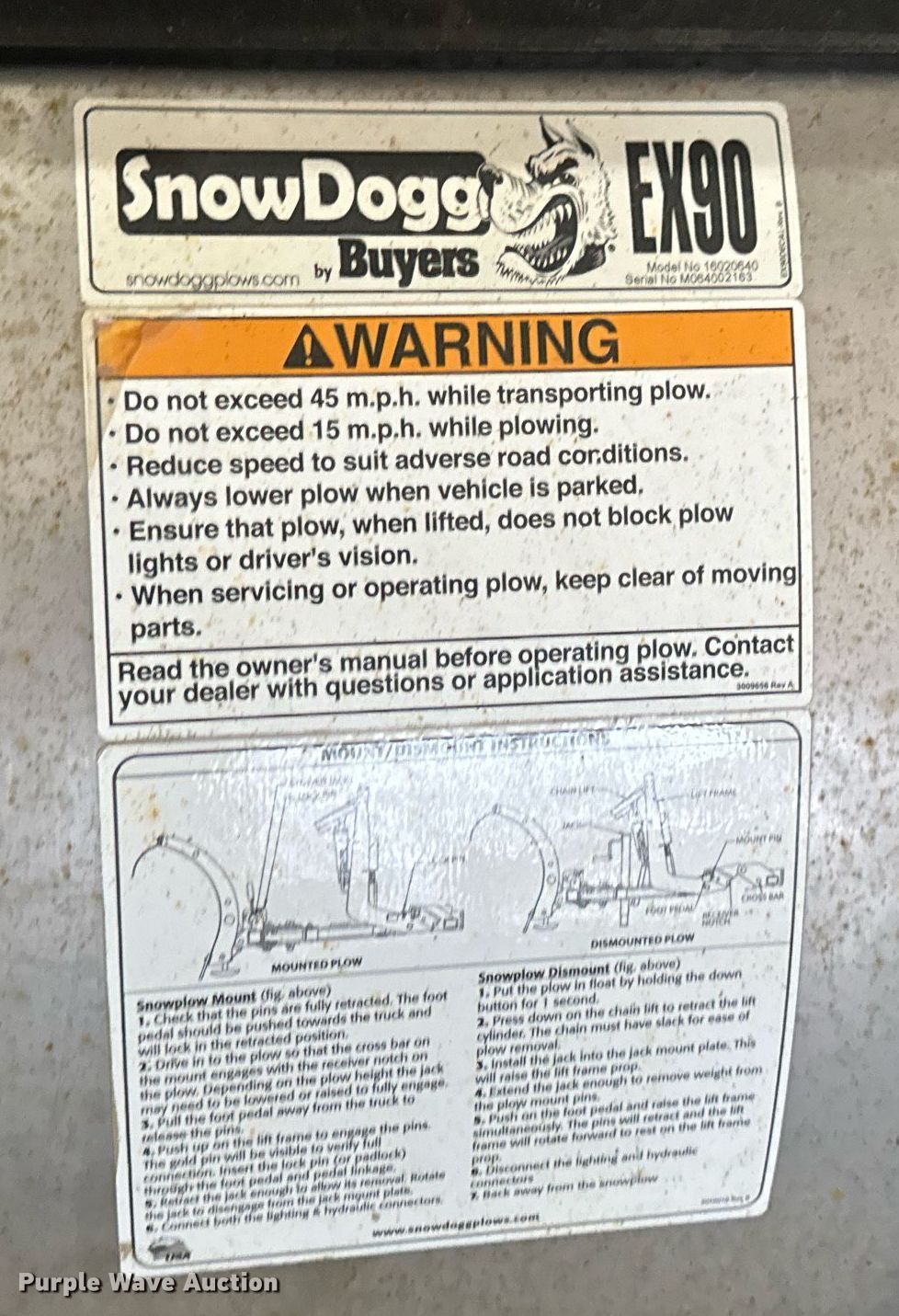 Purple Wave is selling a used Truck Part and Attach. in Missouri. This item is a Buyers SnowDogg 16011000 snow plow with the following: Serial: 014819