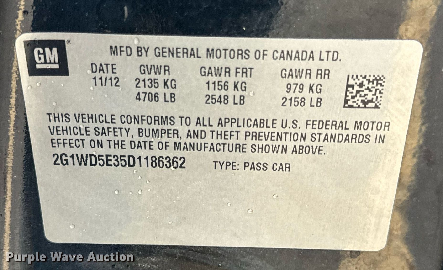Purple Wave is selling a used Passenger Vehicle in Missouri. This item is a 2013 Chevrolet Impala Police Cruiser with the following: Miles: 95,452 on odometer, VIN: 2G1WD5E35D1186362