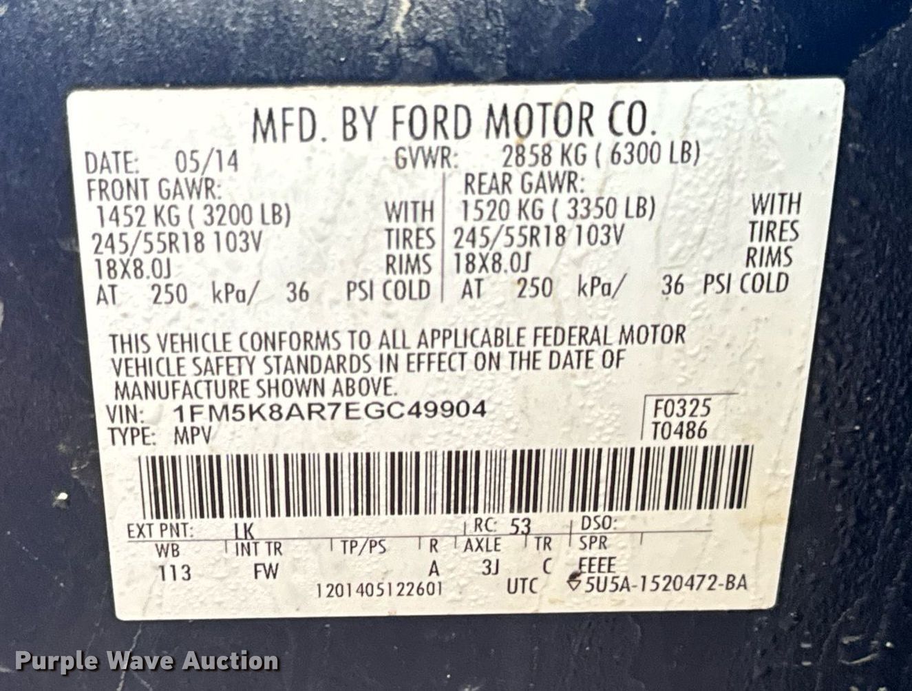 Purple Wave is selling a used Passenger Vehicle in Missouri. This item is a 2014 Ford Explorer Police Interceptor SUV with the following: Miles: 127,952 on odometer, Hours: 13,879 on meter, VIN: 1FM5K8AR7EGC49904