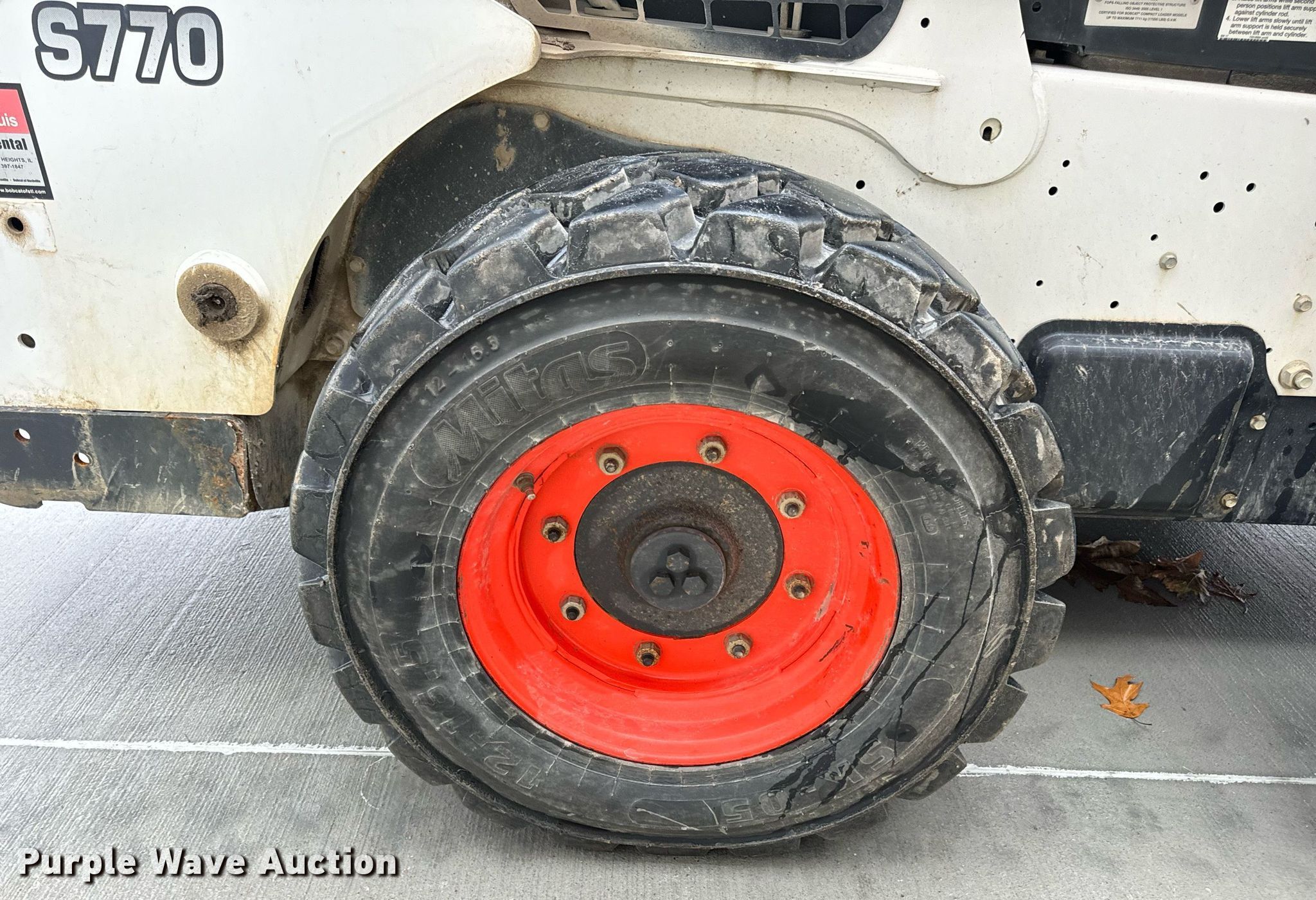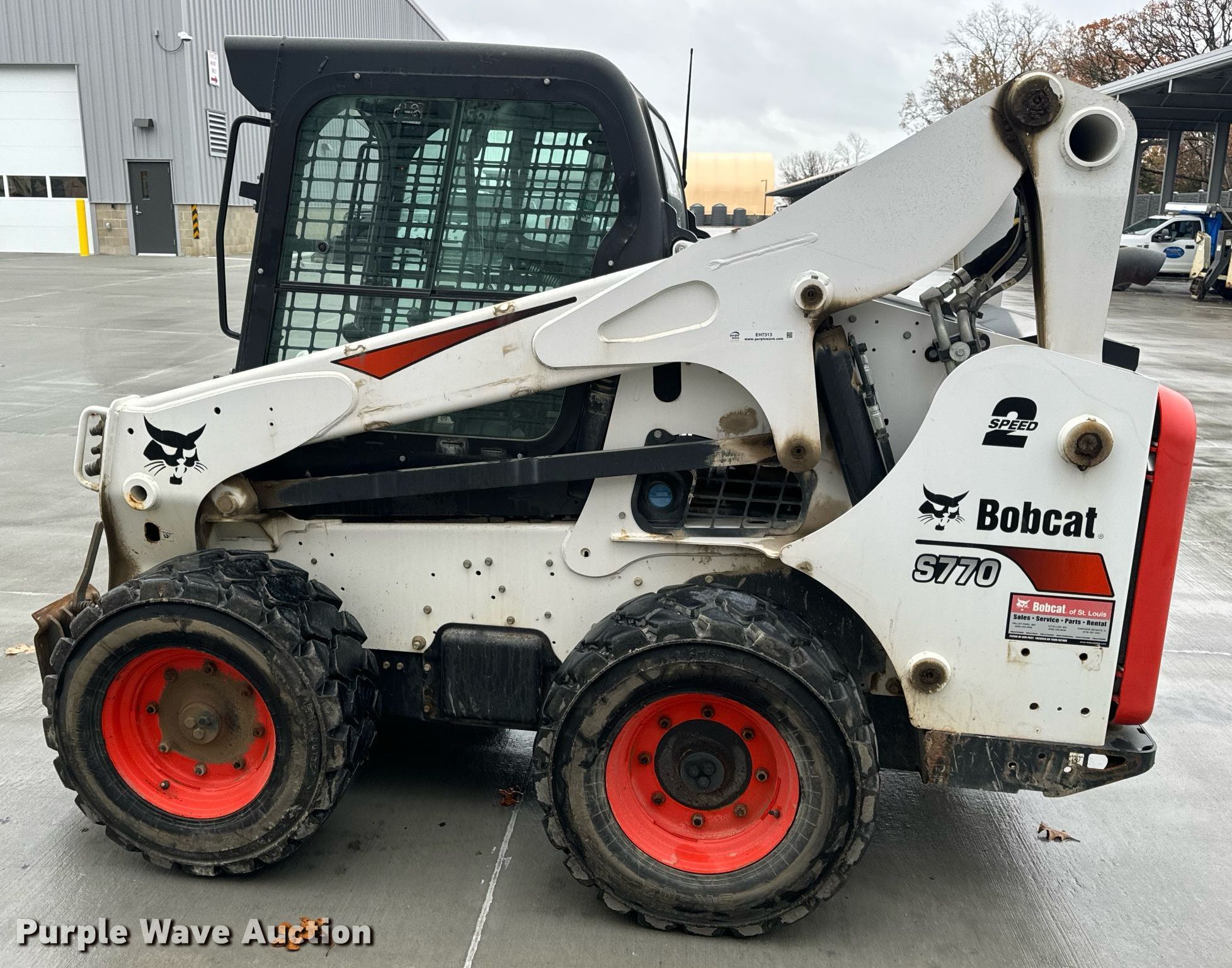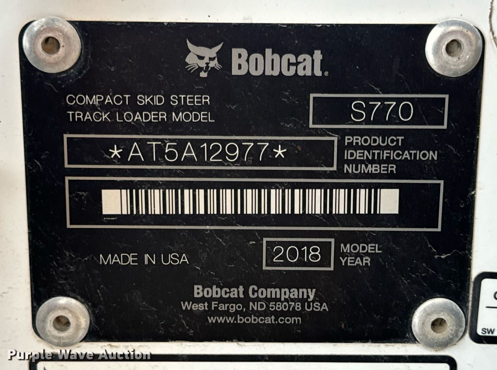 Purple Wave is selling a used Skid Steer Loader in Missouri. This item is a 2018 Bobcat S770 skid steer loader with the following: Hours: 645 on meter, Serial: AT5A12977, Unit #: 3002