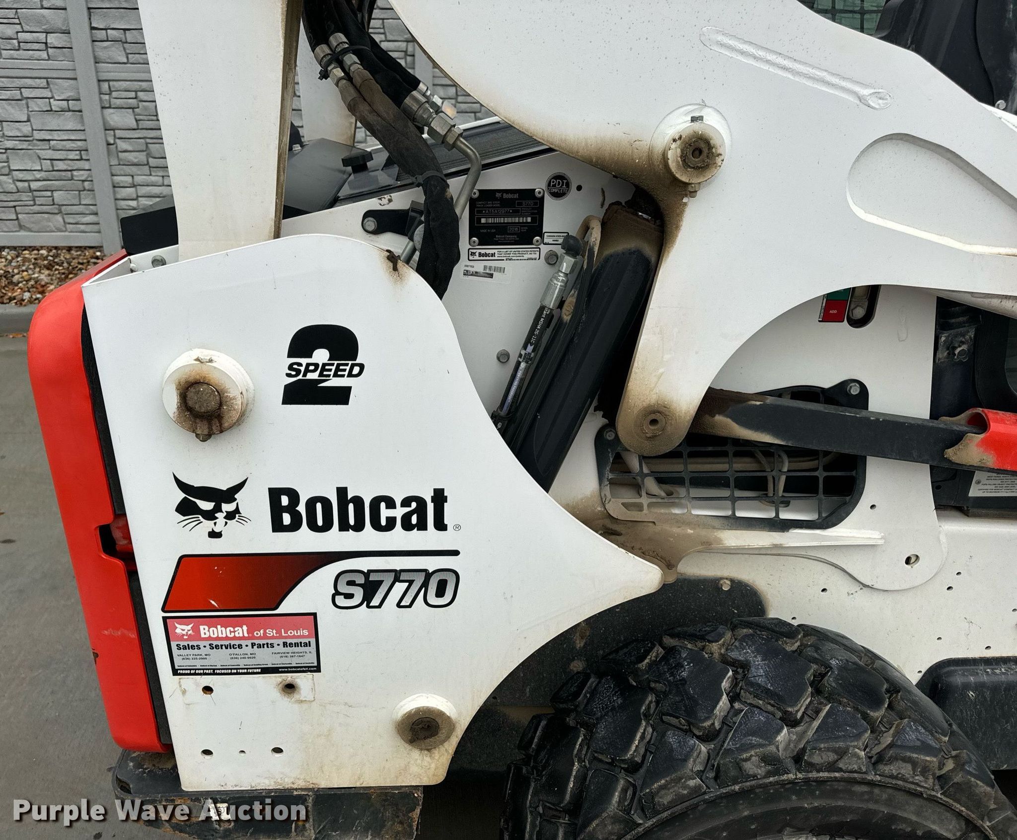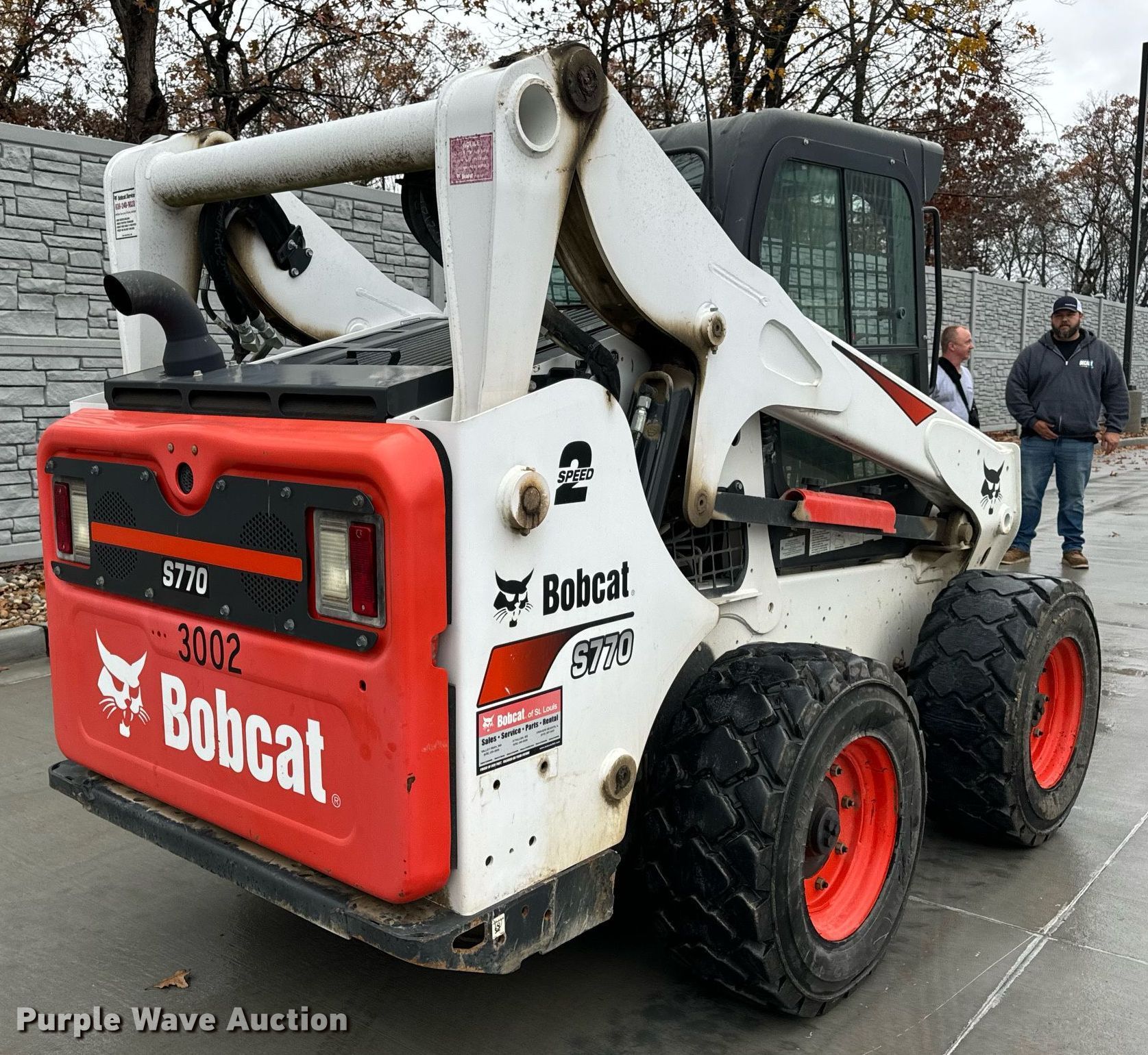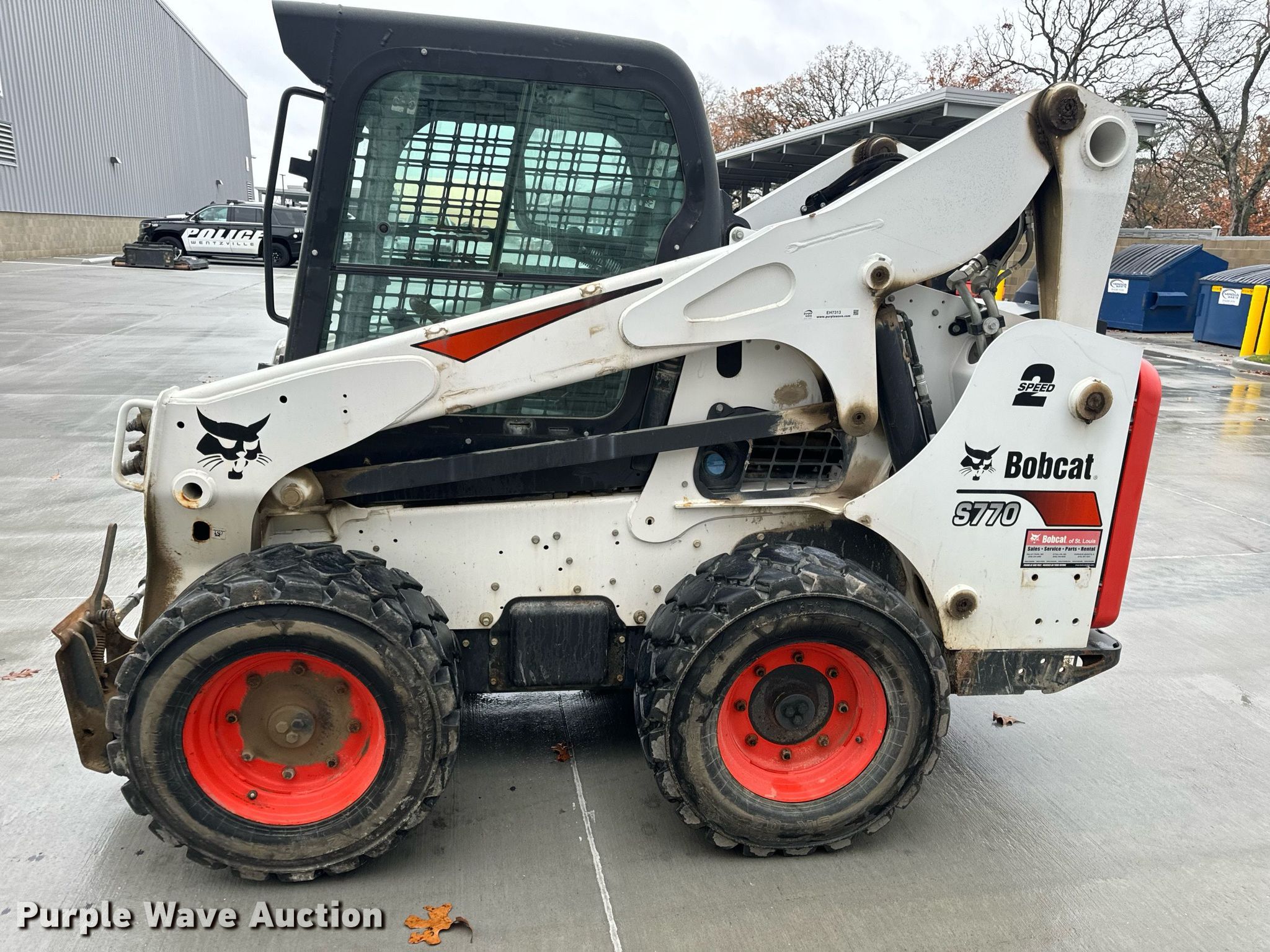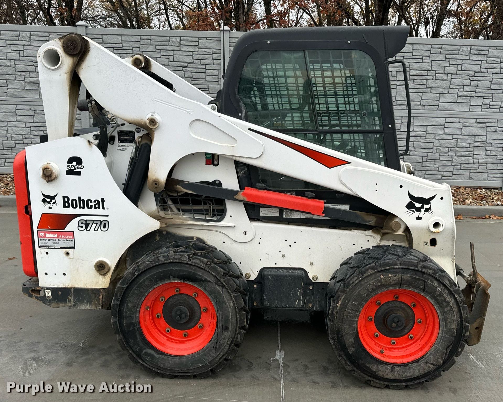 Purple Wave is selling a used Skid Steer Loader in Missouri. This item is a 2018 Bobcat S770 skid steer loader with the following: Hours: 645 on meter, Serial: AT5A12977, Unit #: 3002