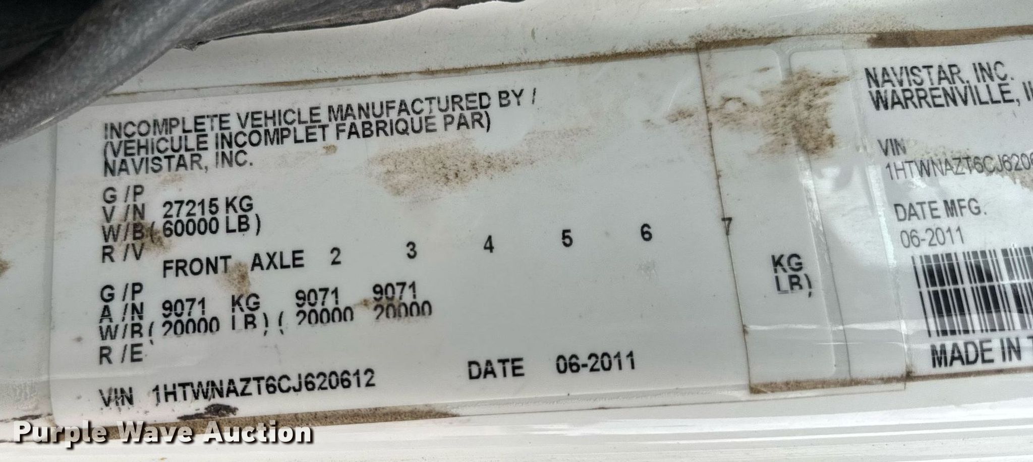 - VIN: 1HTWNAZT6CJ620612