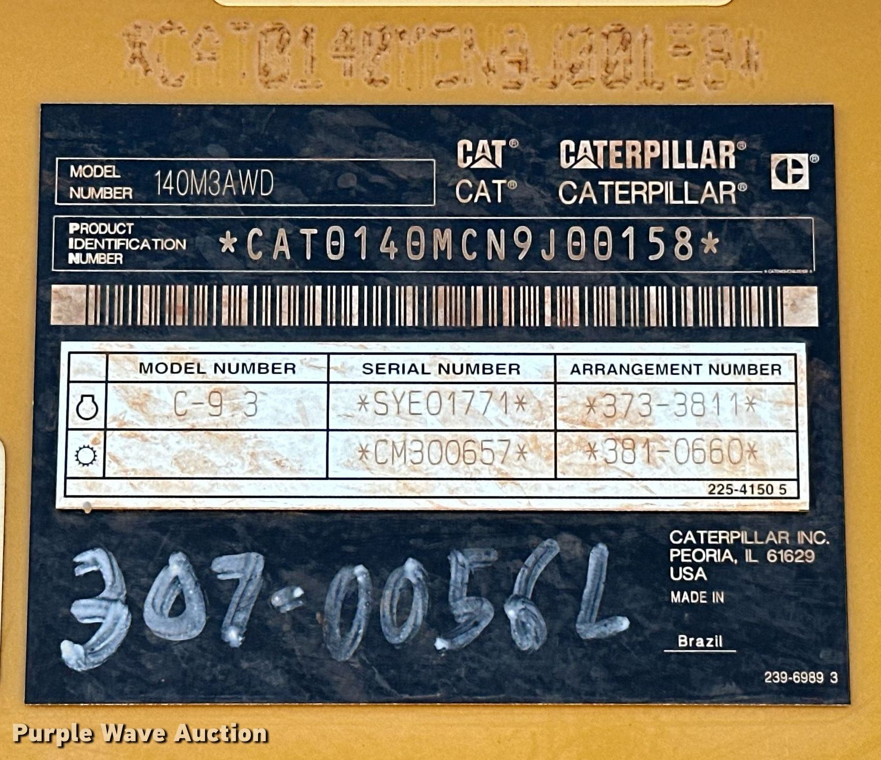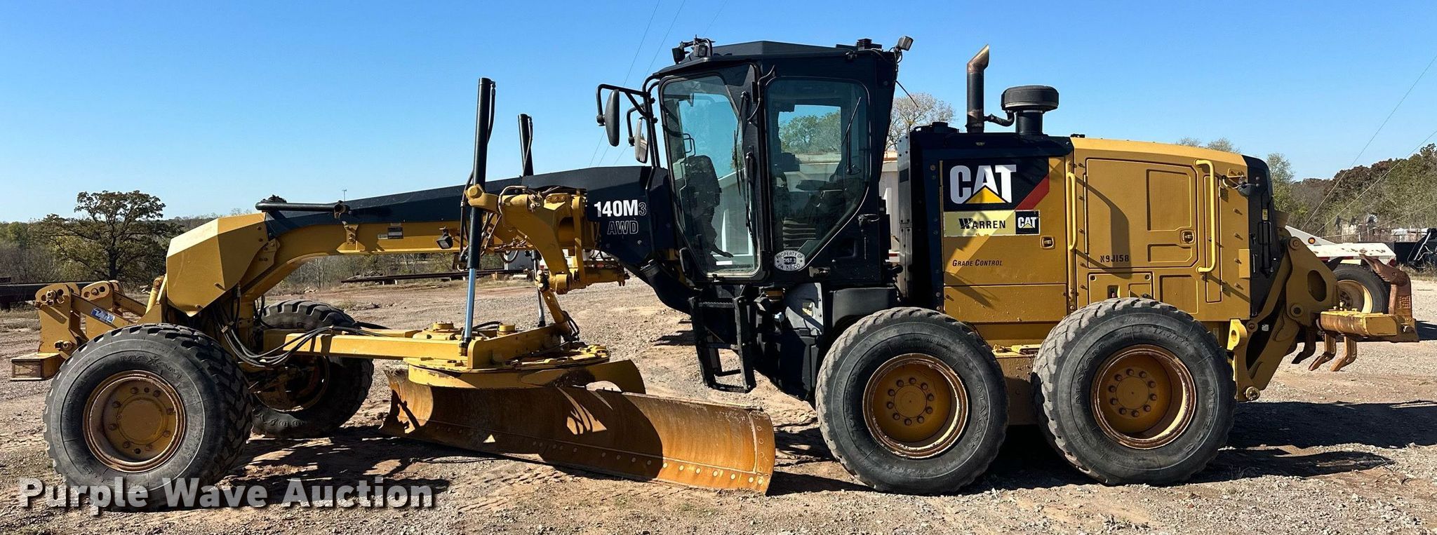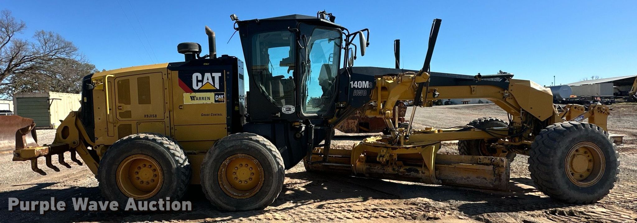 Purple Wave is selling a used Motor Grader in Oklahoma. This item is a 2014 Caterpillar 140M3 AWD motor grader with the following: Hours: 9,266 on meter, Serial: CAT0140MCN9J00158