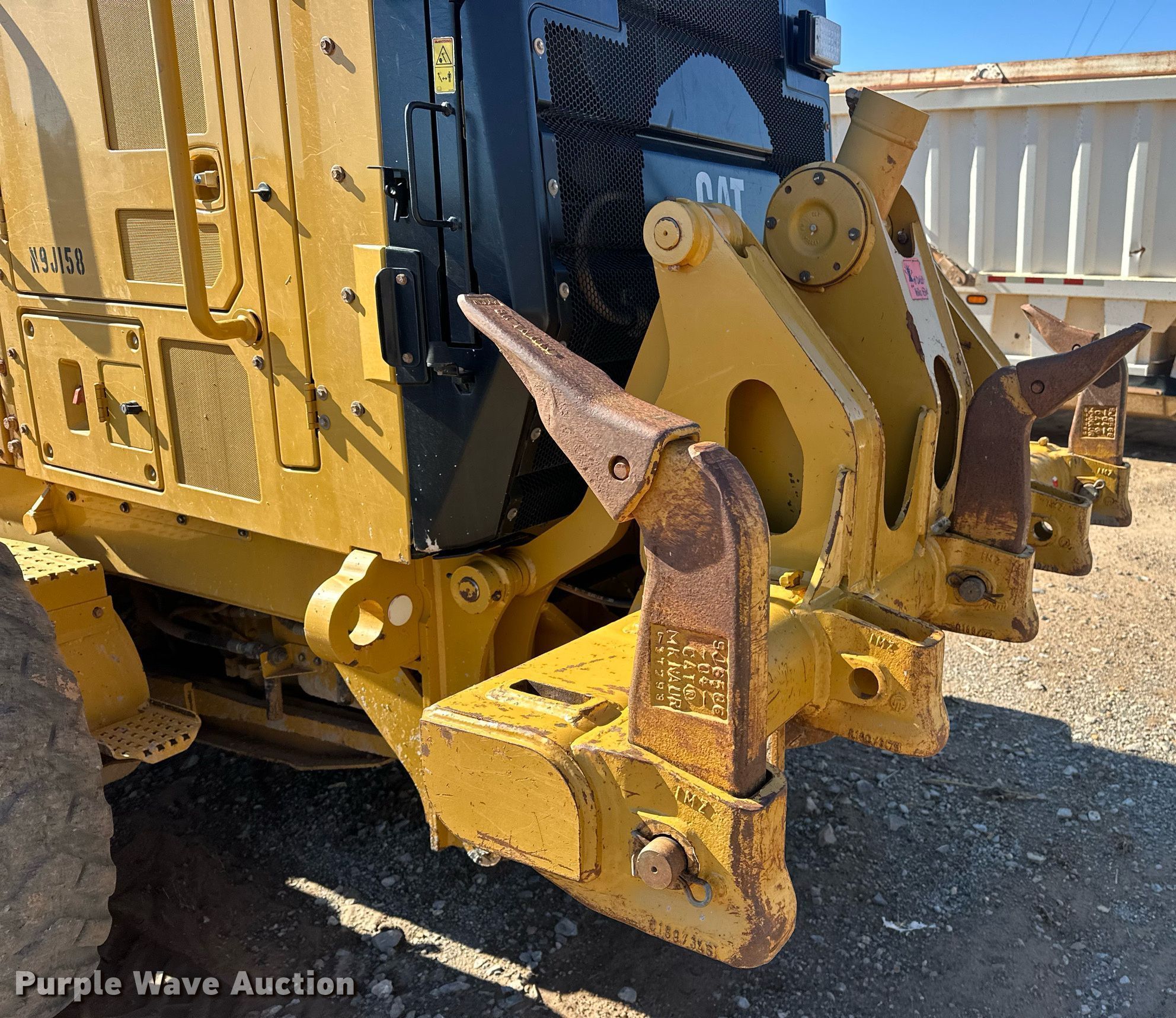 2014 Caterpillar 140M3 AWD motor grader. Hours: 9,266 on meter, Serial: CAT0140MCN9J00158. Engine Caterpillar C-9.3, Serial: SYE01771, Displacement: 9.3L, Cylinders: 6, Fuel type: Diesel. Transmission Powershift, 5F - 3R. Chassis All wheel drive, Differential lock. Operators station Enclosed cab, AC, Heat, Backup camera, Steering: Joystick. Features Moldboard: Tip control, Side shift, Moldboard total width: 14', Circle slip clutch, Scarifier Make: Vail, Scarifier type: Front-mounted, Rear ripper Ripper shanks: 3. Tires Size: 17.5R25. Payne County, OK. Expo Circle East. Stillwater, OK 74075