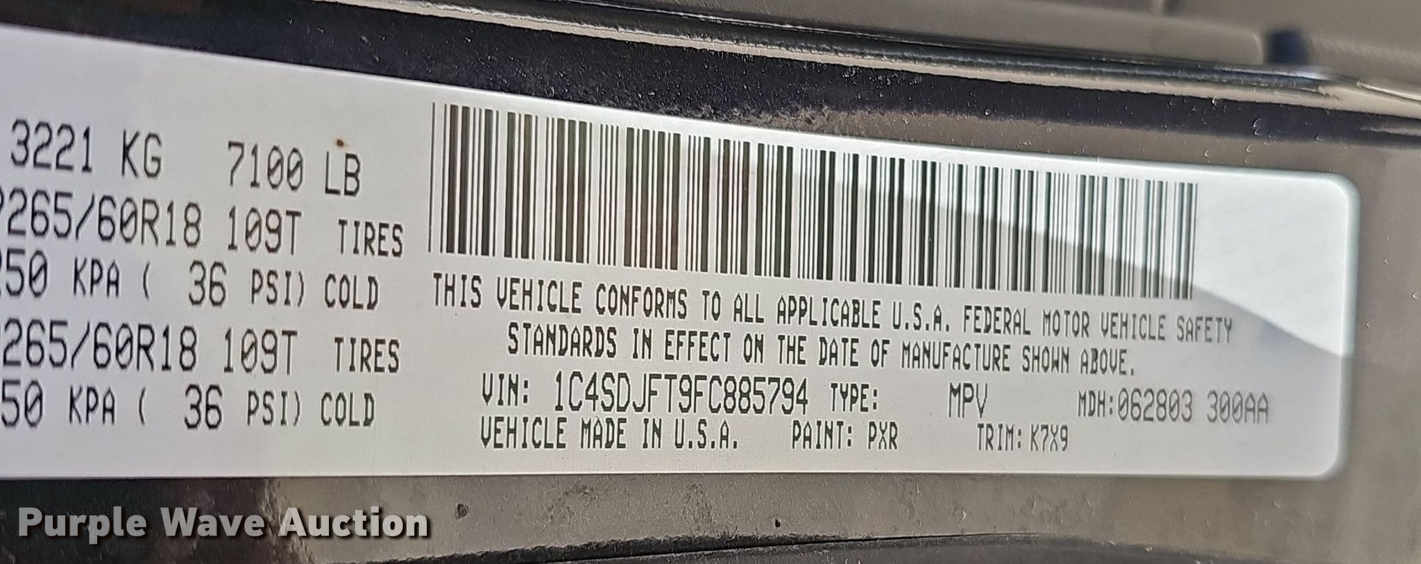 - VIN: 1C4SDJFT9FC885794