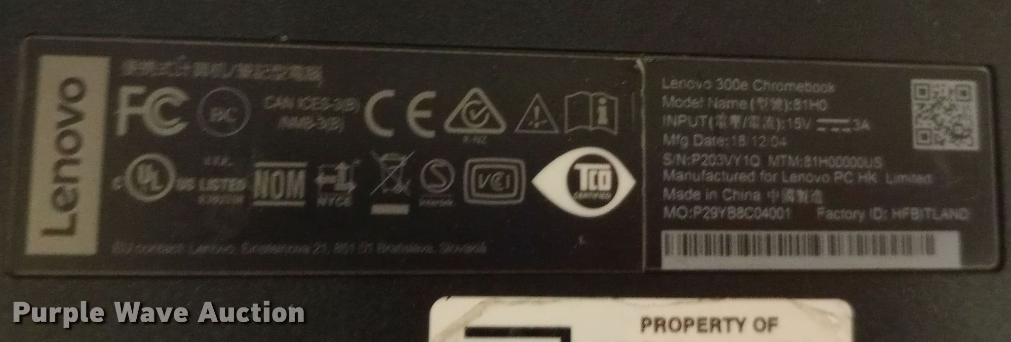 Purple Wave is selling a used Computers in Kansas. This item is a Approximately 110 Lenovo 330e Chromebooks with the following: Approximately 110 Lenovo 330e Chromebooks. Purple Wave reserves the right to obtain additional buyer information prior to item removal.. USD 470 Technology Department. Arkansas City, KS 67005