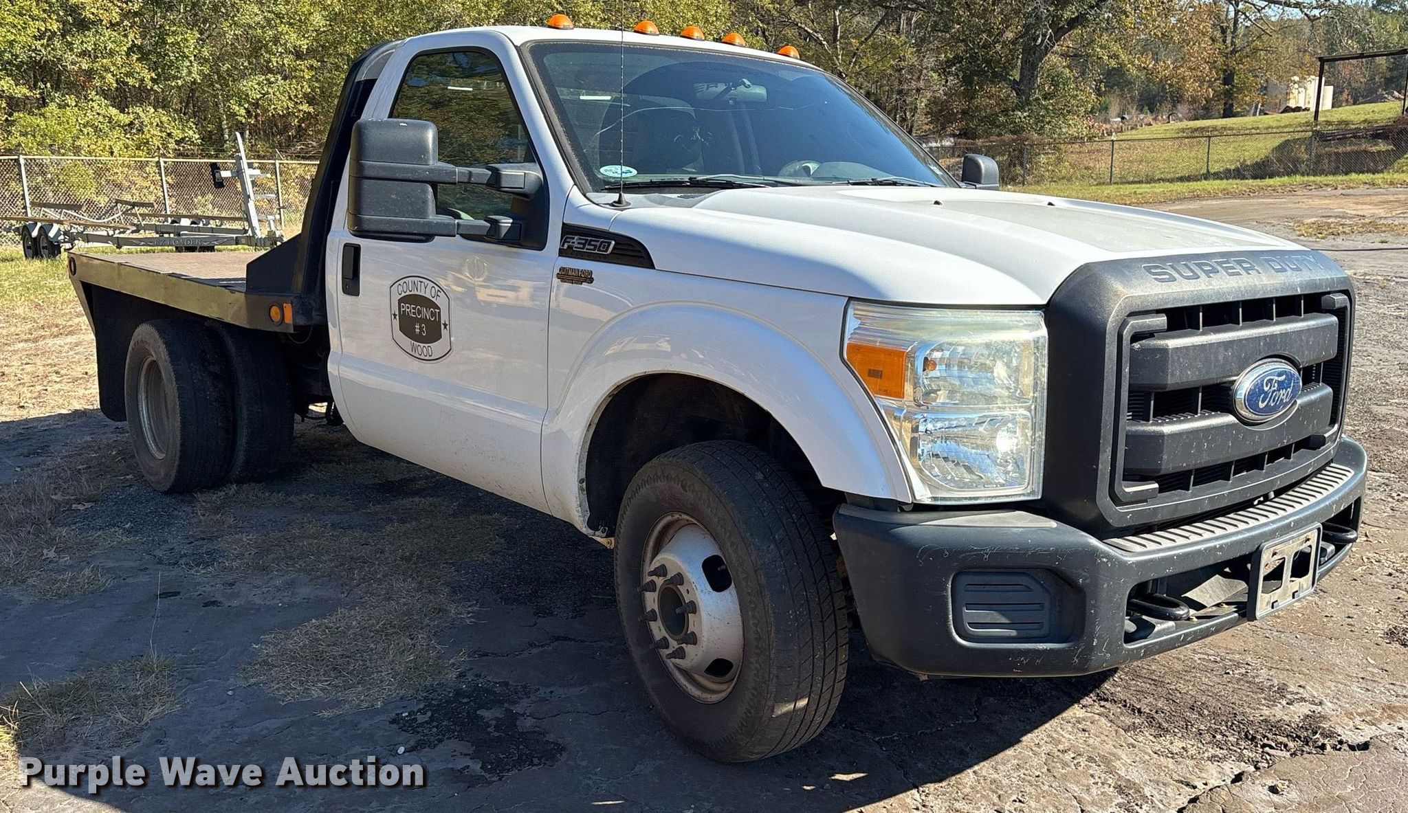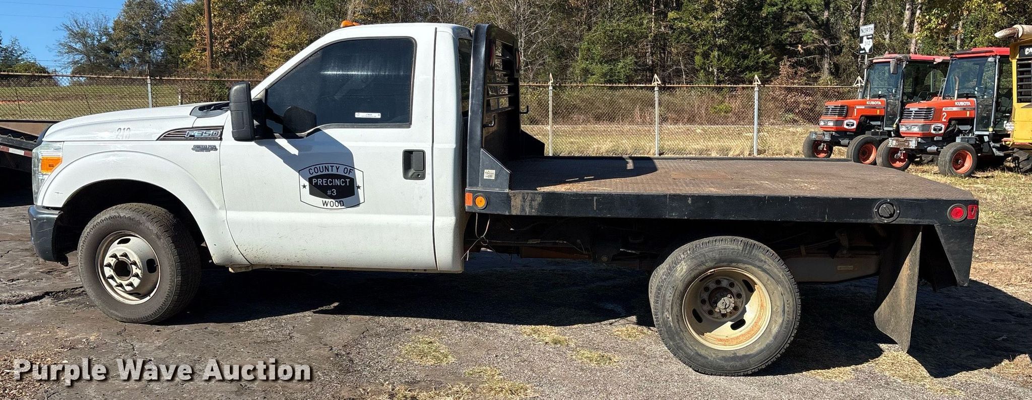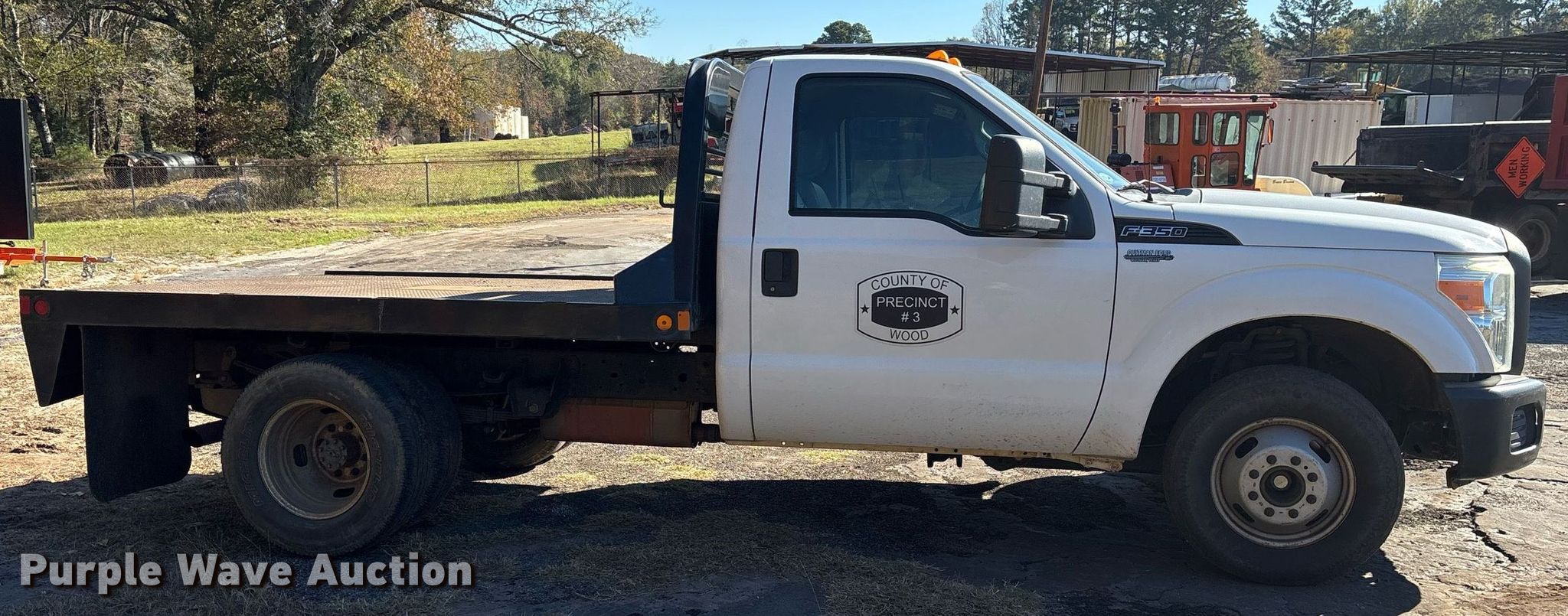 This 2012 Ford F350 Super Duty flatbed pickup truck will sell to the highest bidder regardless of price.