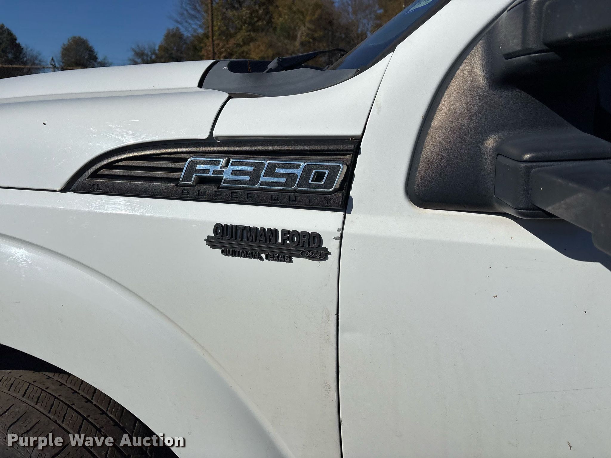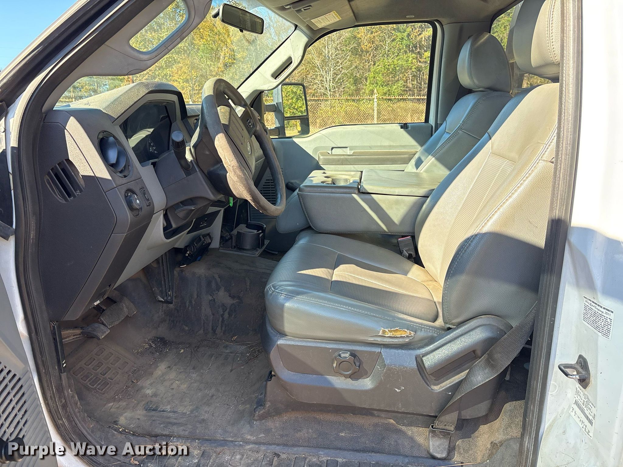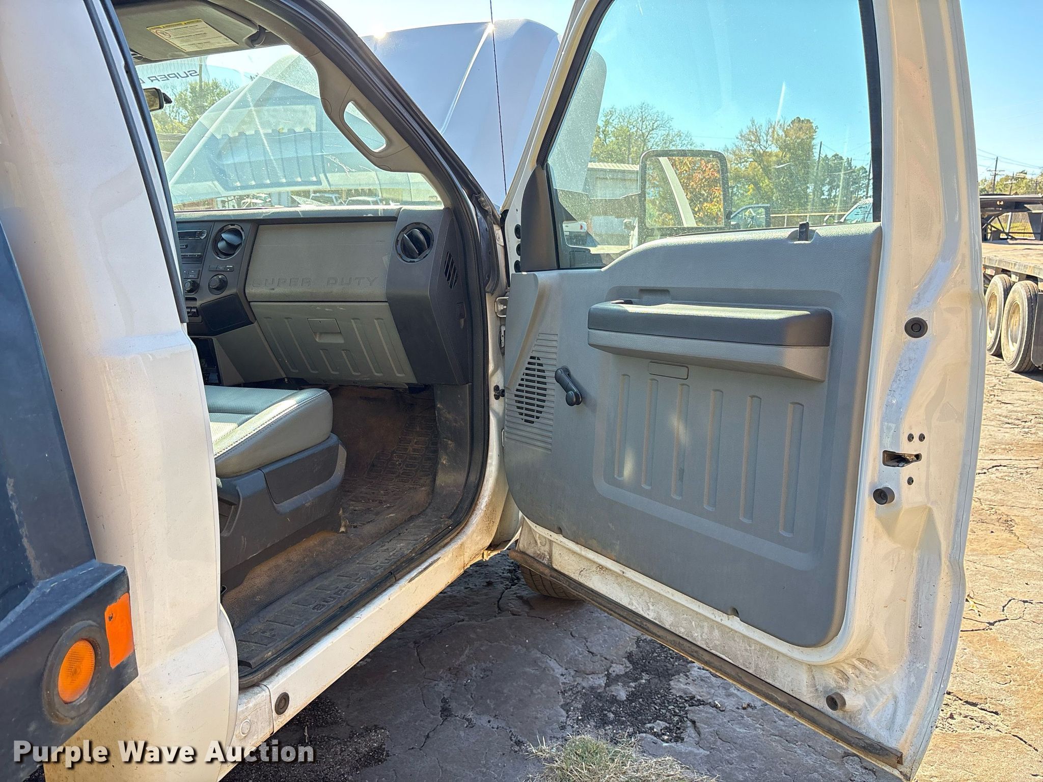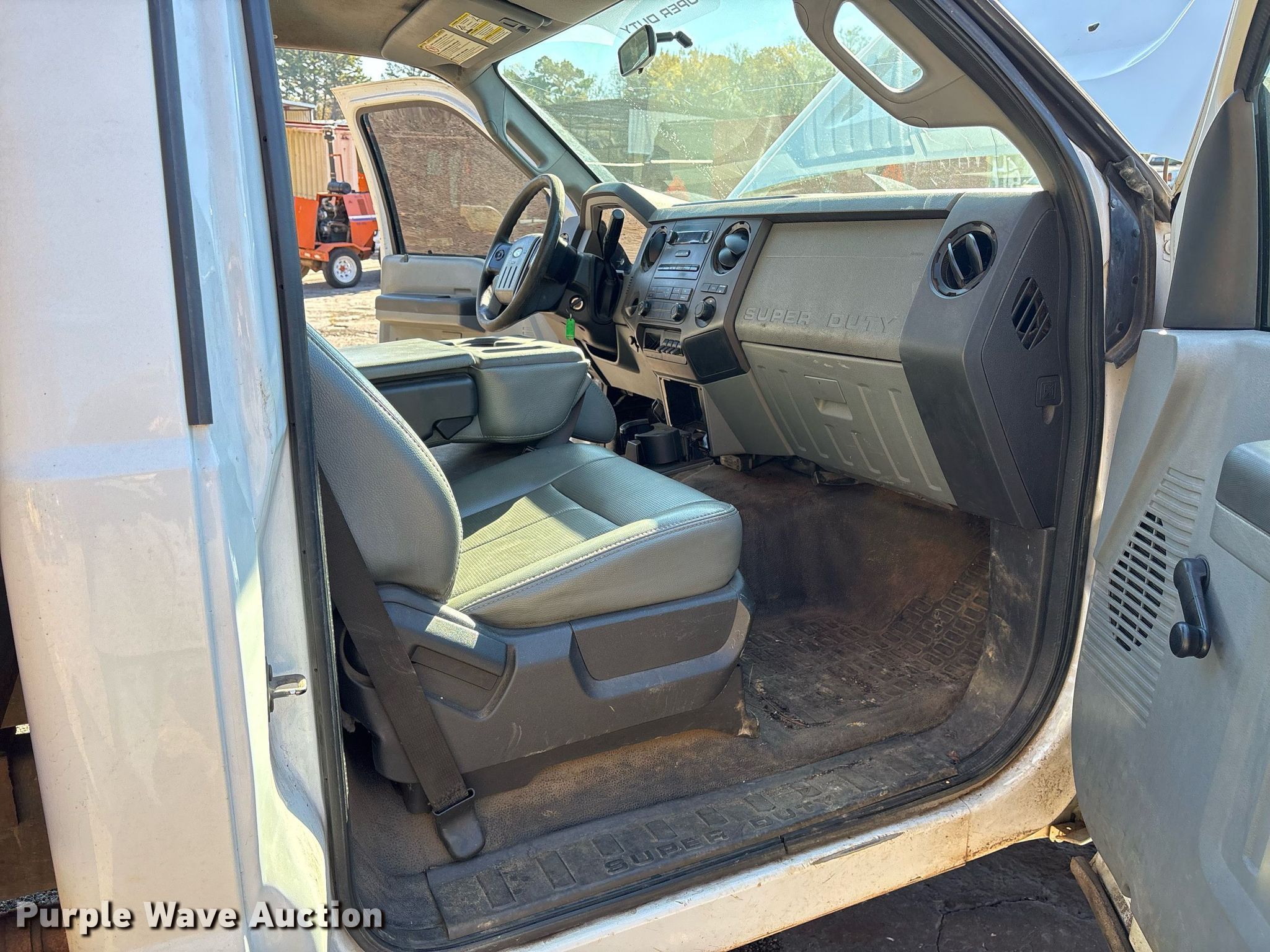 This 2012 Ford F350 Super Duty flatbed pickup truck will sell to the highest bidder regardless of price.