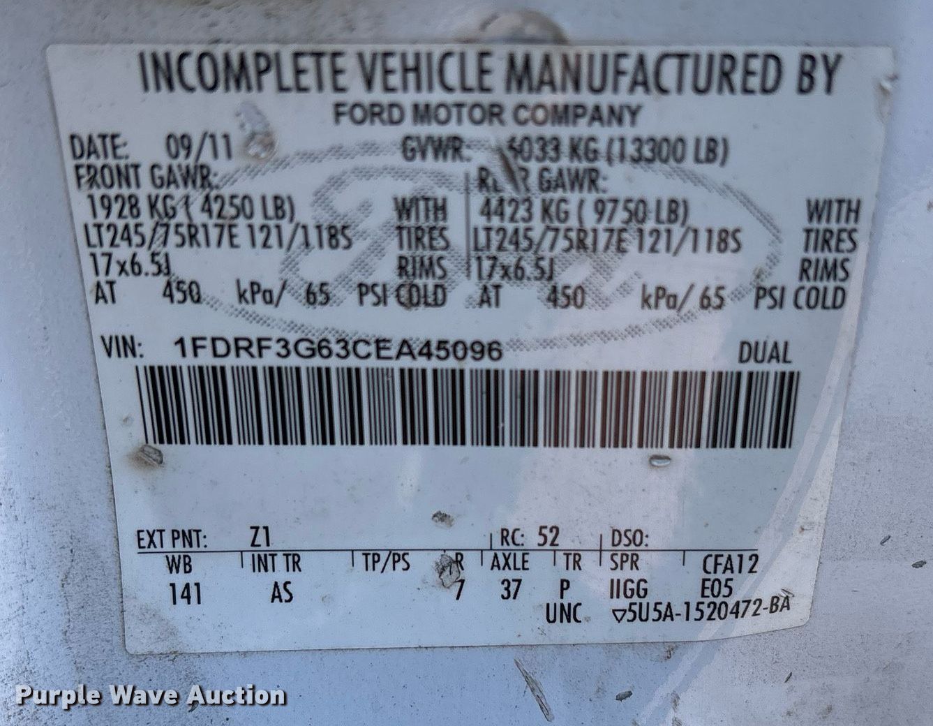 - VIN: 1FDRF3G63CEA45096
