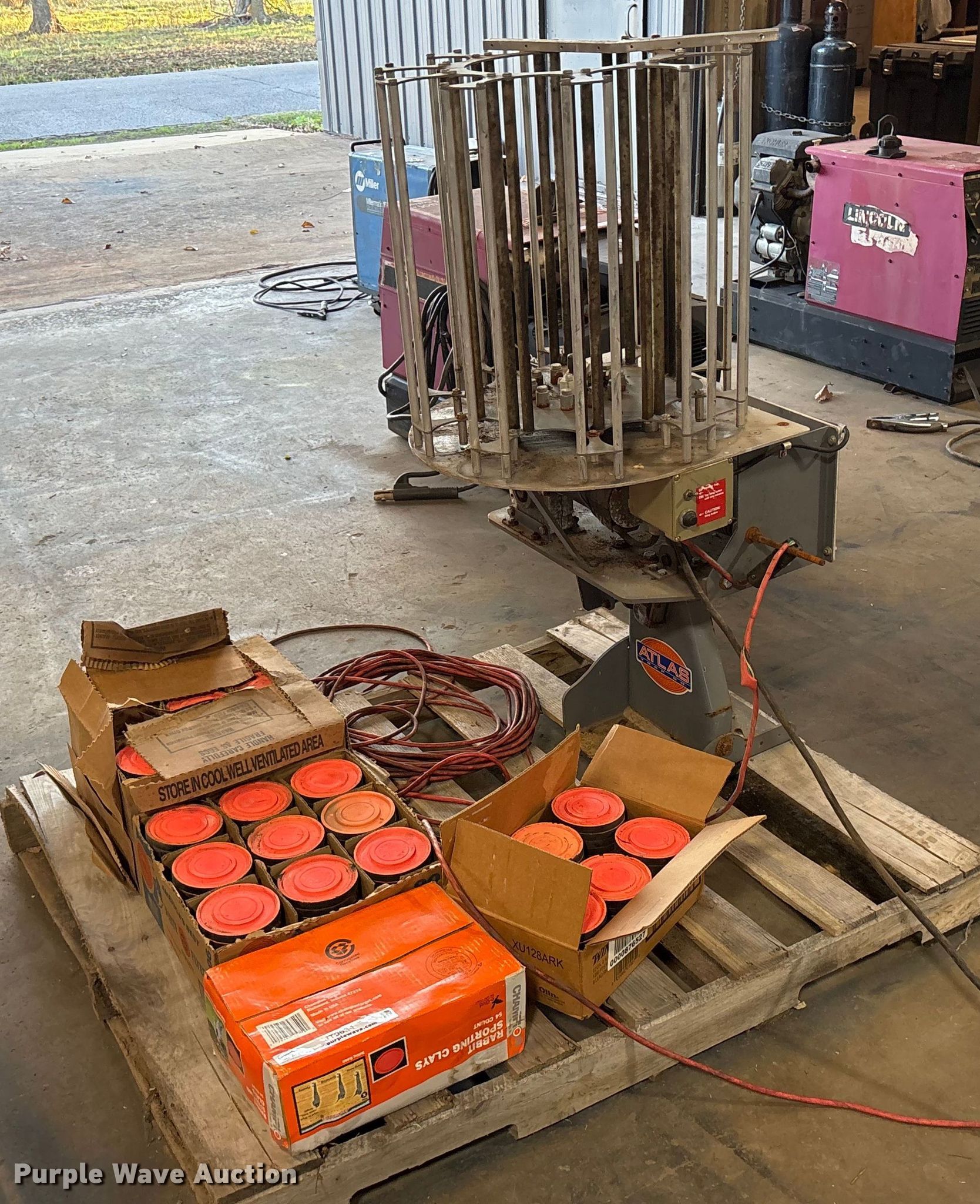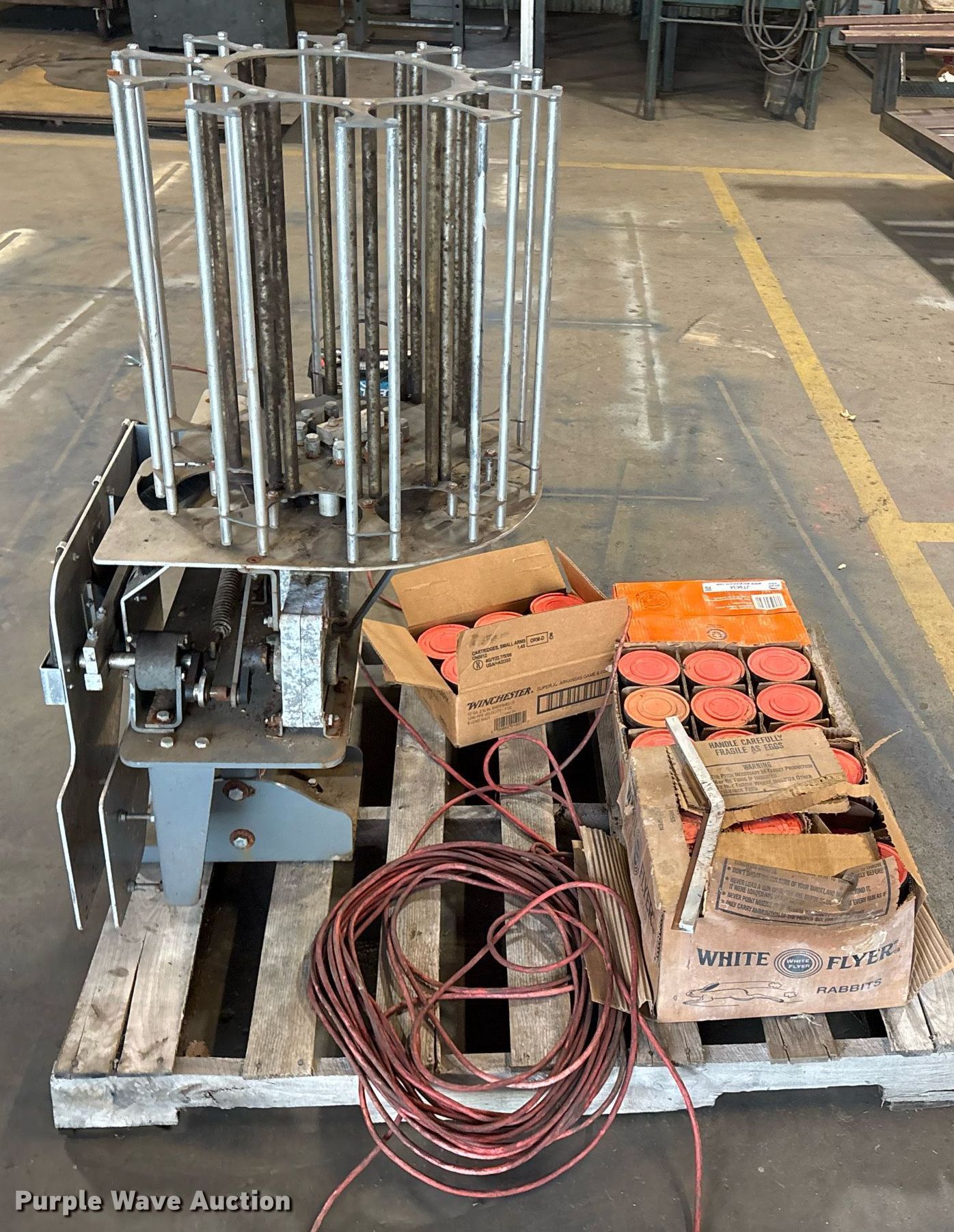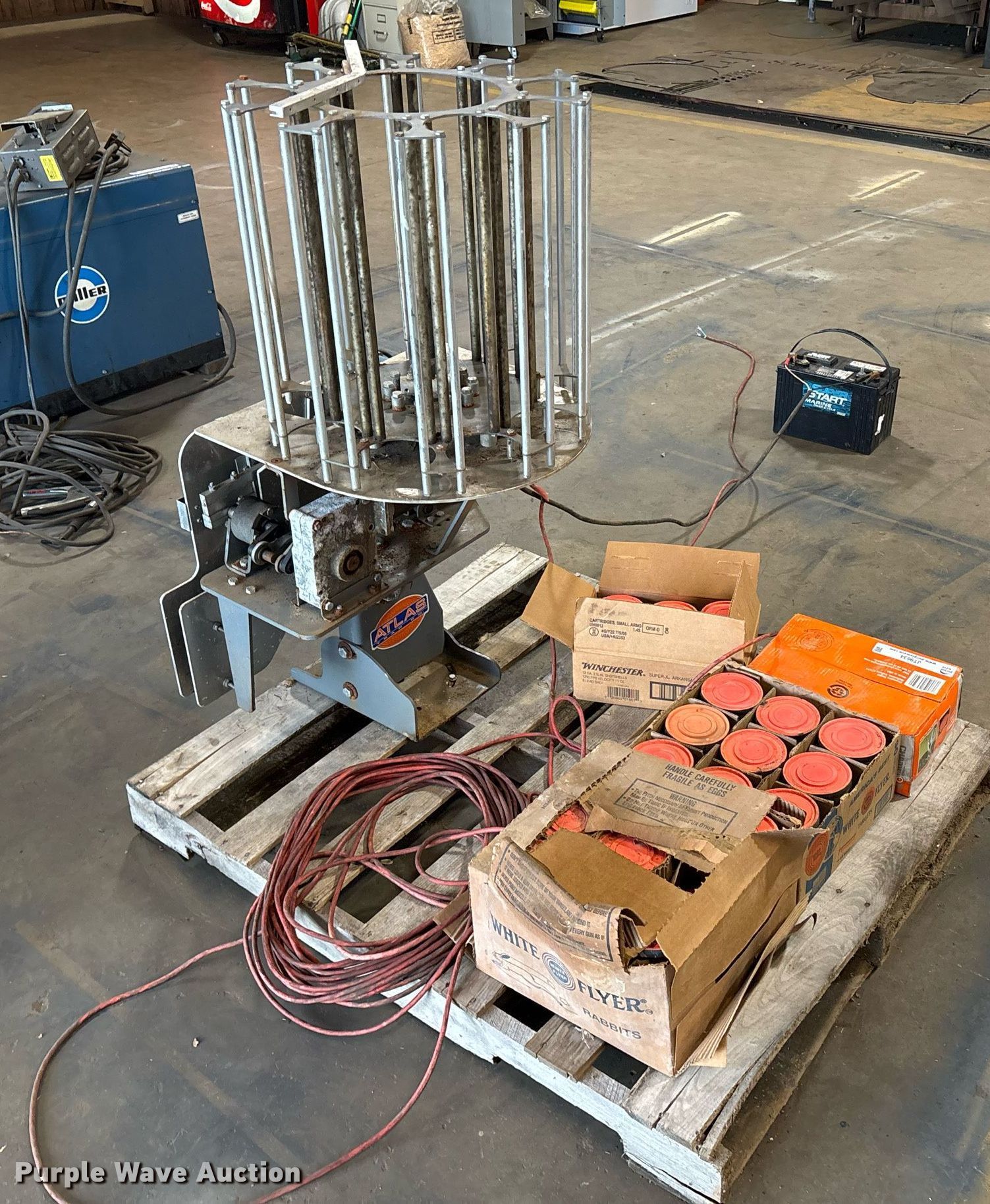 Purple Wave is selling a used Sporting Goods in Oklahoma. This item is a Atlas clay pigeon thrower with the following: Volts: 12, (4) cases of rabbit sporting clays, Chantelle arm