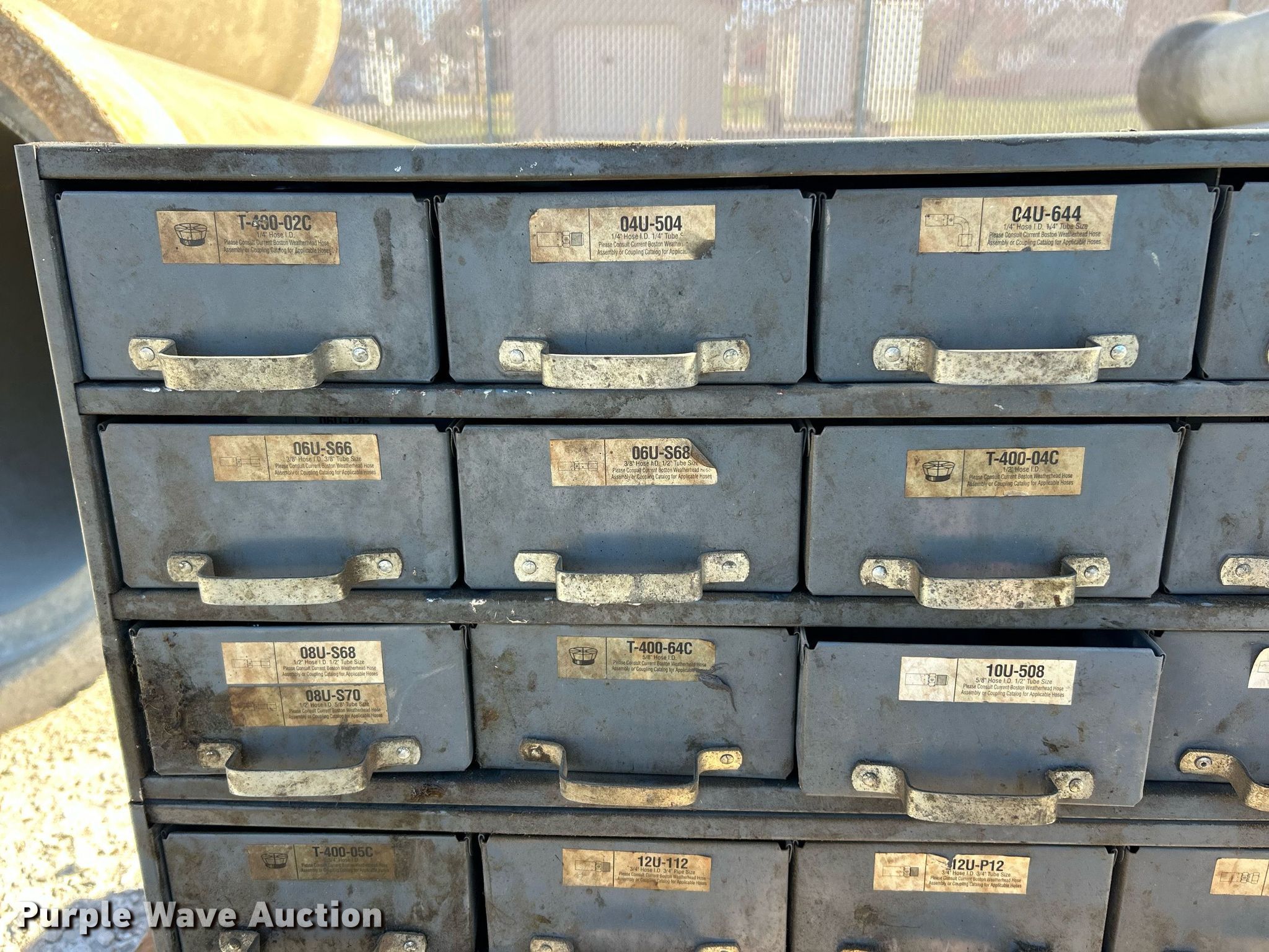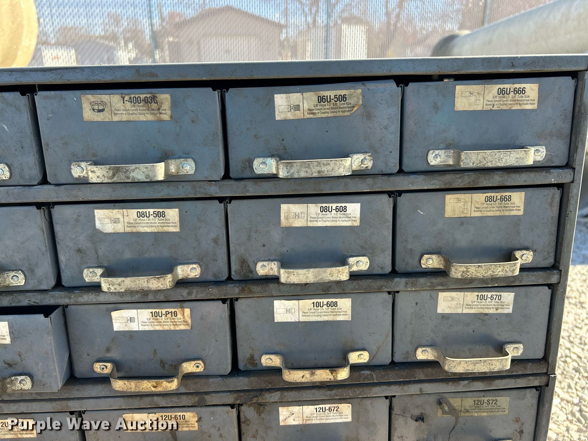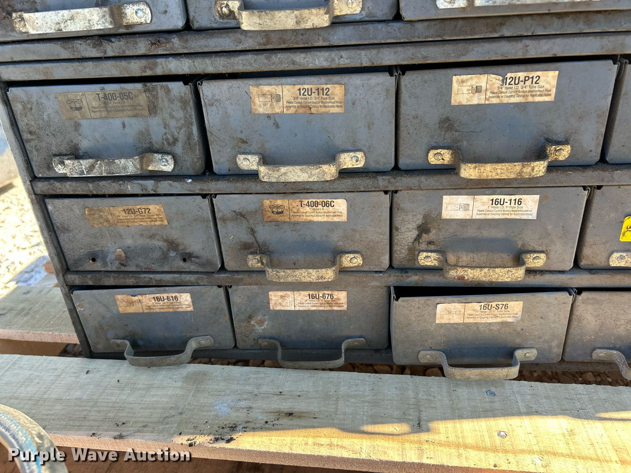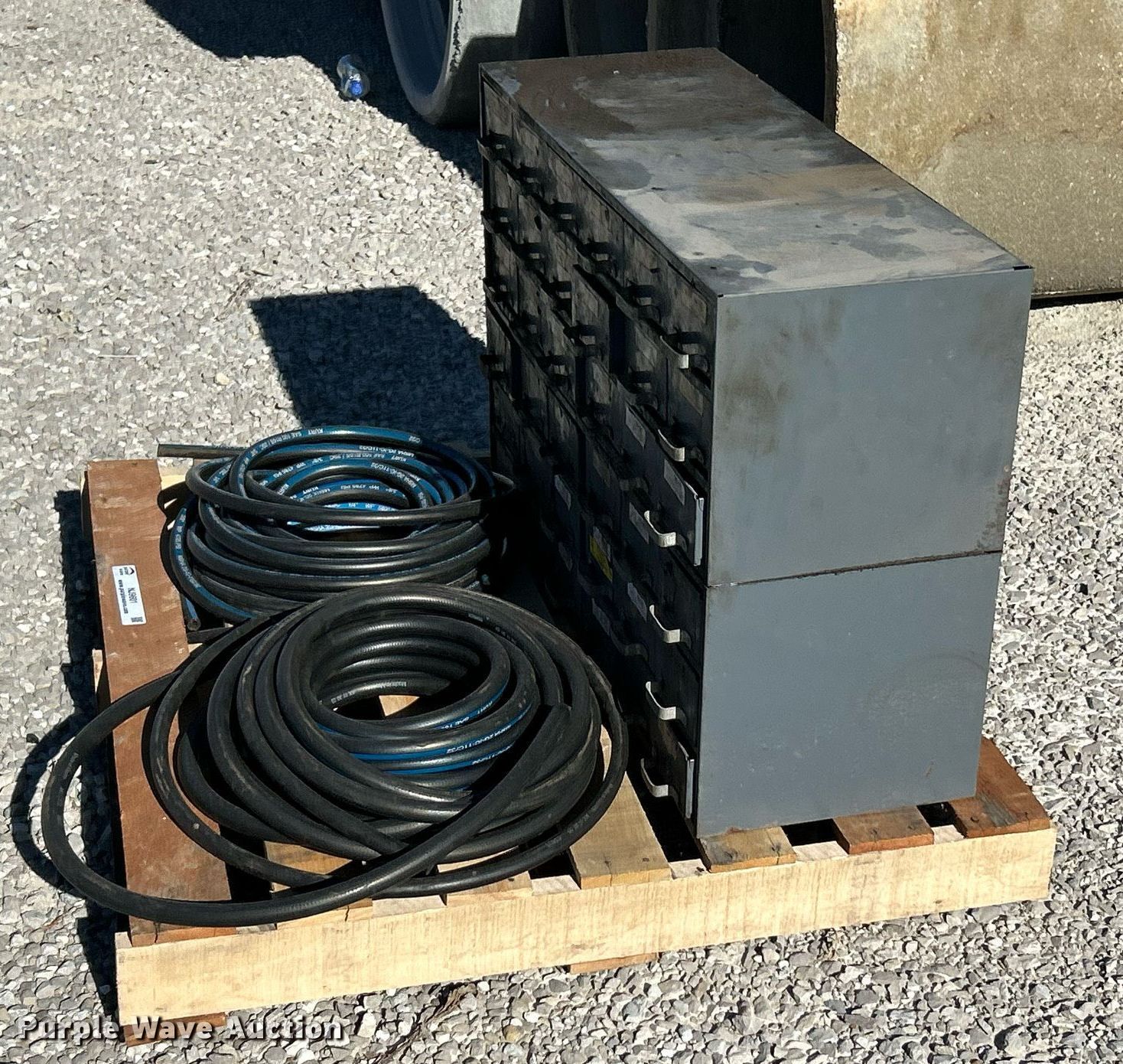 Purple Wave is selling a used Tools in Illinois. This item is a Kurt hydraulic hoses and fittings with the following: Storage drawer organizer included