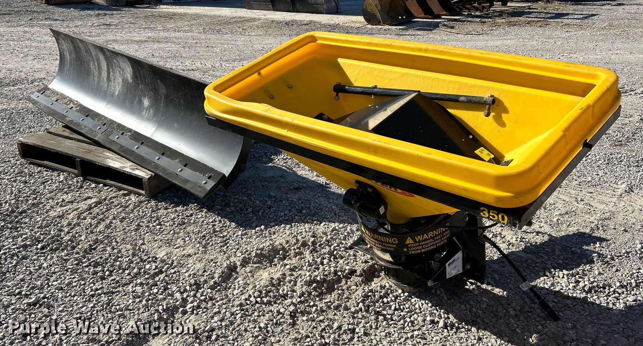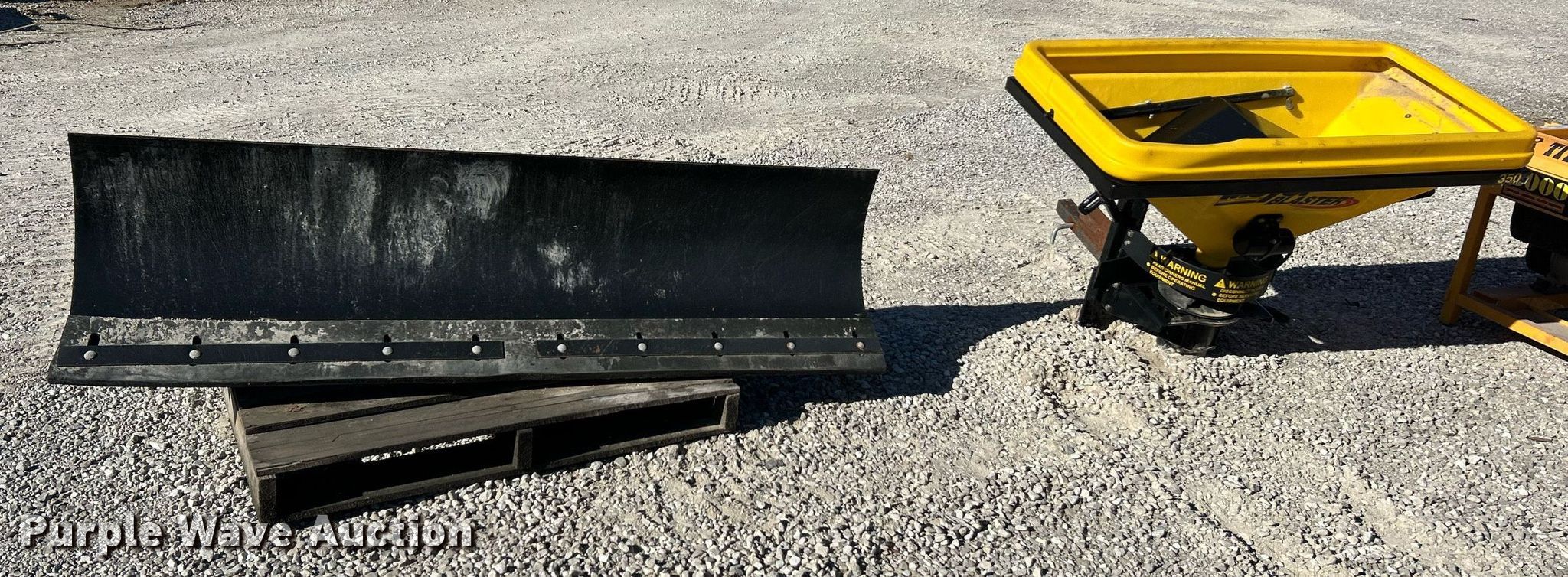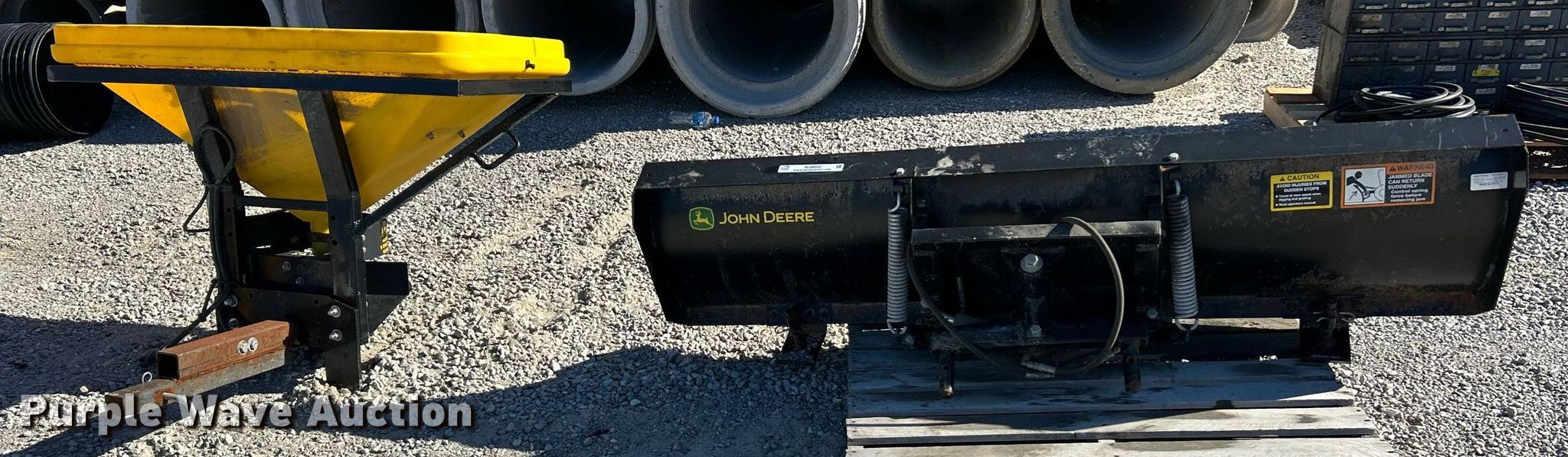 Utility vehicle attachments. John Deere LPB72JT1 snow plow Serial: 14051713, Width: 72�, Meyer Blaster spreader. Notes Items removed from John Deere Gator utility vehicle. City of Waterloo, IL. Waterloo, IL 62298