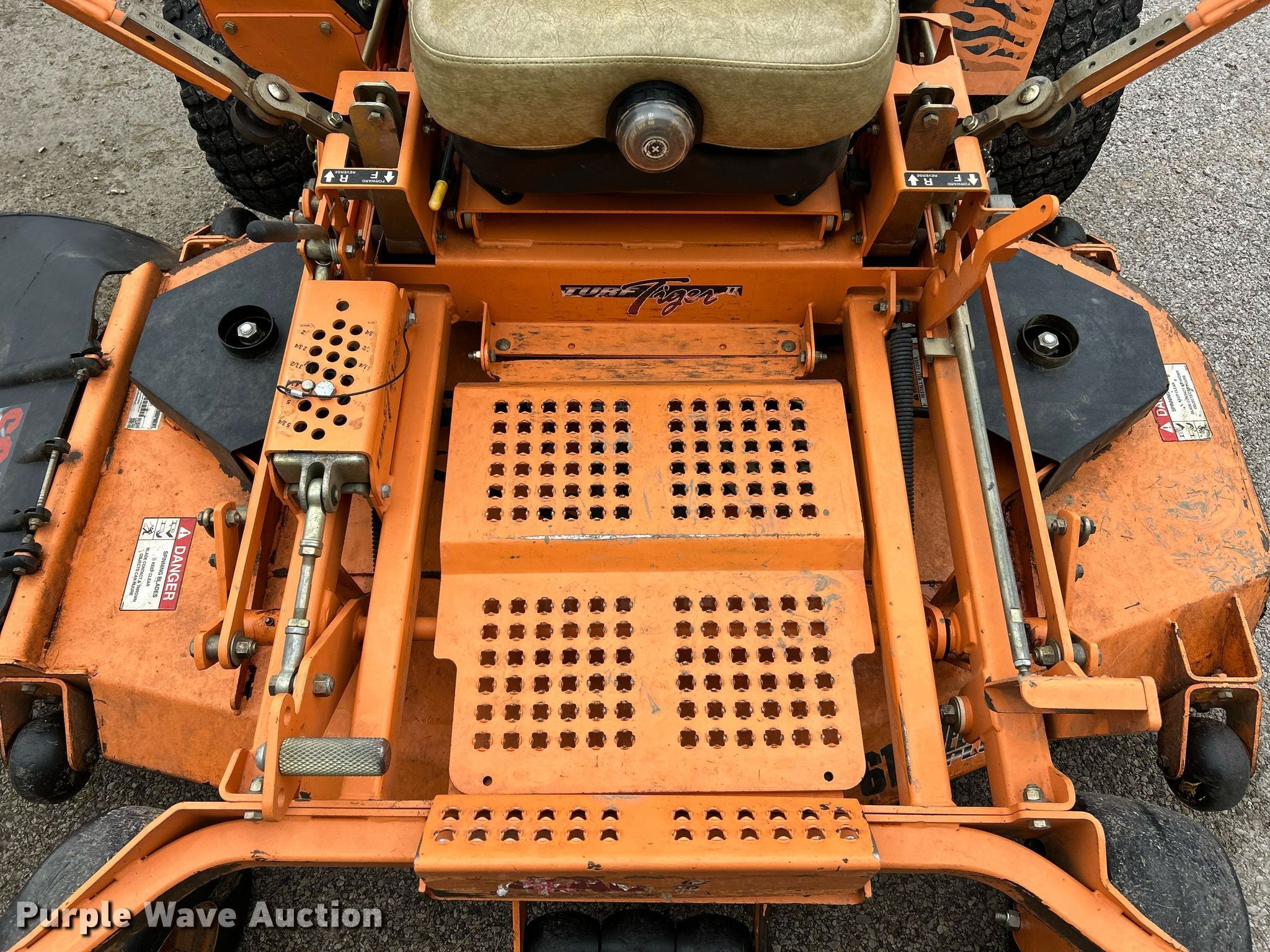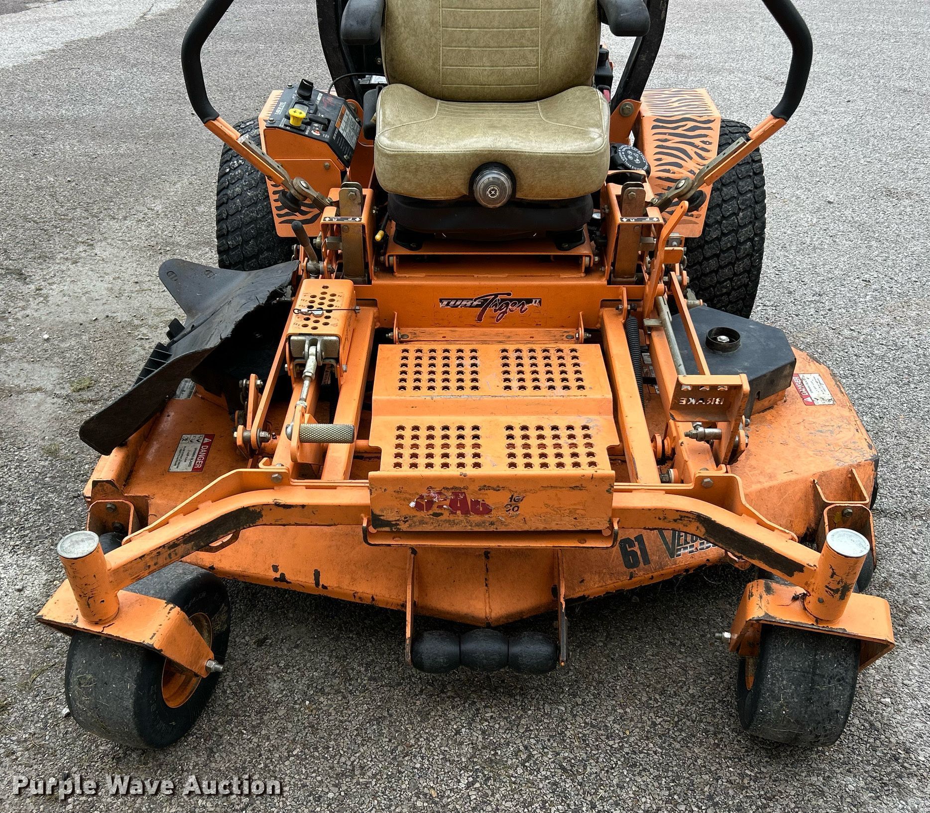 Purple Wave is selling a used Commercial Turf Mower in Illinois. This item is a Scag Turf Tiger II ZTR lawn mower with the following: Hours: 1,808 on meter, Cutting width: 61", Serial: M2600089