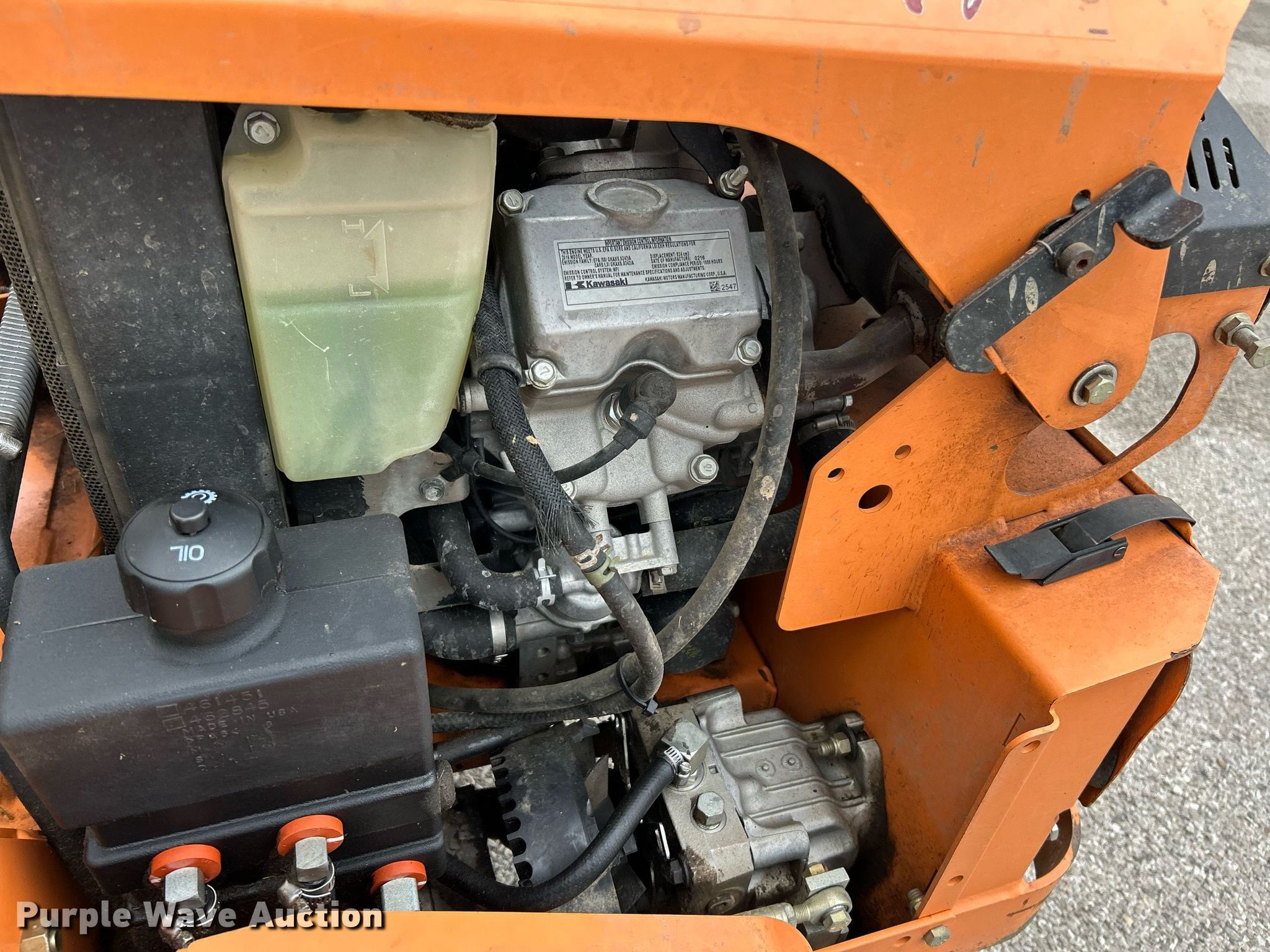 Scag Turf Tiger II ZTR lawn mower. Hours: 1,808 on meter, Cutting width: 61", Serial: M2600089. Engine Kawasaki, Displacement: 824 cc, Cylinders: 2, Fuel type: Gas, HP: 31. Transmission Hydrostatic. Tires Front: 13x6.50-6/4.50, Rear: 26x12.00-12. Notes Dead battery. Village of Swansea, Illinois. Swansea, IL 62226