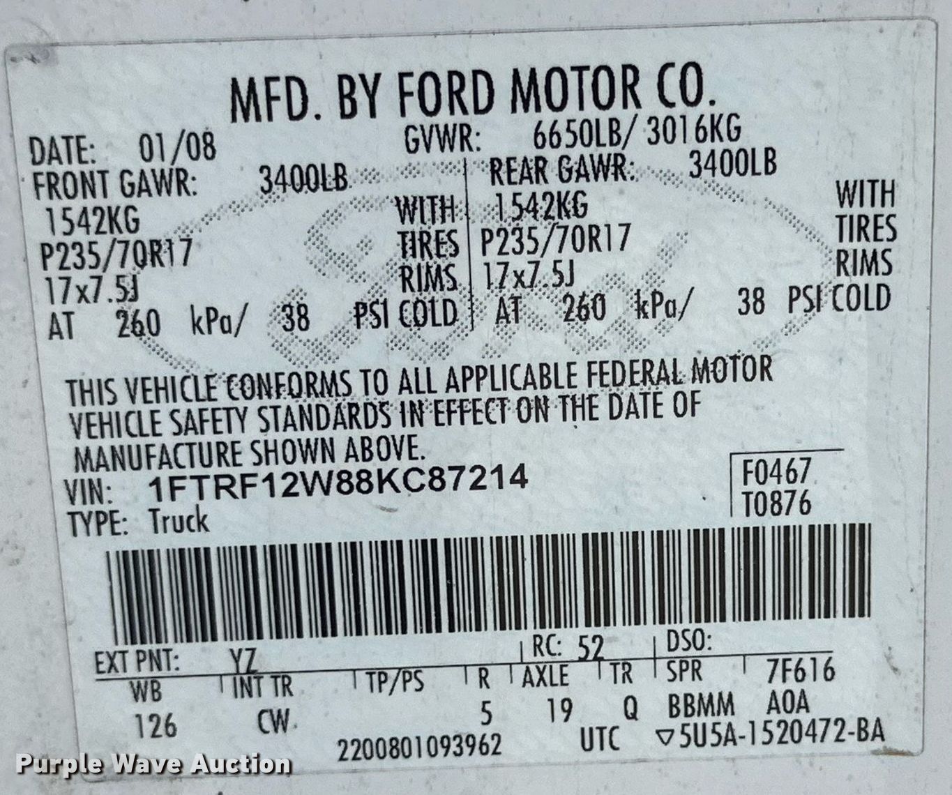 Purple Wave is selling a used 1/2 Ton Pickup or Van in Texas. This item is a 2008 Ford F150 pickup truck with the following: Miles: 161,457 on odometer, VIN: 1FTRF12W88KC87214