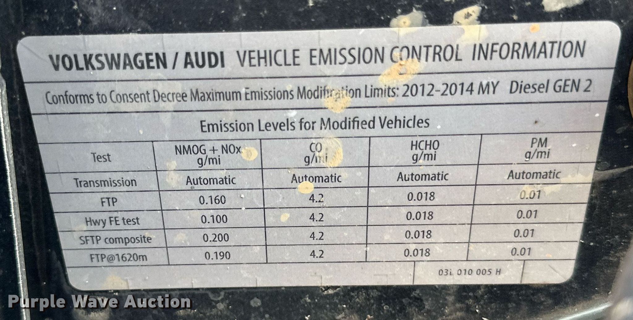 2013 Volkswagen Passat. Miles: 89,923 on odometer, VIN: 1VWBN7A39DC034337. Engine Displacement: 2.0L L4 DOHC, Cylinders: 4, Fuel type: Diesel. Transmission Automatic. Interior AC, Heat, Seat: Power driver, Power windows, Power locks, Cruise control. Tires Size: 235/45R18. Notes Hail damage. Texas title. Title distribution may be delayed up to 14 days from verification of funds. City of Stinnett. Stinnett, TX 79083