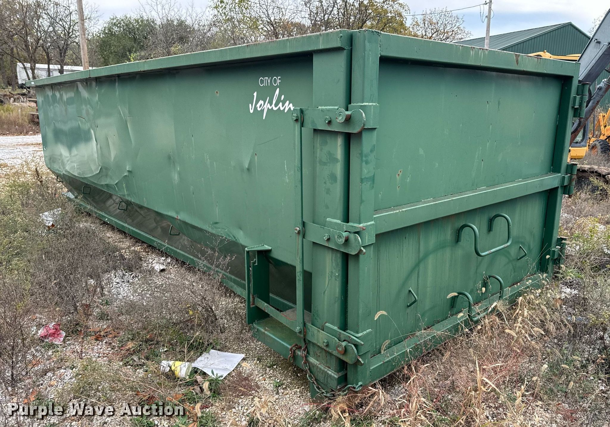 Purple Wave is selling a used Refuse or Compaction Equip. in Missouri. This item is a Roll-off dumpster with the following: Dimensions: 22' L x 96" W x 78" H, Capacity: 30 cu. yd.