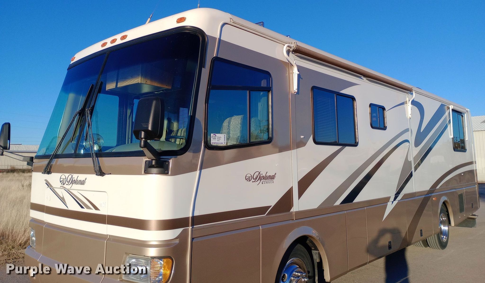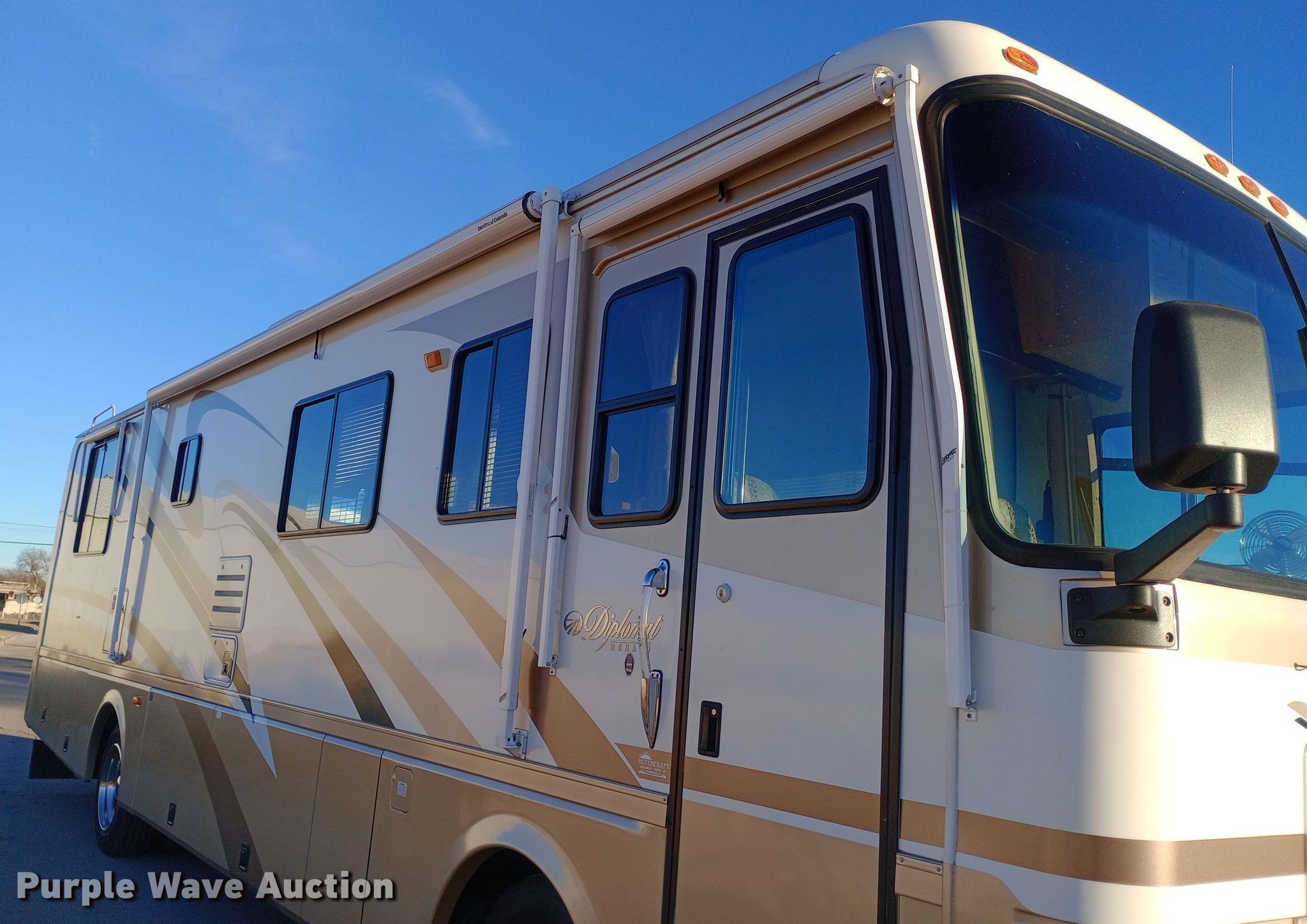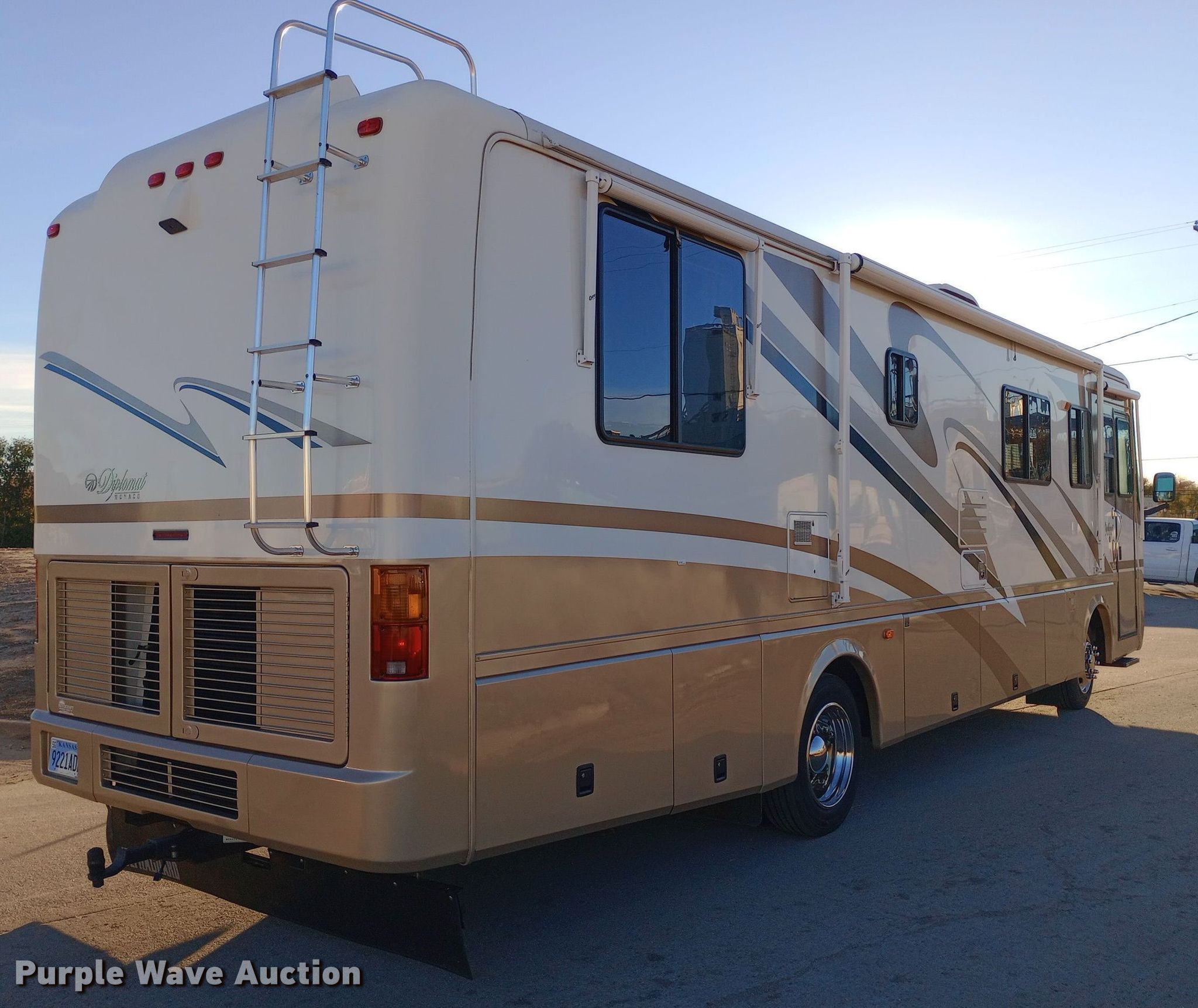 Purple Wave is selling a used RV or Camper in Kansas. This item is a 2001 Monaco Diplomat RV with the following: Camper length: 36', Miles: 39,999 on odometer, VIN: 1RF12041812012428