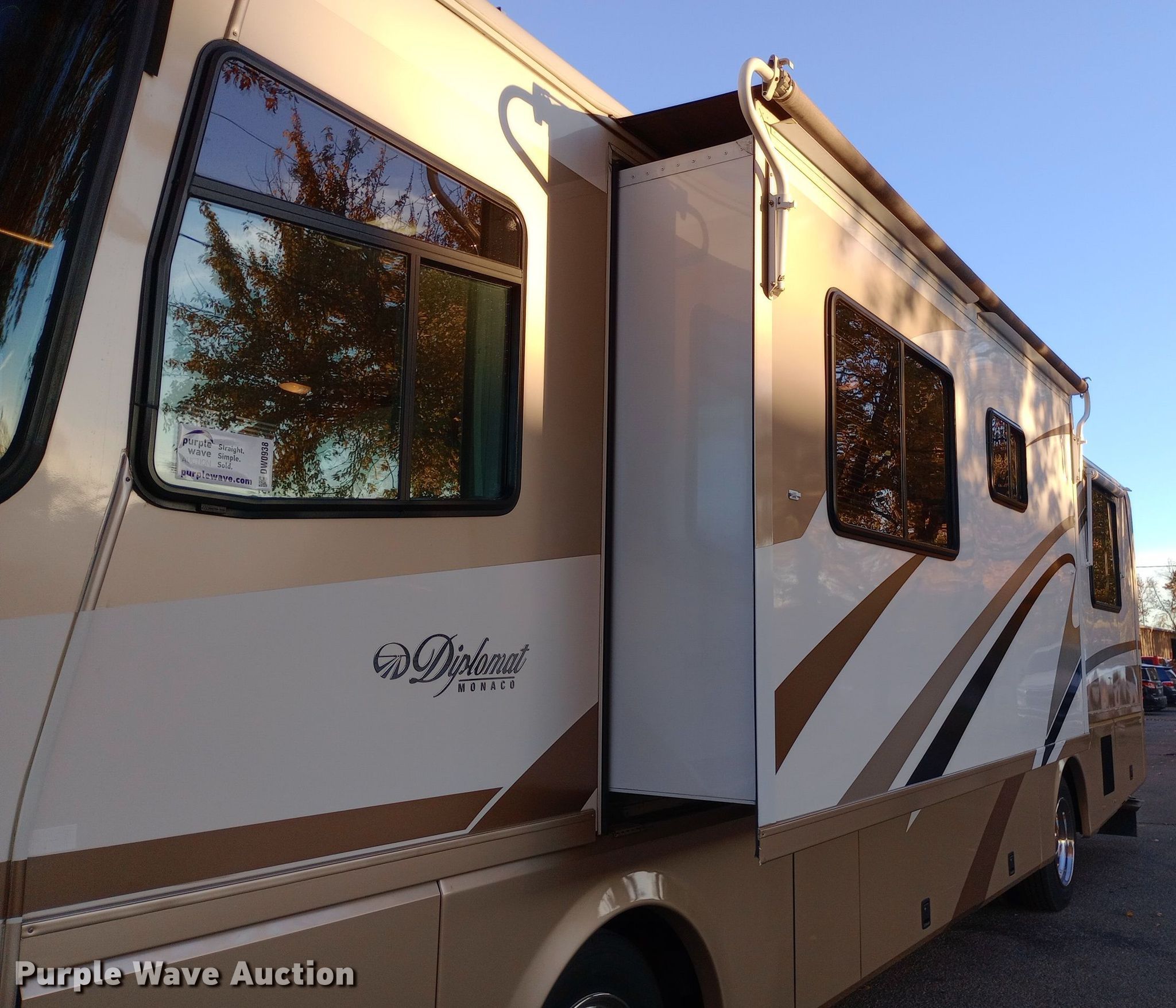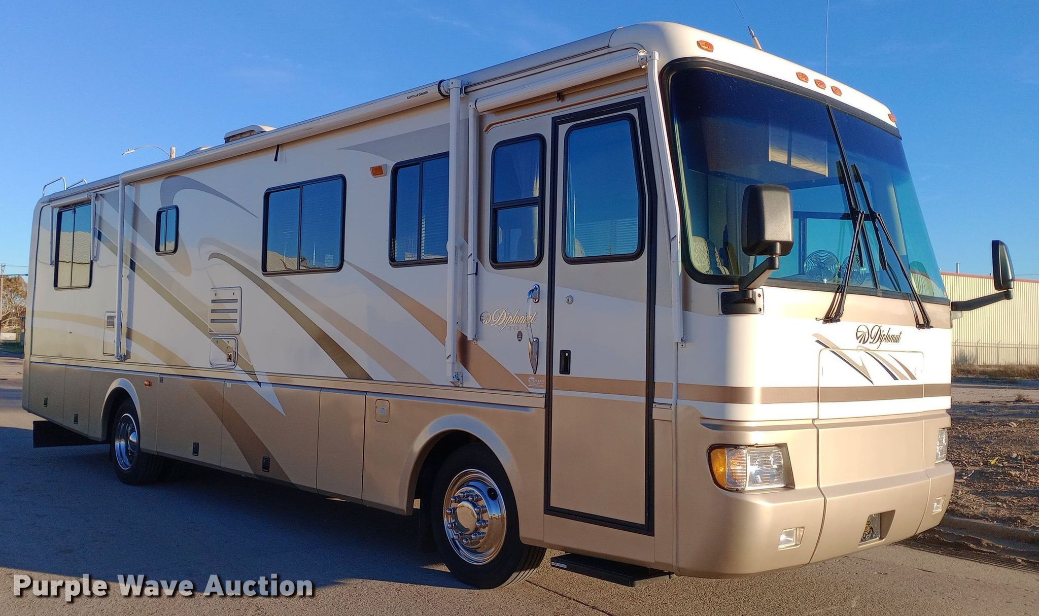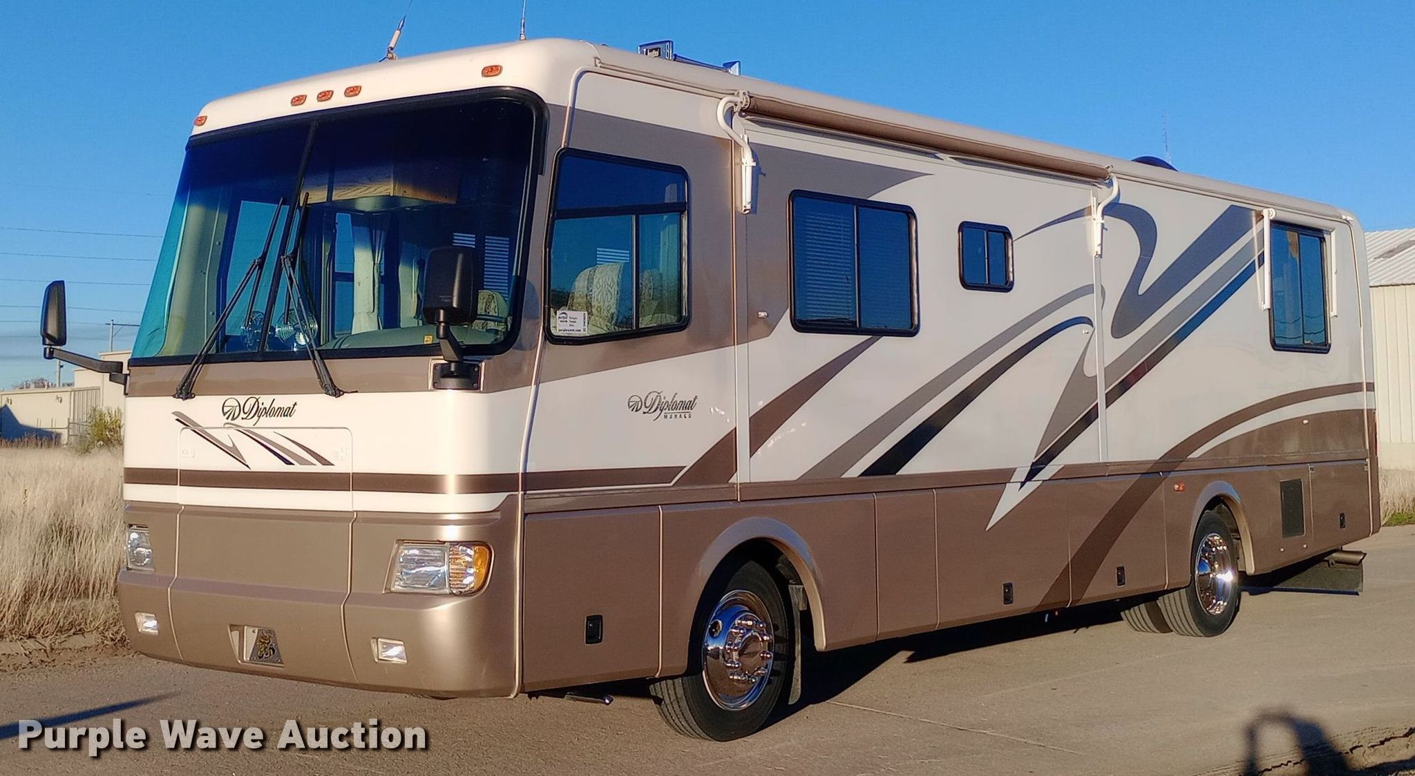 Purple Wave is selling a used RV or Camper in Kansas. This item is a 2001 Monaco Diplomat RV with the following: Camper length: 36', Miles: 39,999 on odometer, VIN: 1RF12041812012428