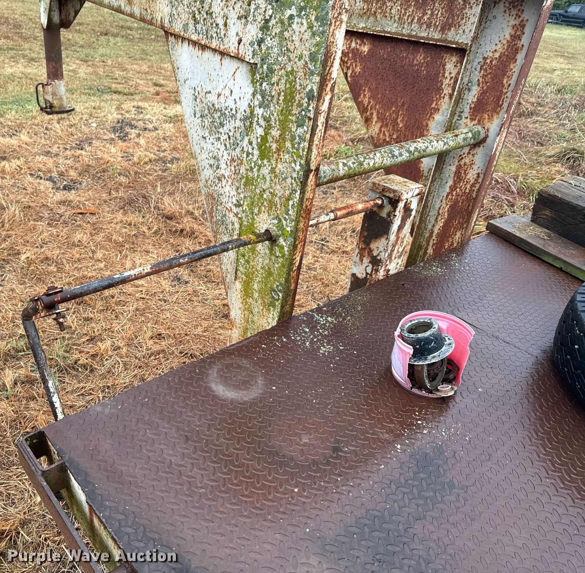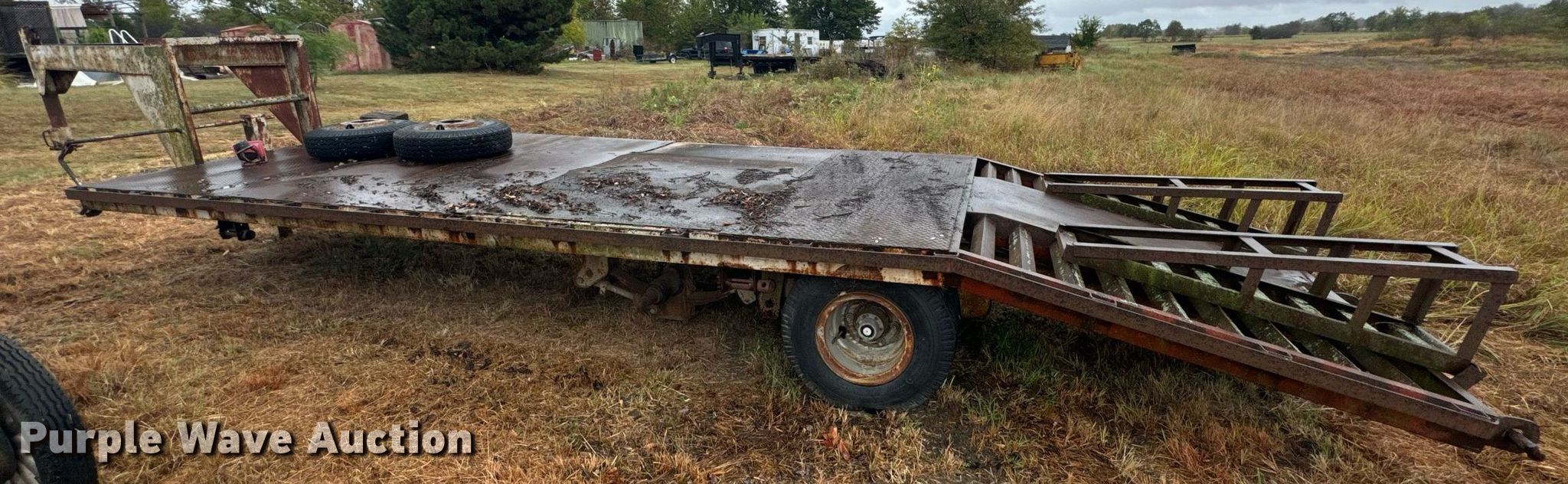 Purple Wave is selling a used Equip. Trailer in Oklahoma. This item is a Shop built equipment trailer with the following: Overall: 25' L x 96" W, Ramps: Manual, Length: 5'